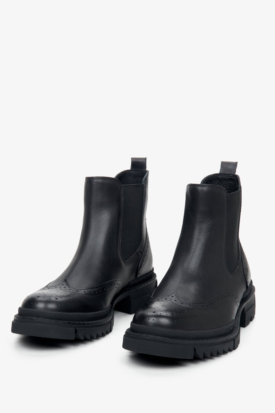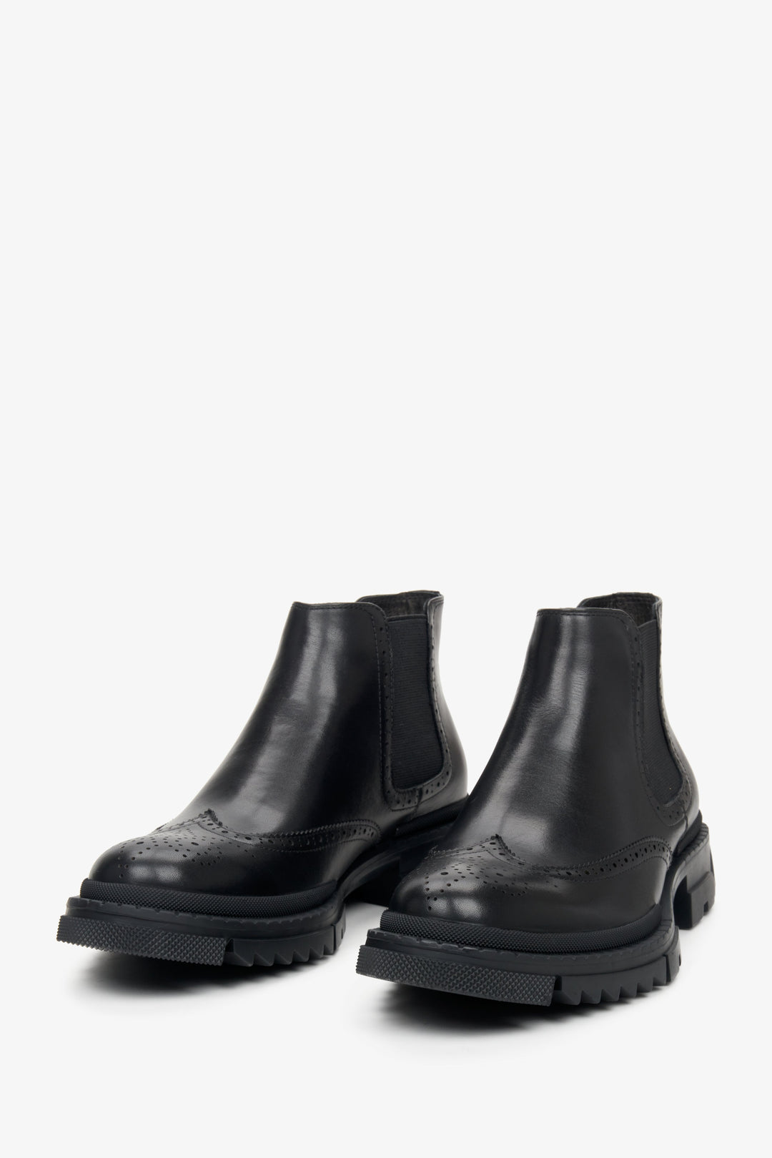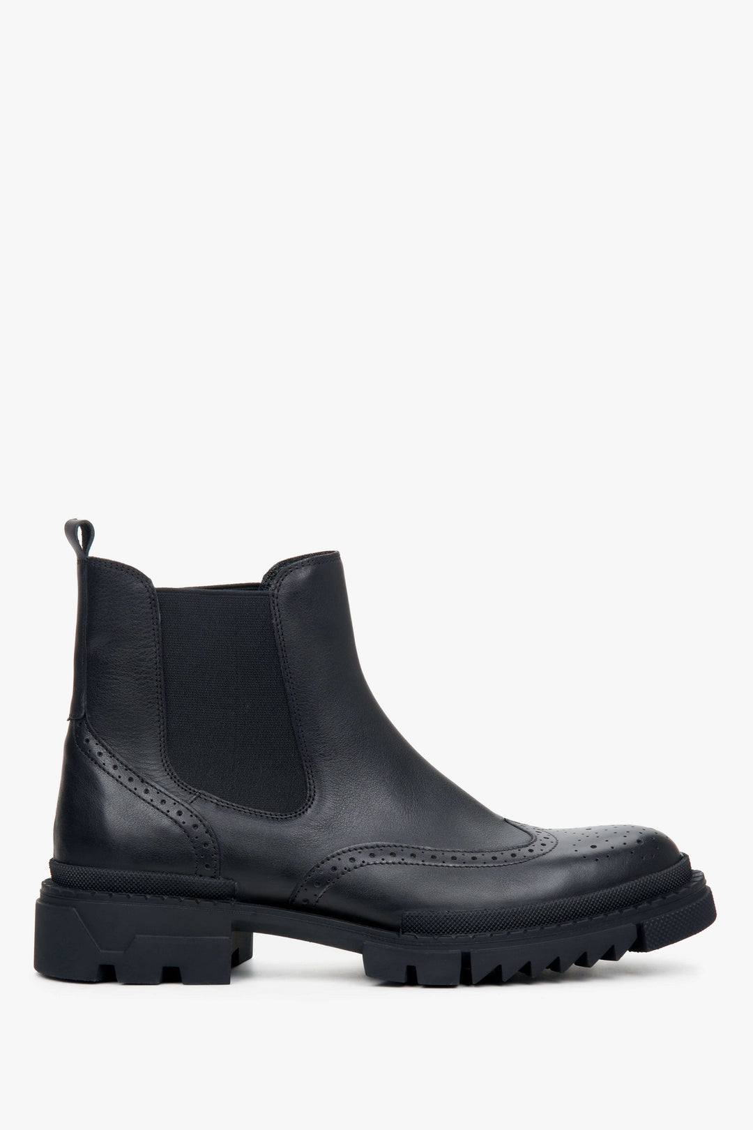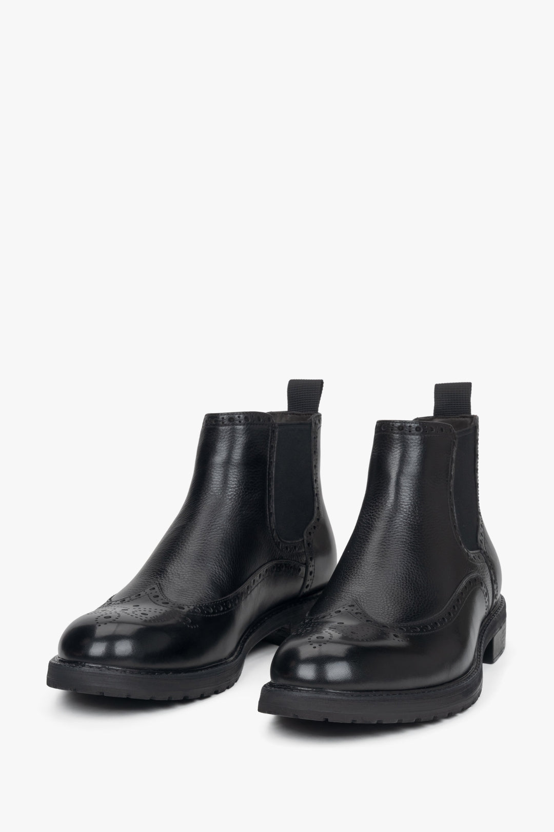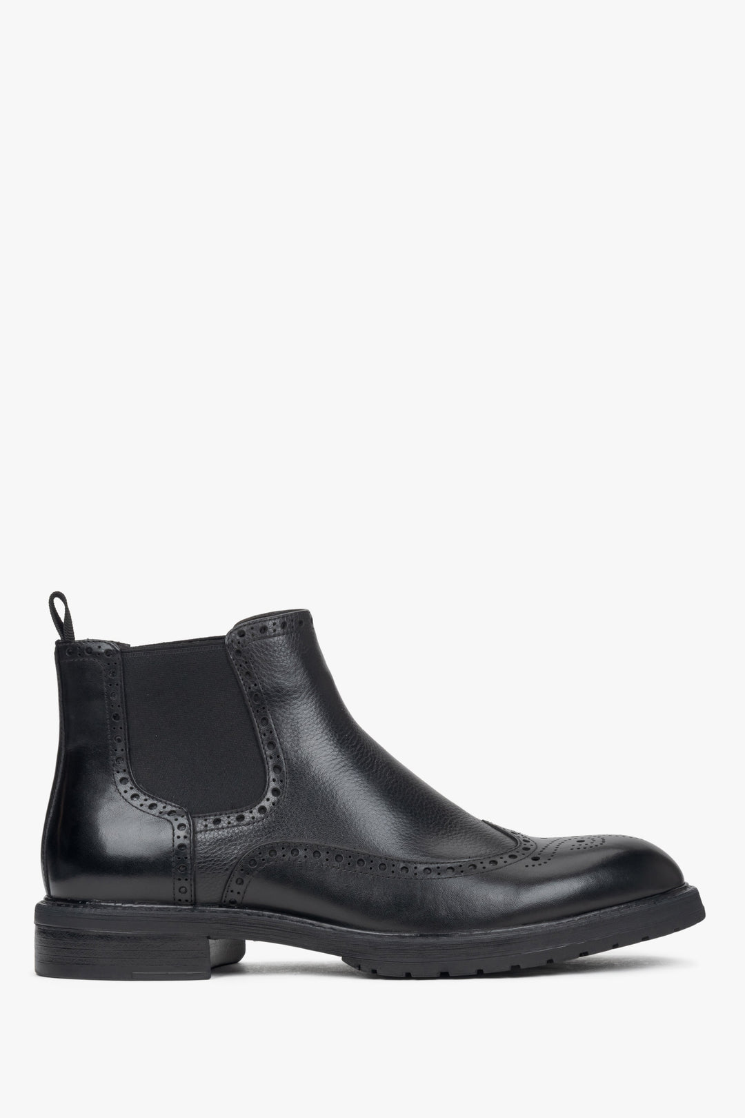 169,00 €Sale price 120,00 €Men's Black Leather Chelsea Boots with Folk Perforation Estro ER00116142