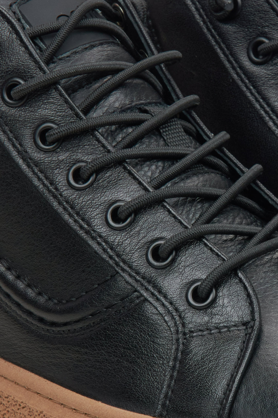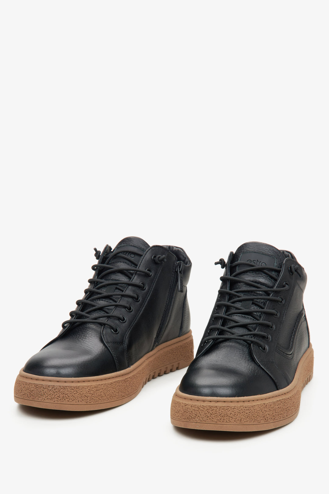139,00 €Sale price 115,00 €Men's Black Leather High-Top Sneakers with Insulation Estro ER00113684
