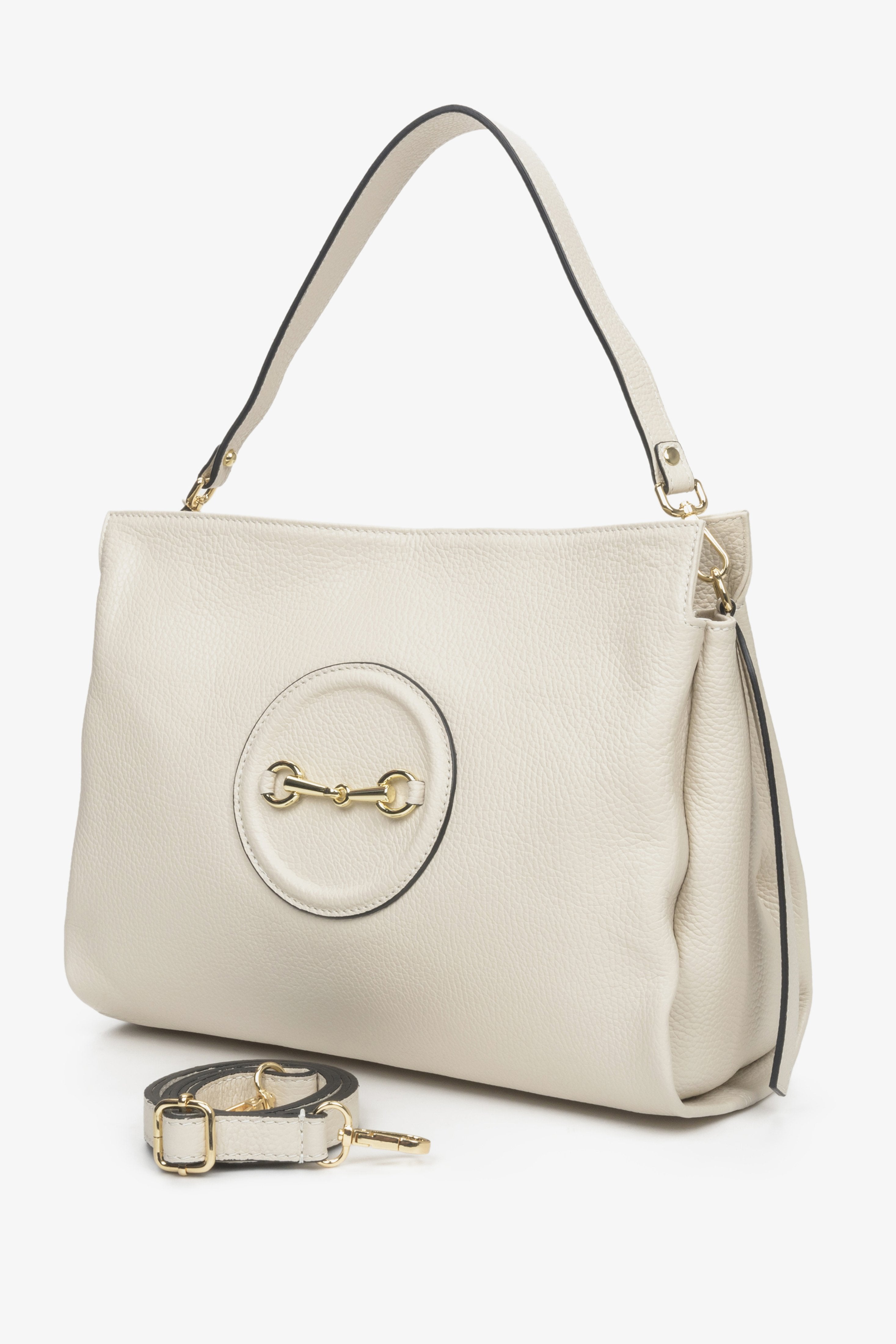 Women's Light Beige Shoulder Bag made of Natural Leather Estro ER00111736