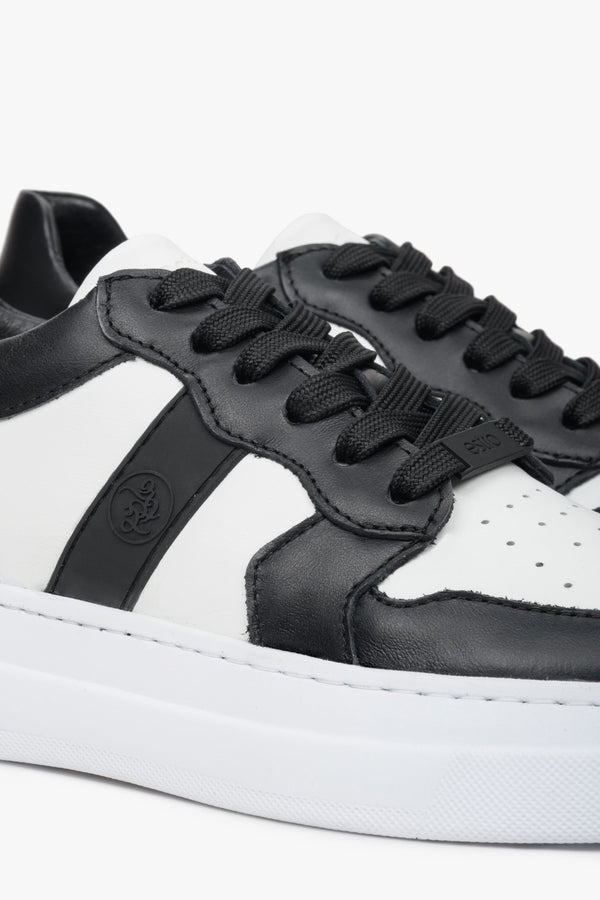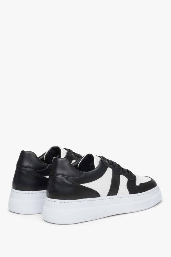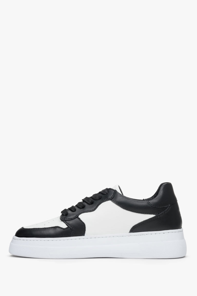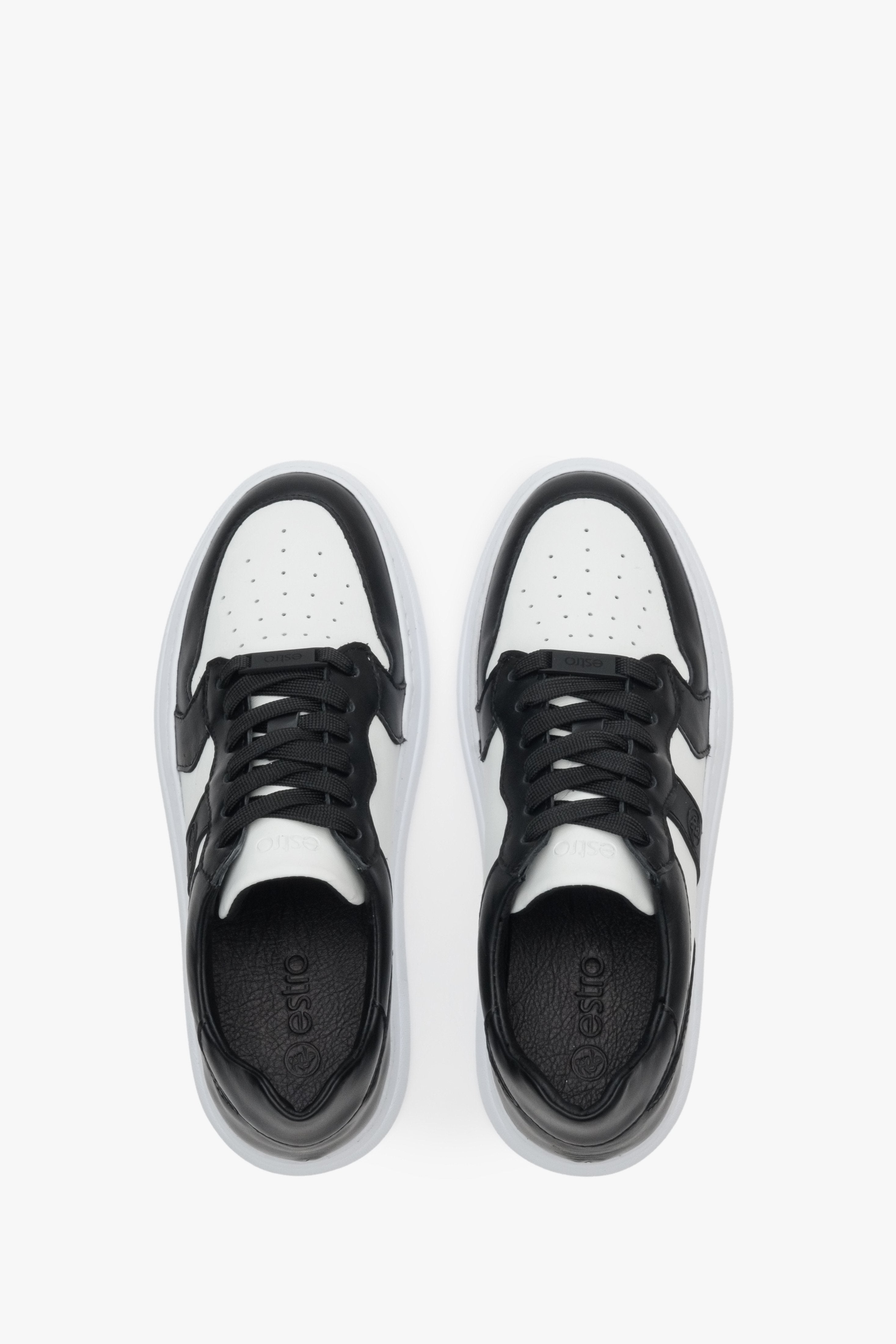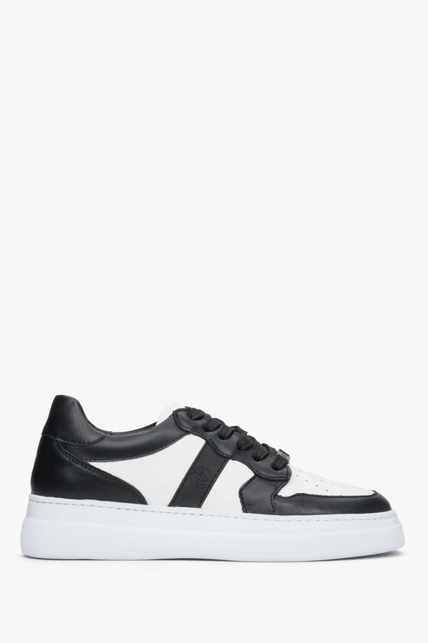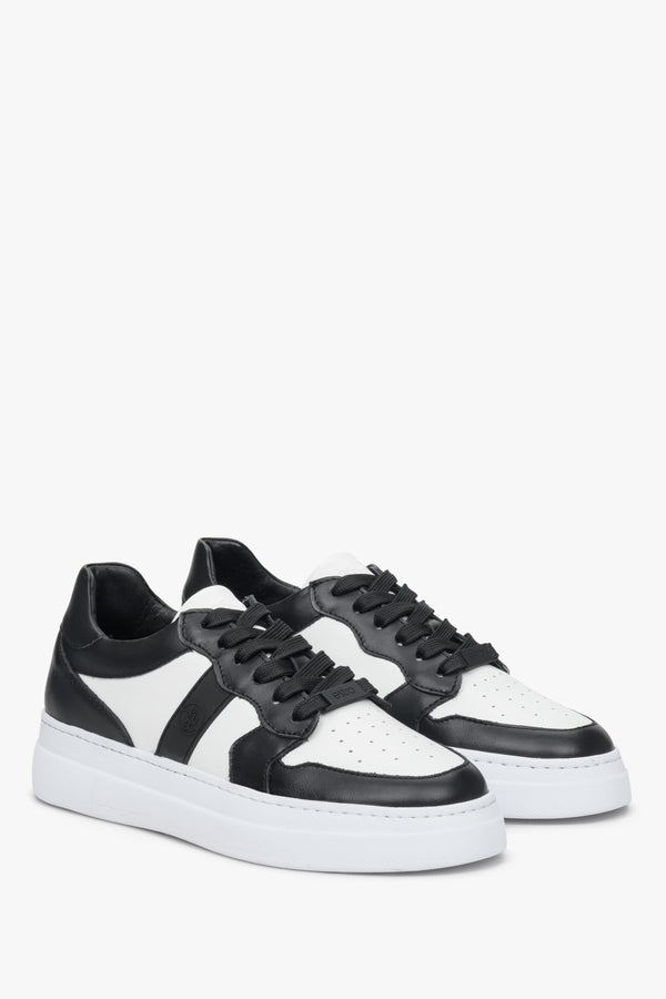 Women's Black & White Leather Low-Top Sneakers Estro ER00113060