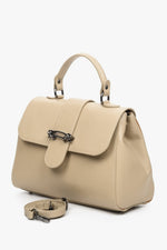 Sand beige Estro women's handbag made of natural leather - a silver buckle.