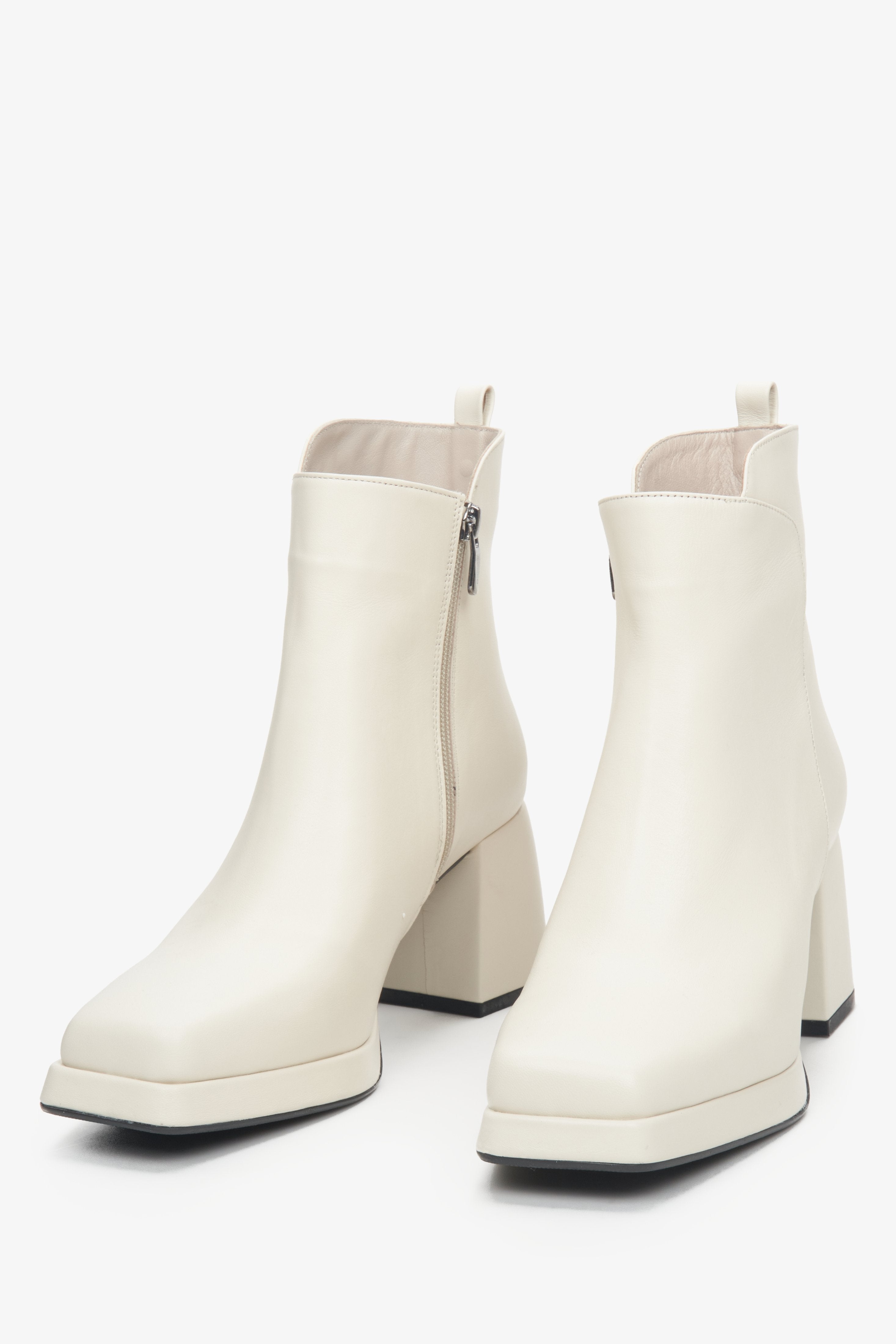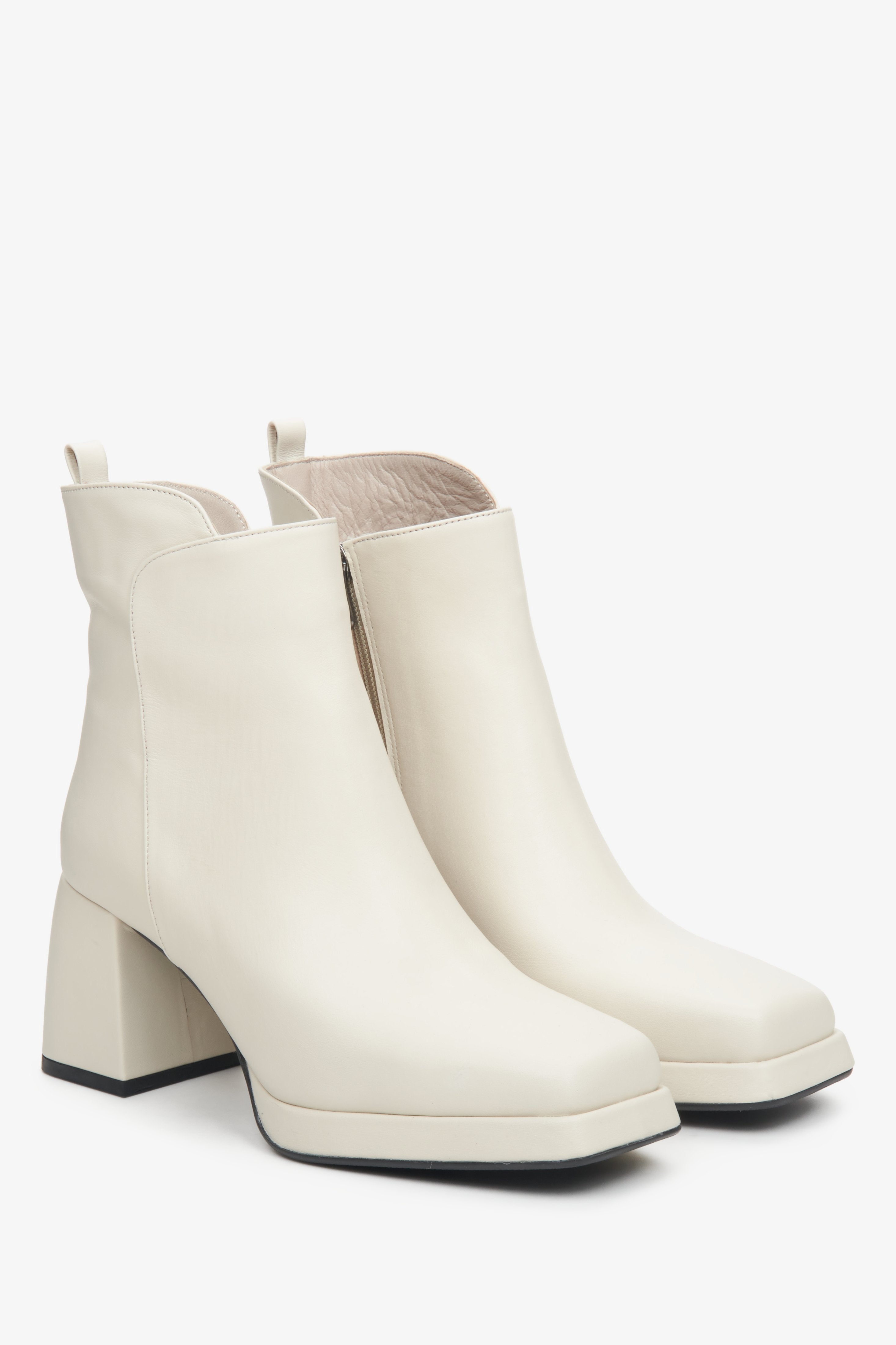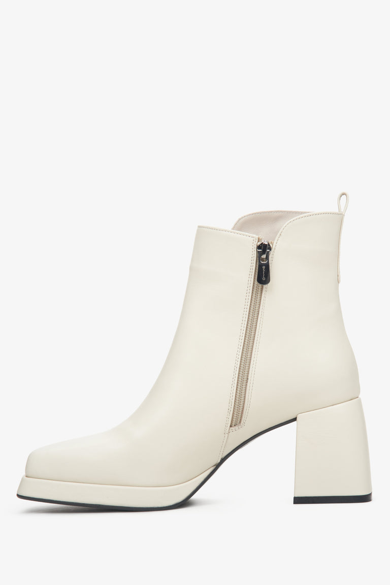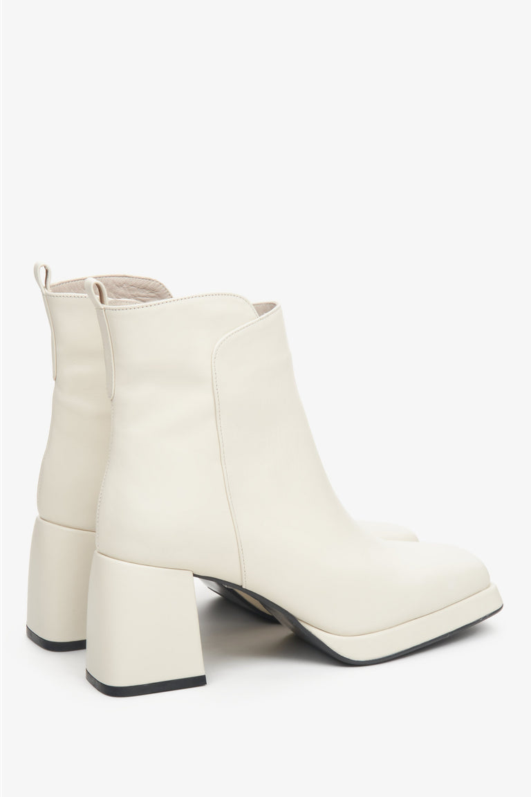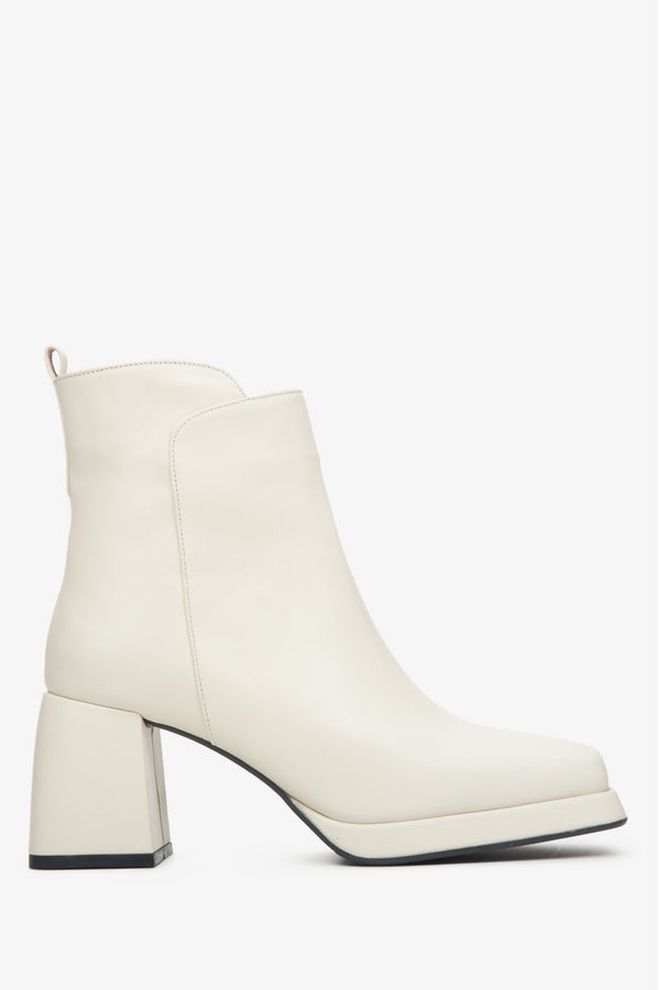 Women's Light Beige Block Heel Ankle Boots made of Genuine Leather ER00113920