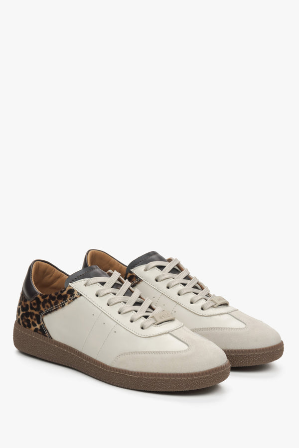 Women's Beige Leopard Print Sneakers made of Italian Genuine Leather Estro ER00115840