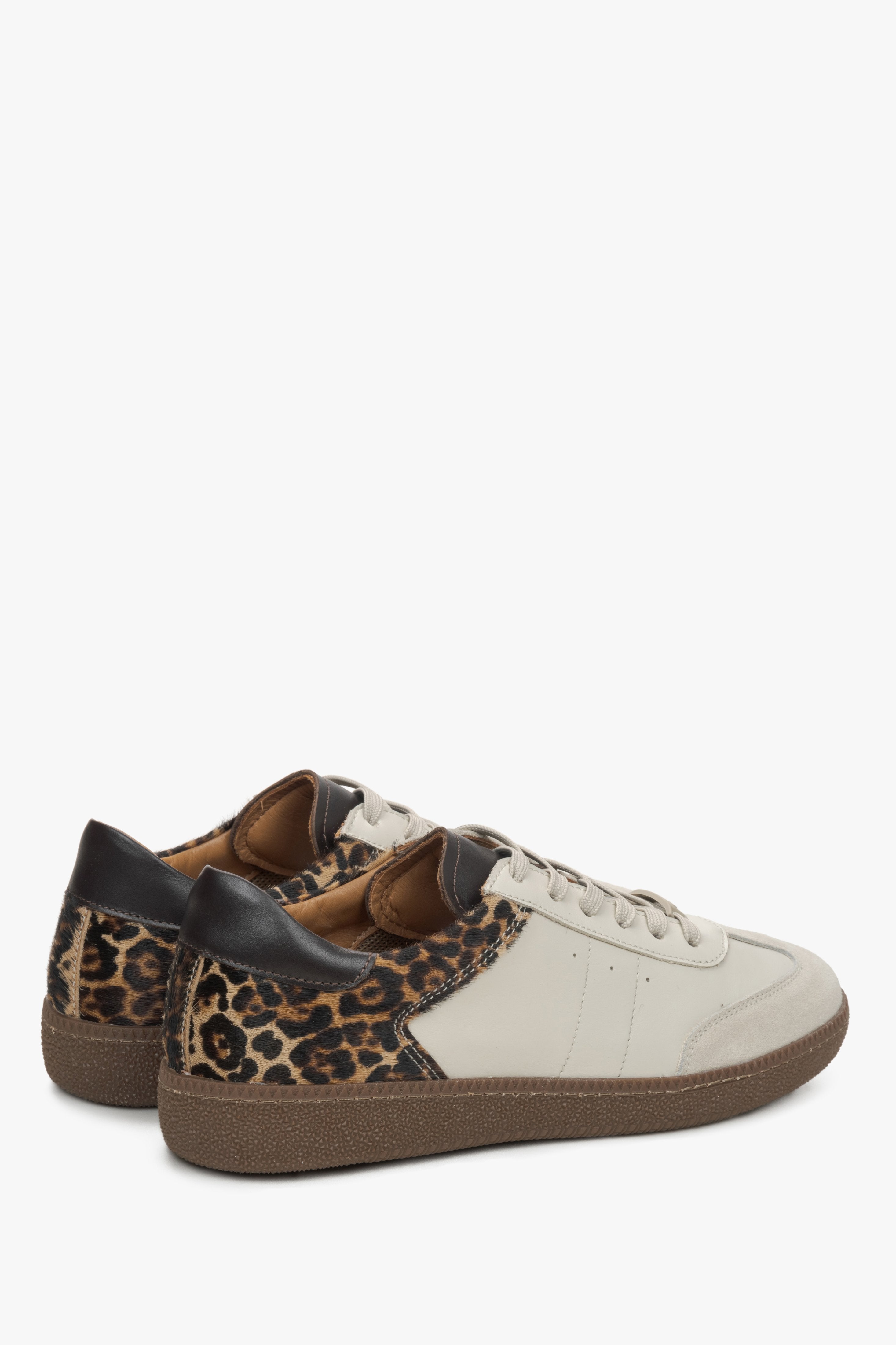 Indulge in luxury with these women's beige leopard print Sneakers, crafted from Italian genuine leather. Elevate your style with a touch of wild sophistication.