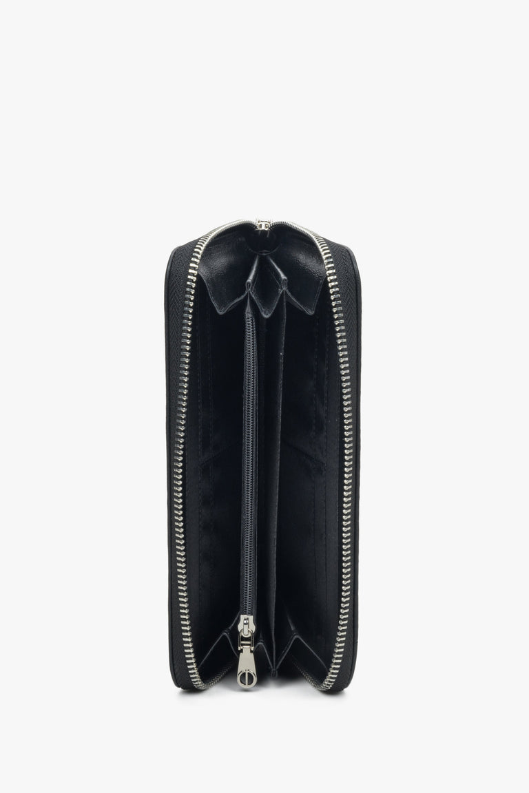 This luxury leather wallet is sure to make a statement. Crafted from supple black leather with a classic silhouette, the Estro features multiple compartments for optimal storage and organization. Its sophisticated look and feel will be appreciated for seasons to come.