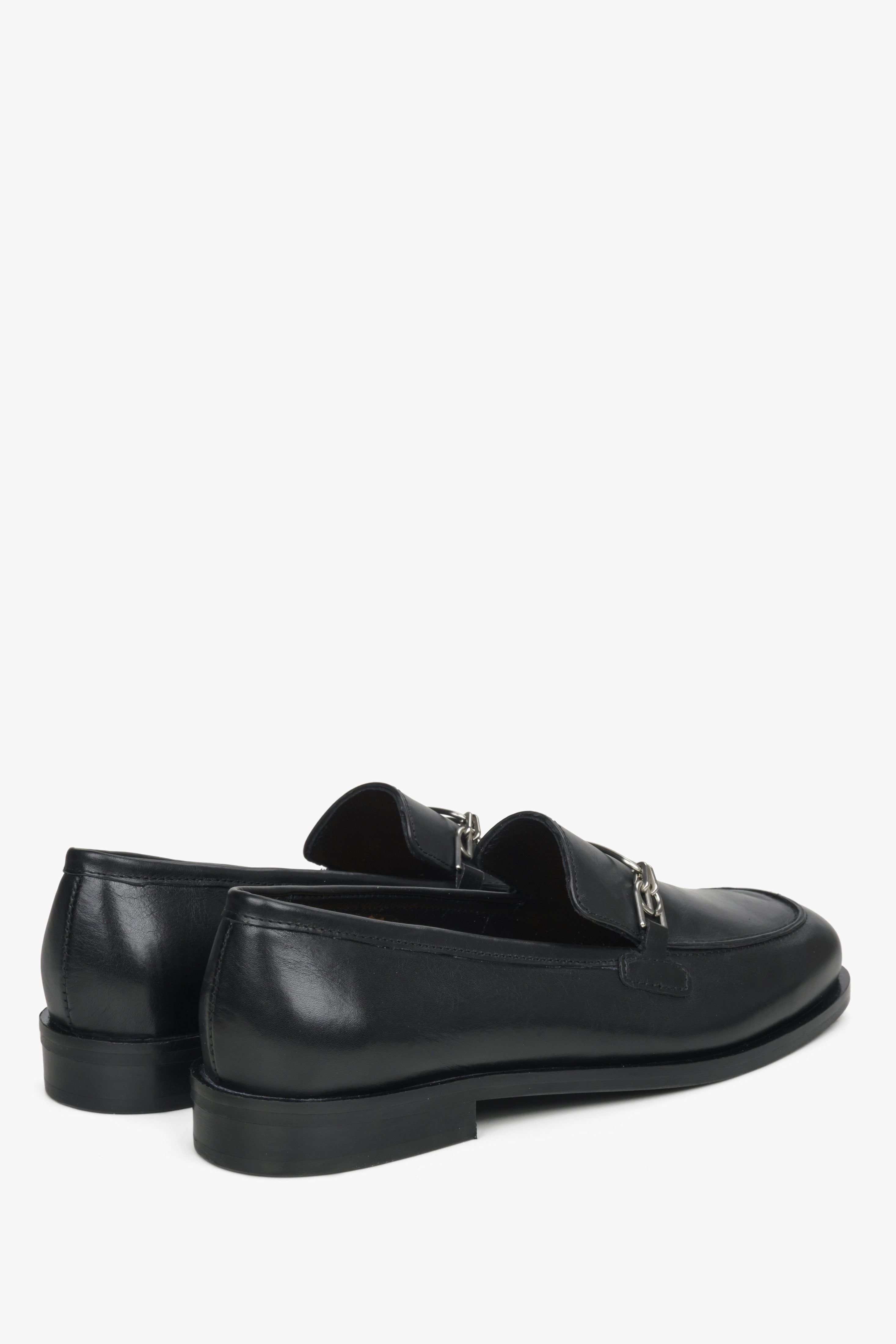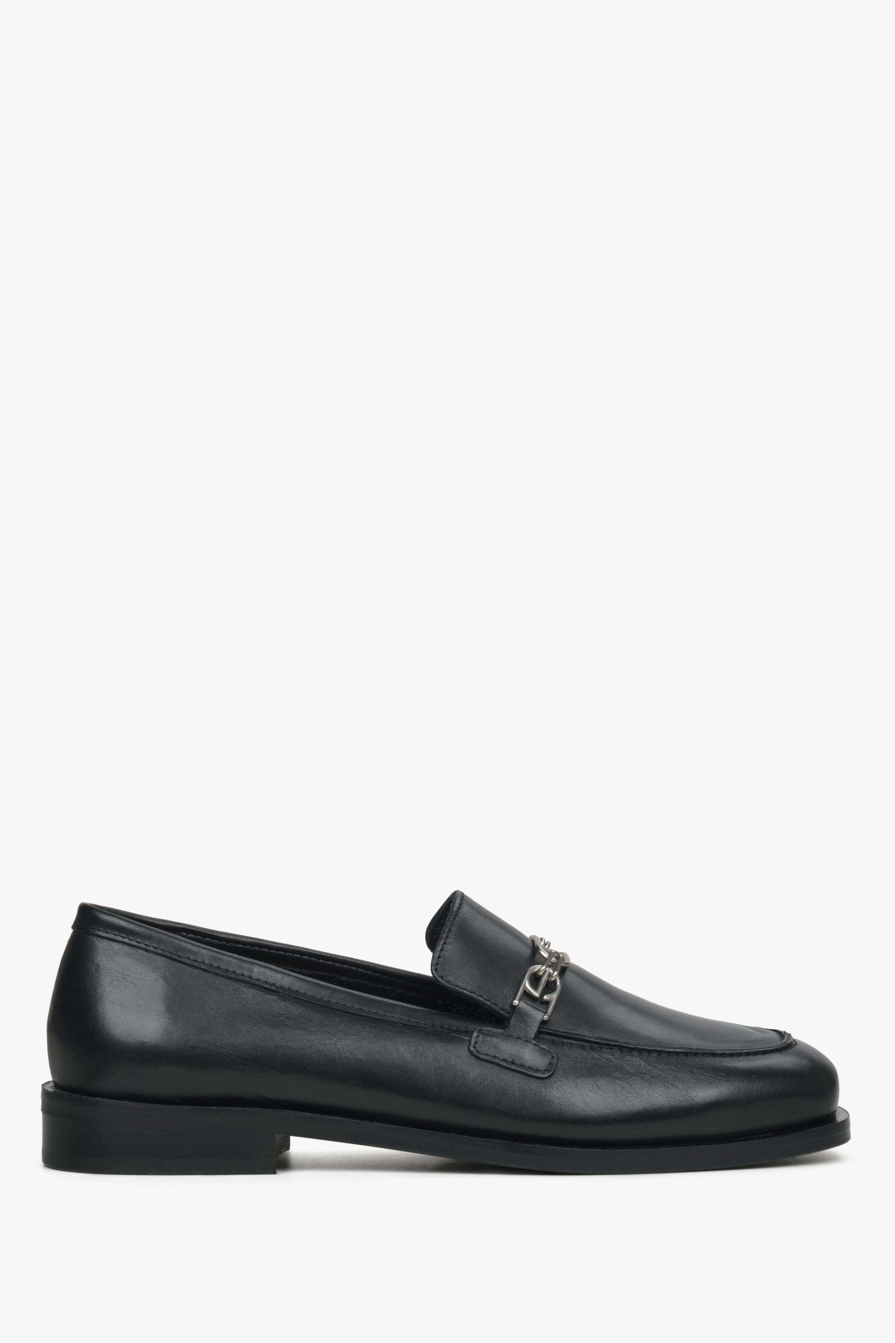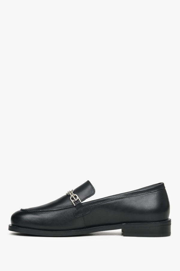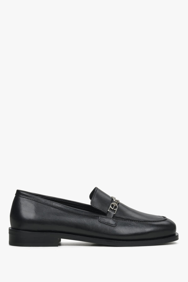 Women's Black Leather Penny Loafers with a Silver Chain Estro ER00114527