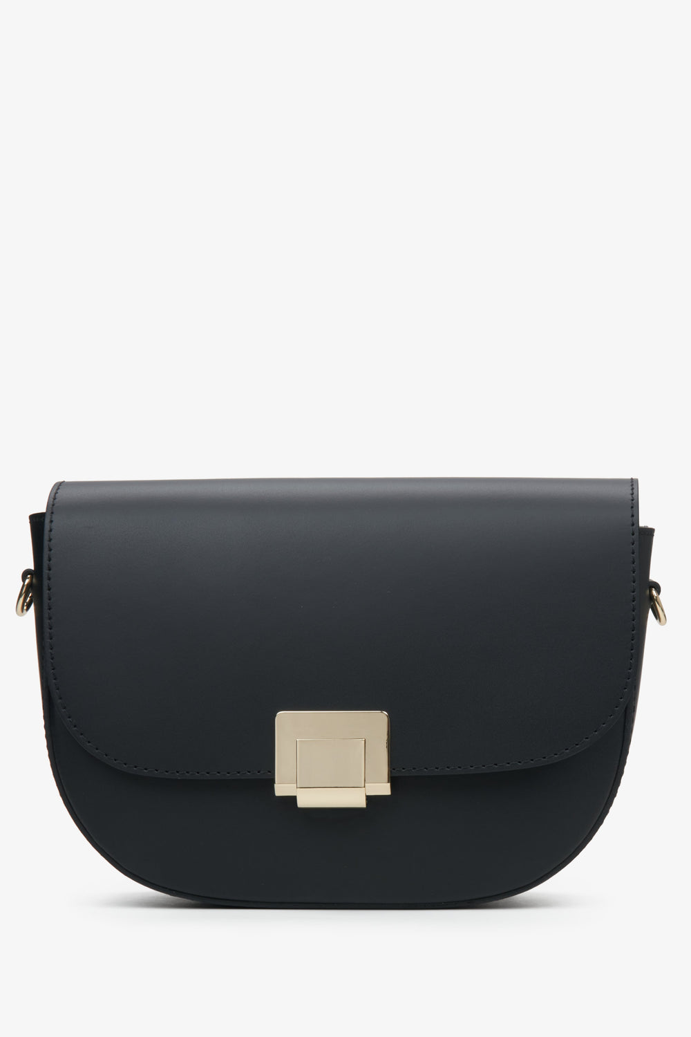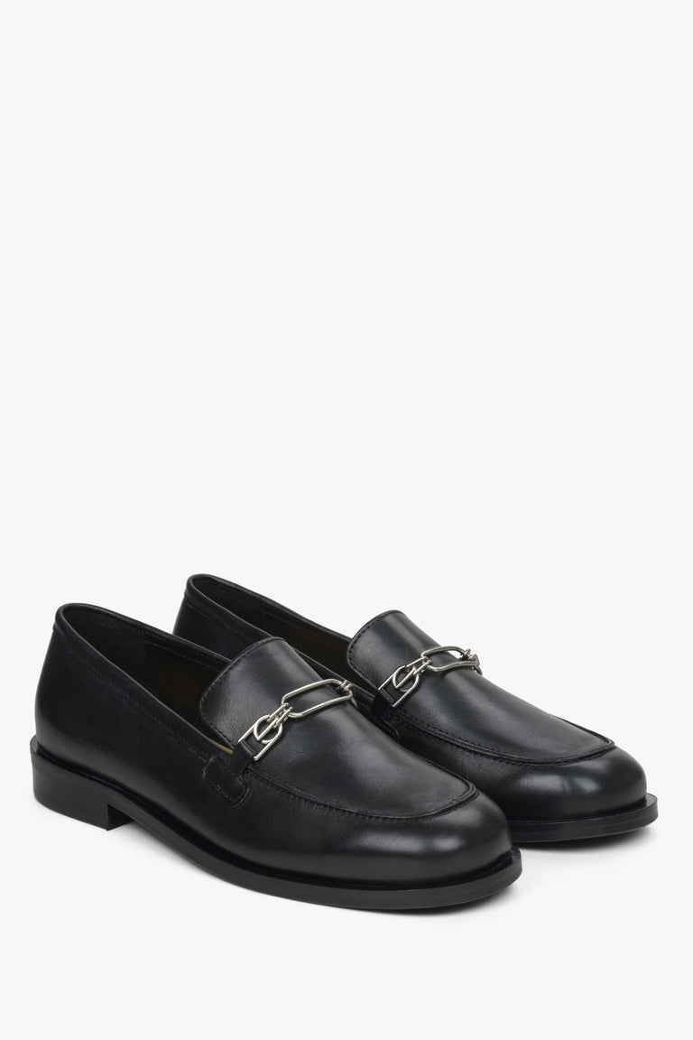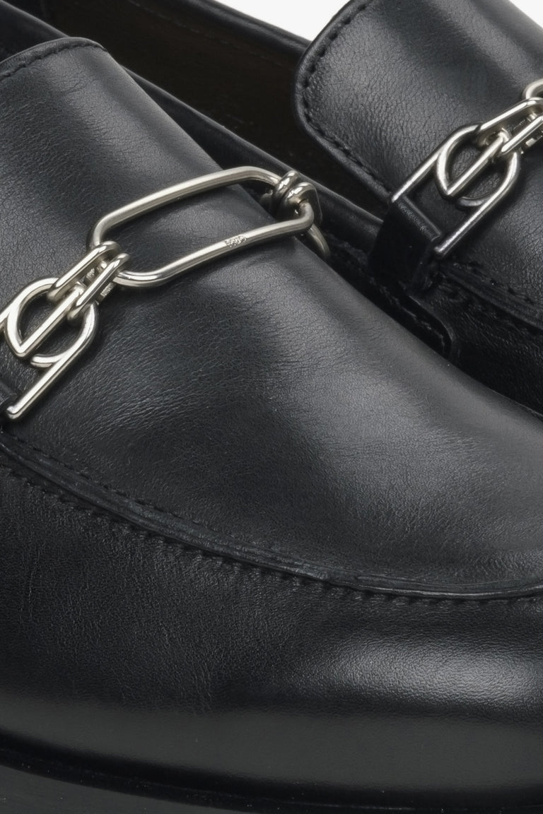 Women's Black Leather Penny Loafers with a Silver Chain Estro ER00114527