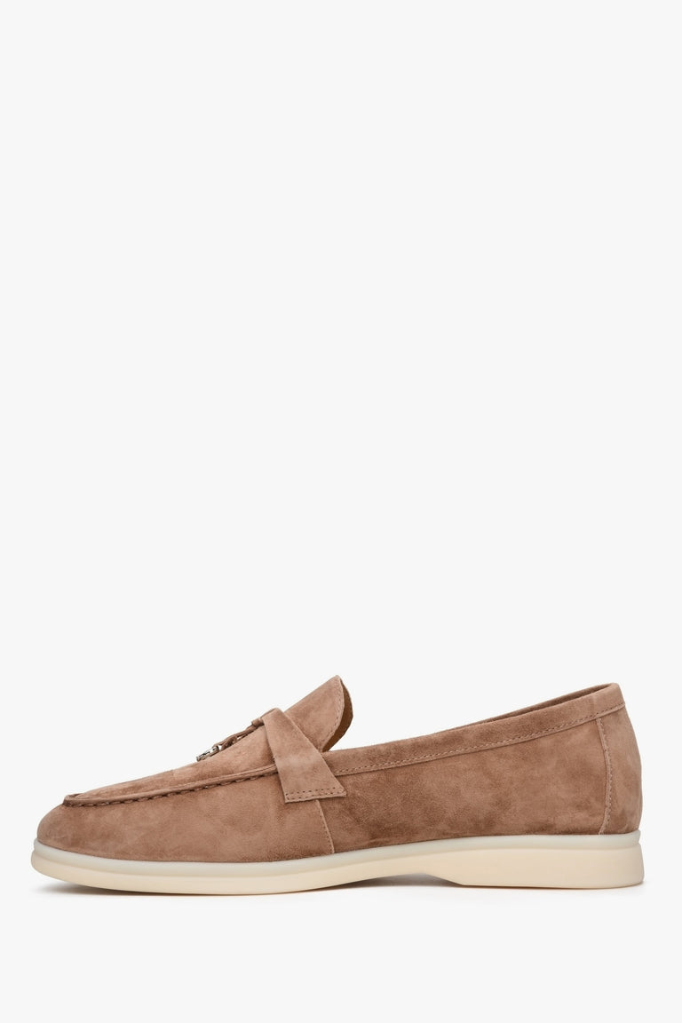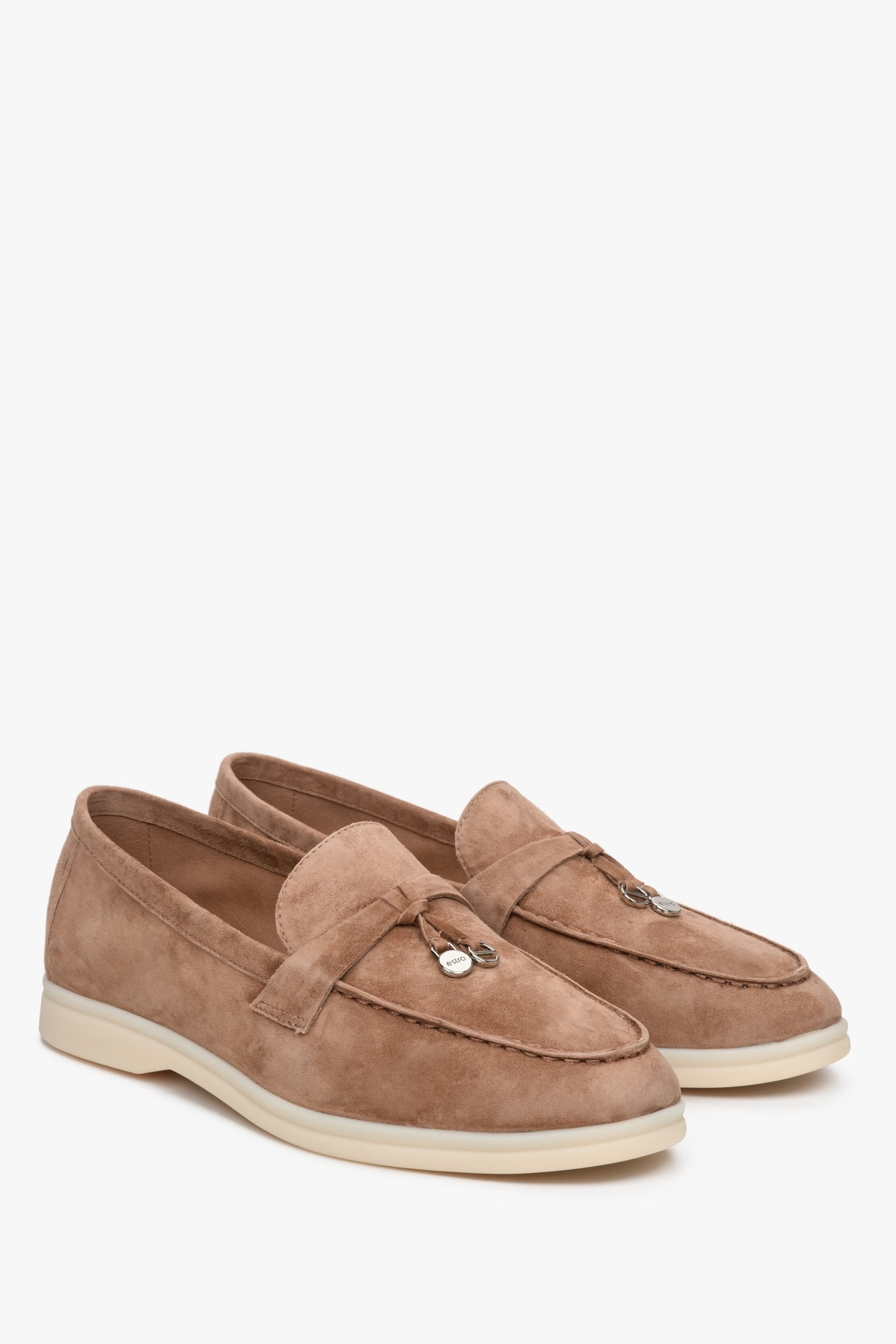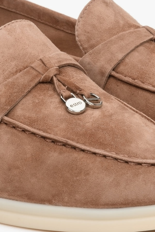 Women's Brown Tassel Loafers made of Velour Estro ER00112679