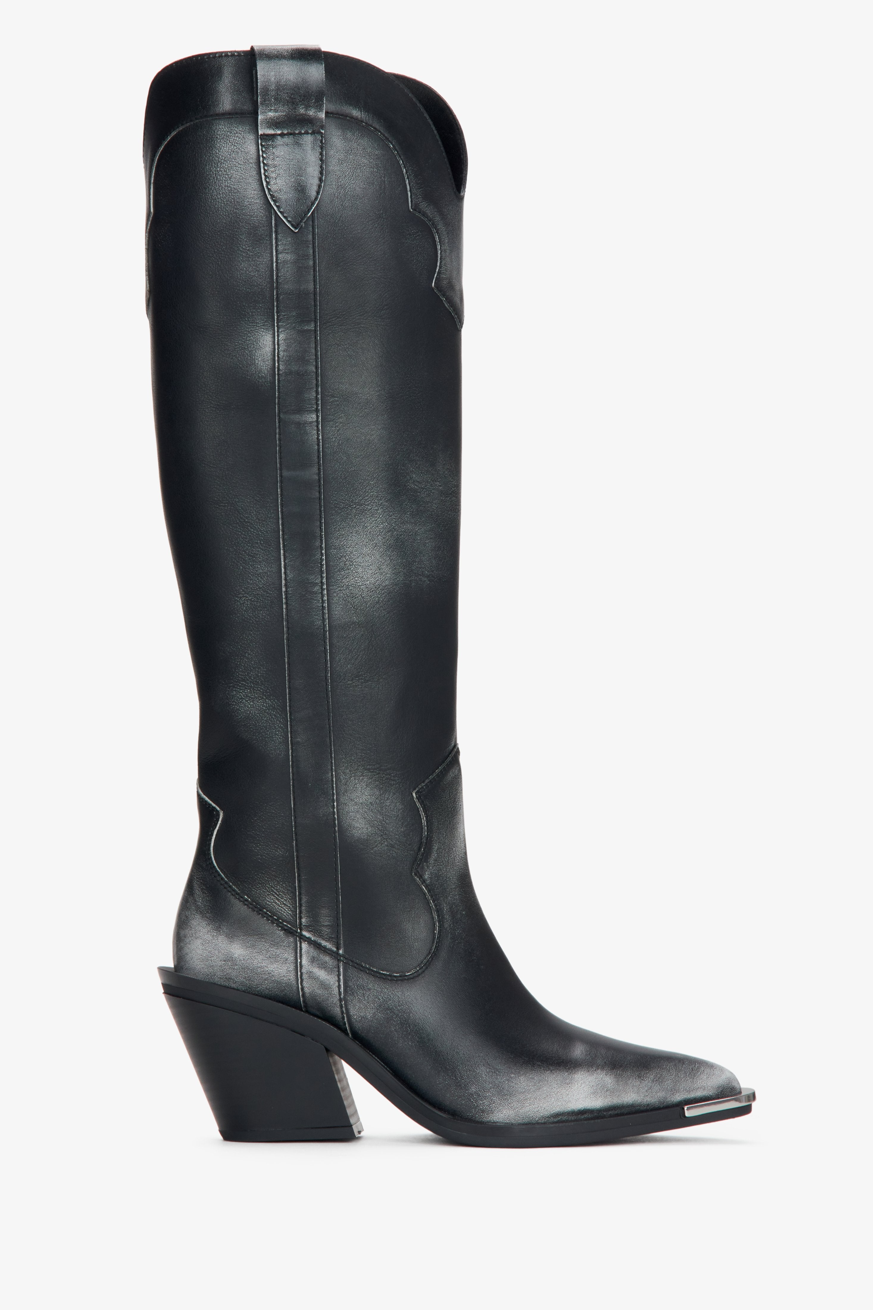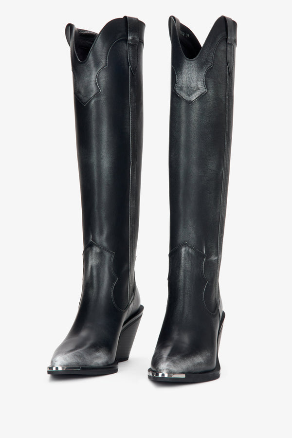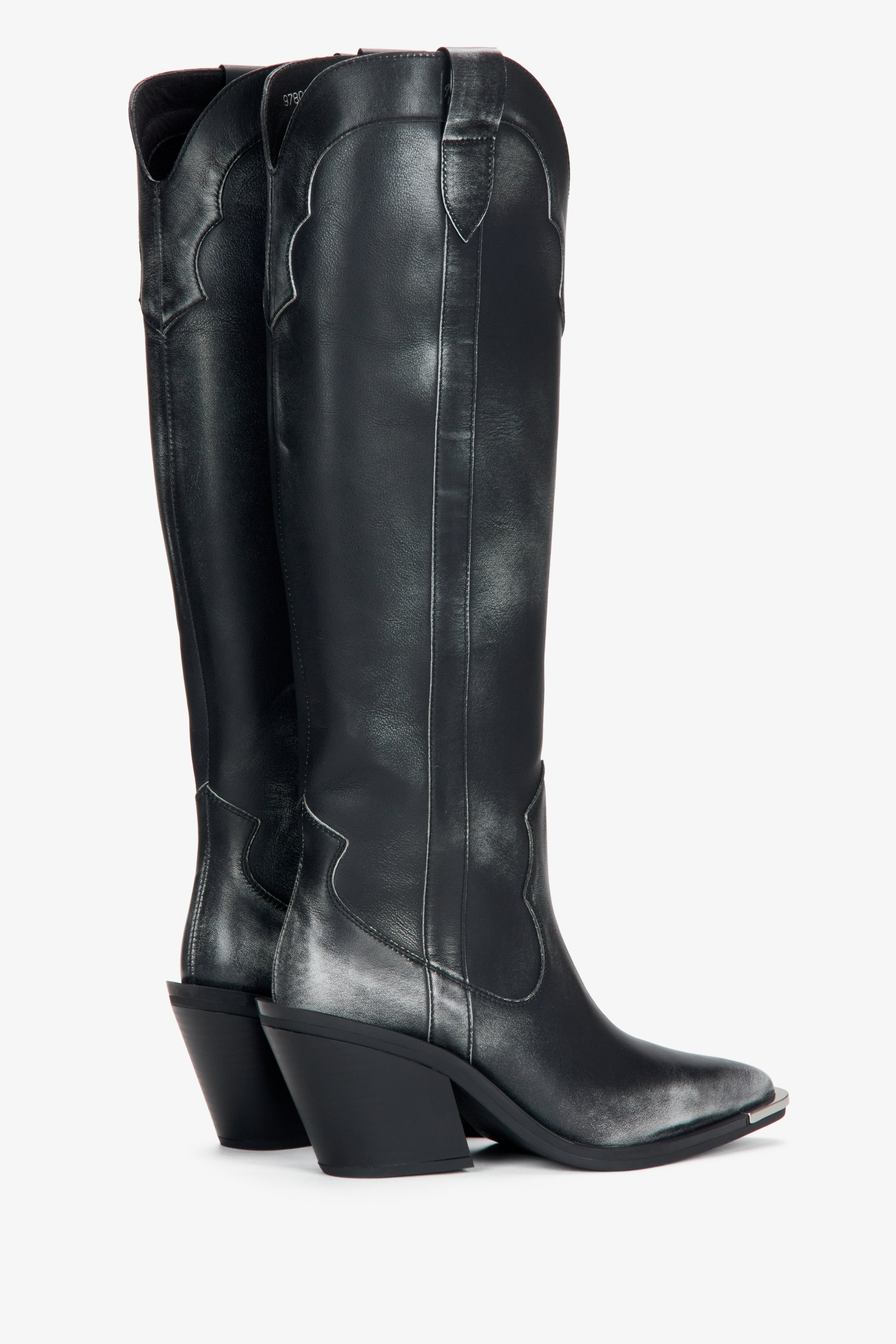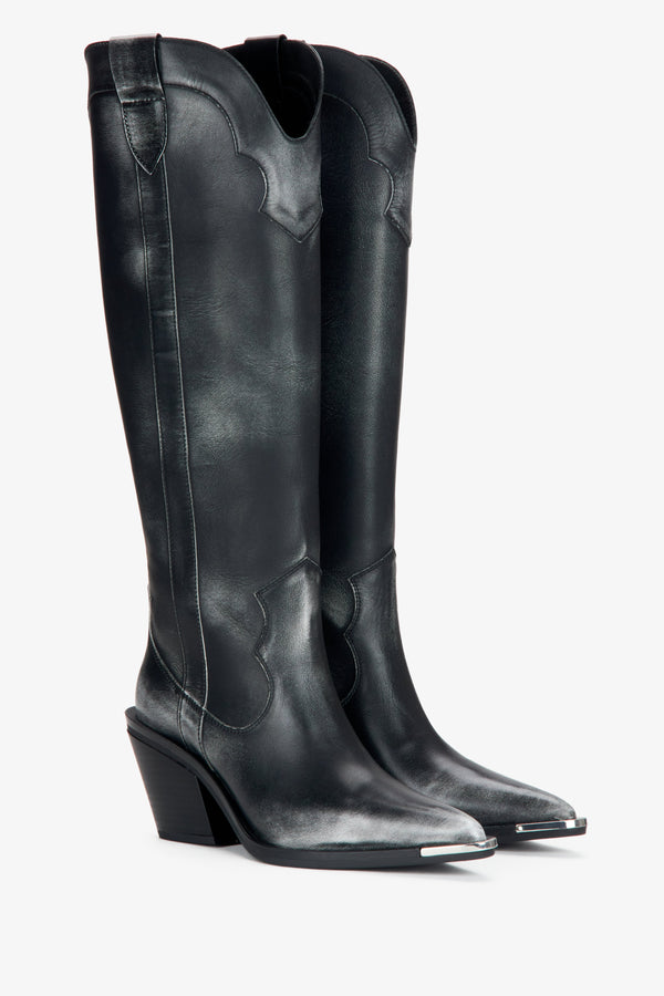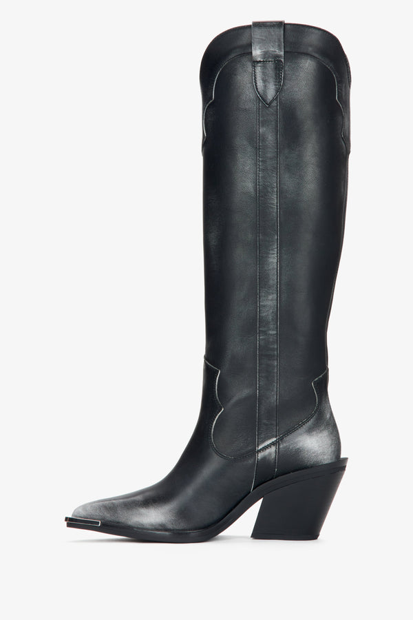 Women's High Black Vintage Cowboy Boots made of Italian Genuine Leather Estro ER00116042