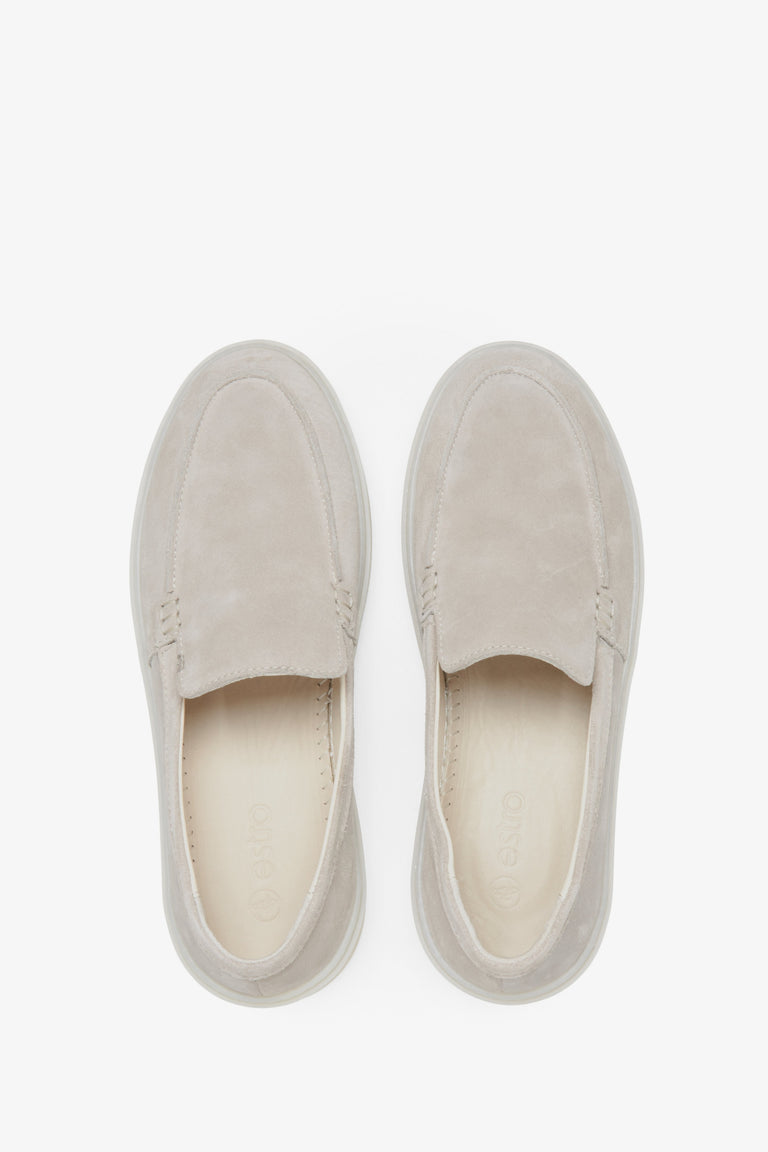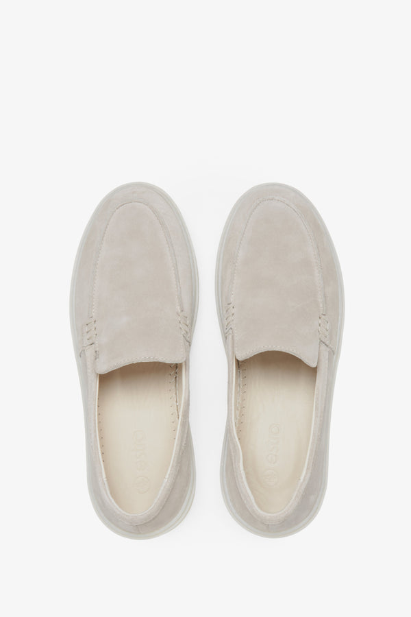 Women's Light Beige Loafers made of Genuine Italian Velour Estro ER00114886