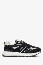 These black sneakers blend eco-leather and textile materials, delivering a contemporary yet comfortable style. Ideal for fall and spring, they feature a lace-up design for a secure fit and an understated look that complements casual outfits. Lightweight and versatile, these sneakers are perfect for daily wear, providing both function and style.