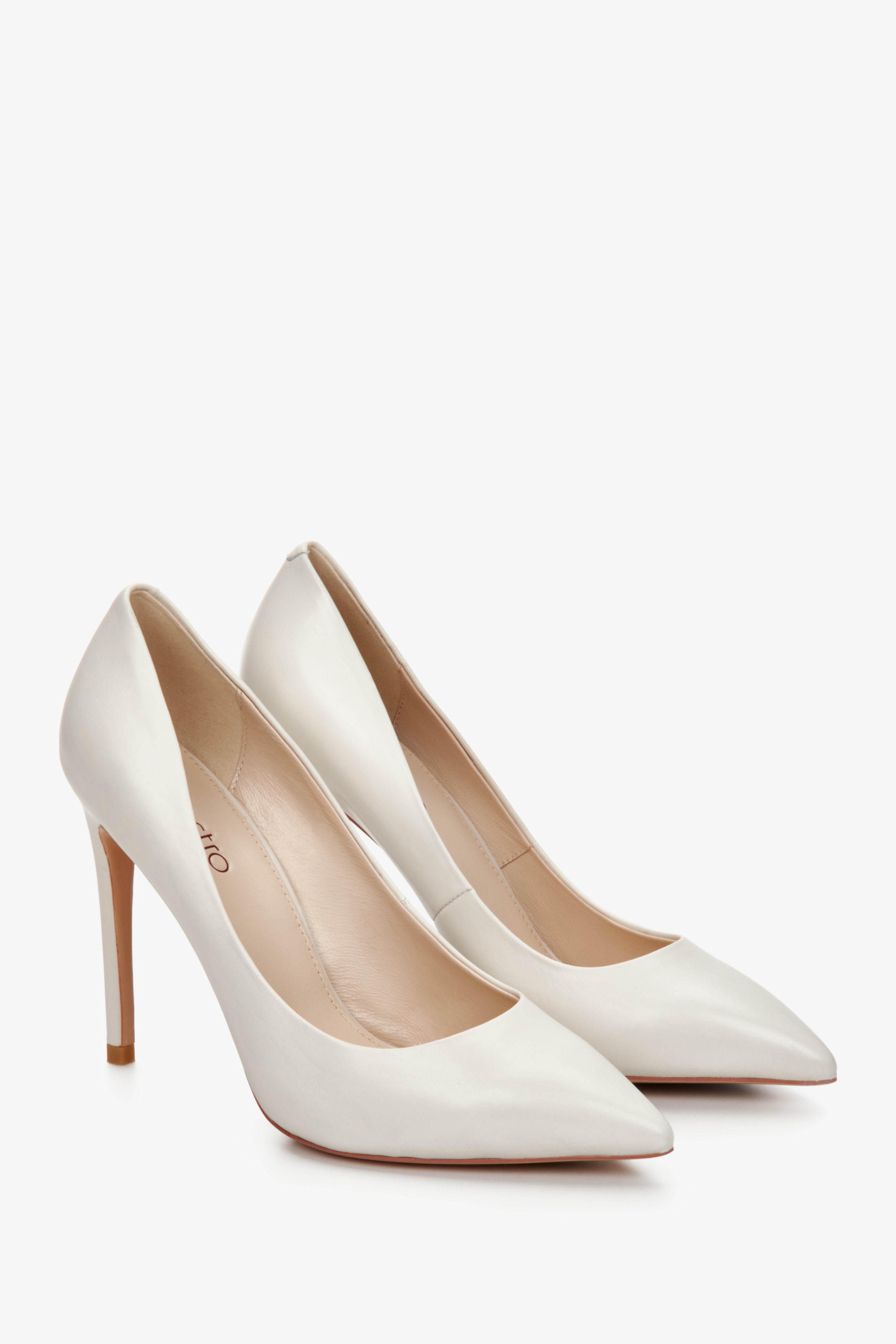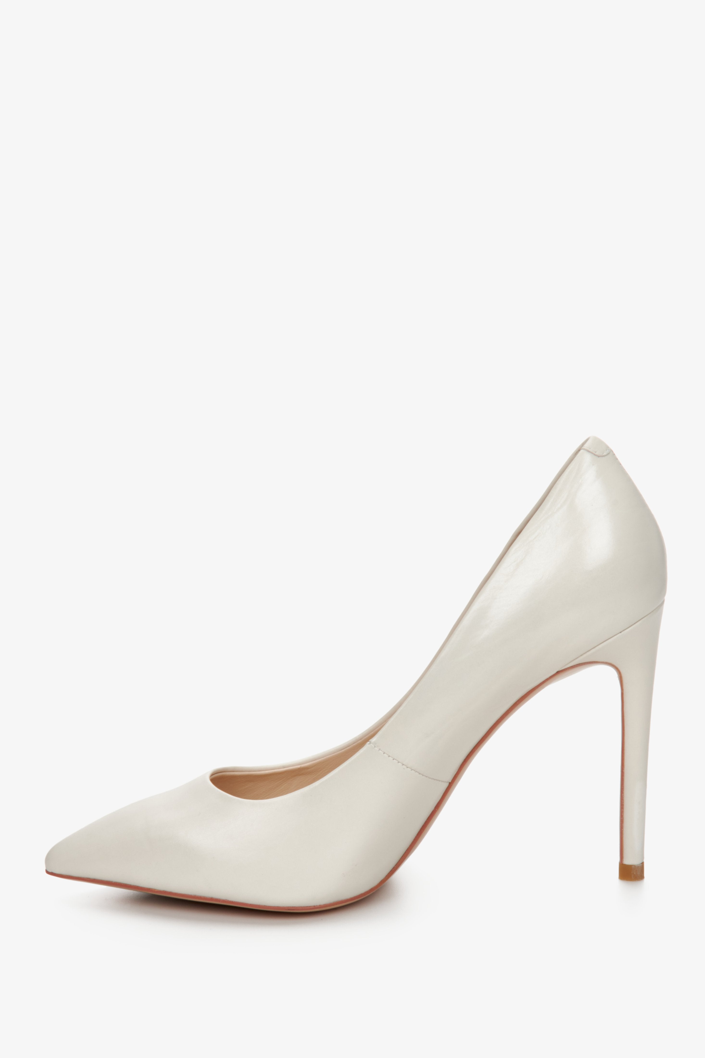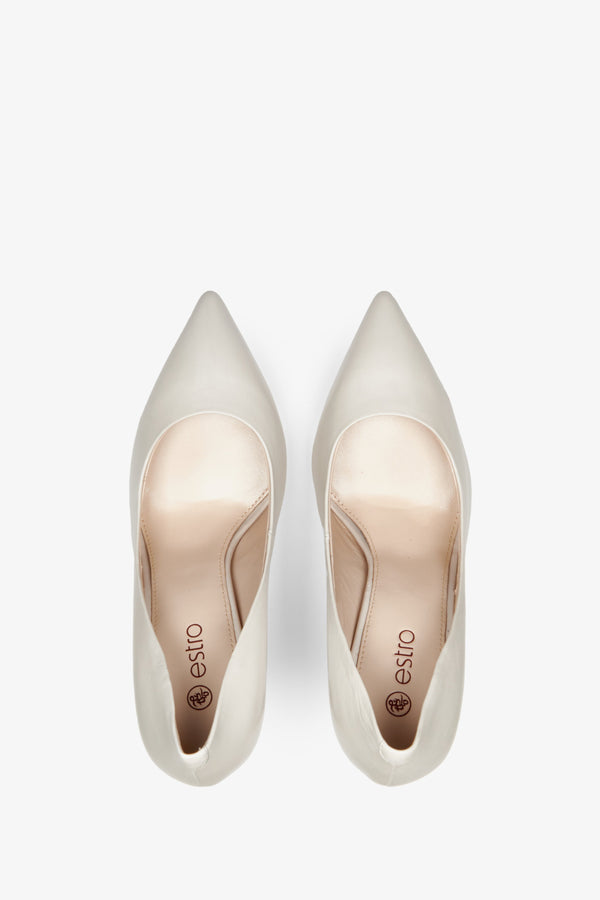 Women's Light Beige Leather Pointed Toe High Heels Estro ER00110041