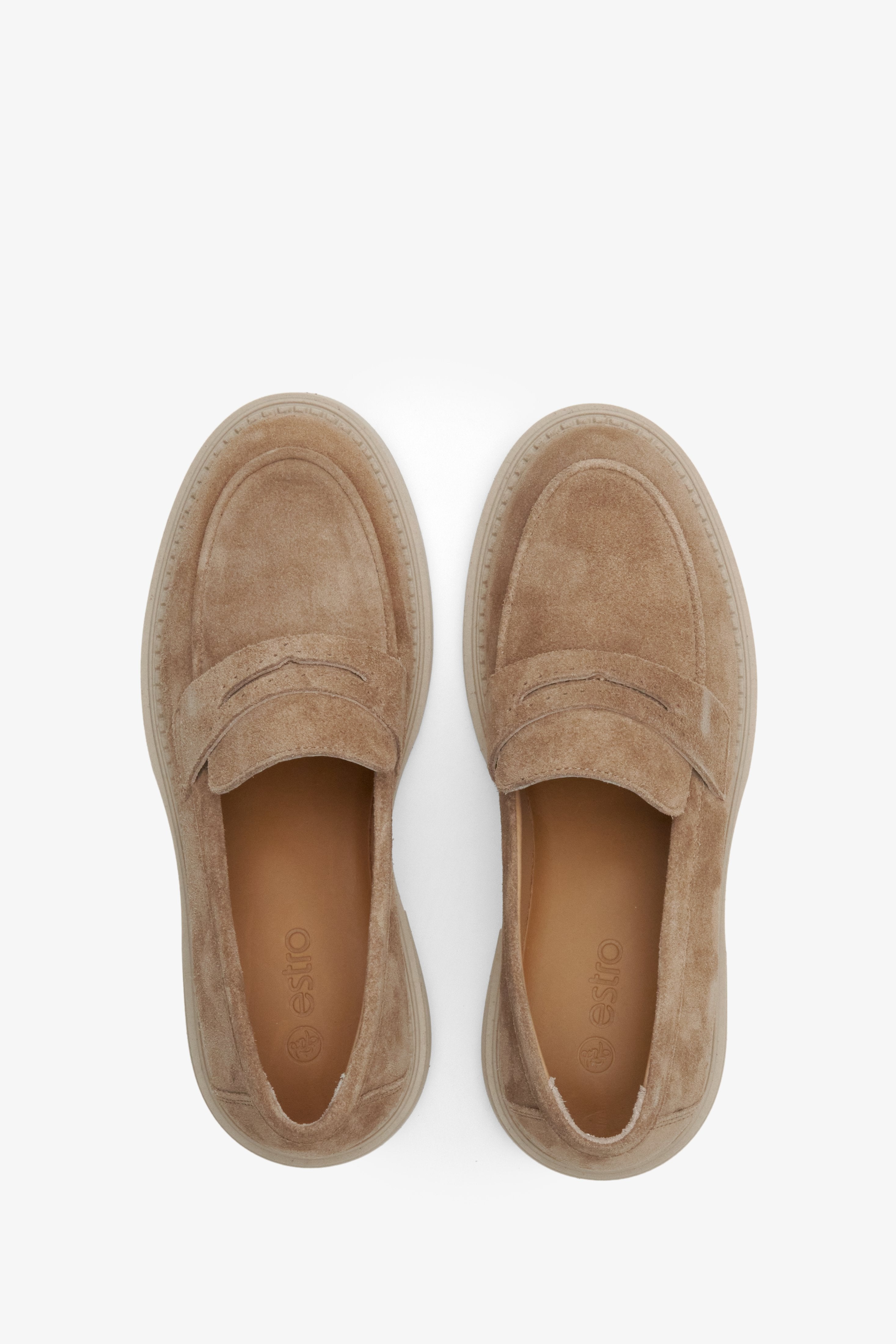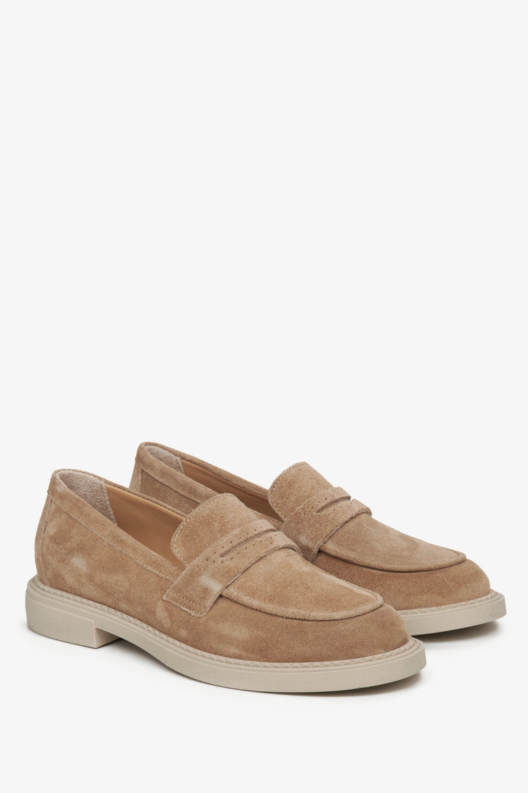 Women's Brown Penny Loafers made of Genuine Italian Velour Estro ER00114533