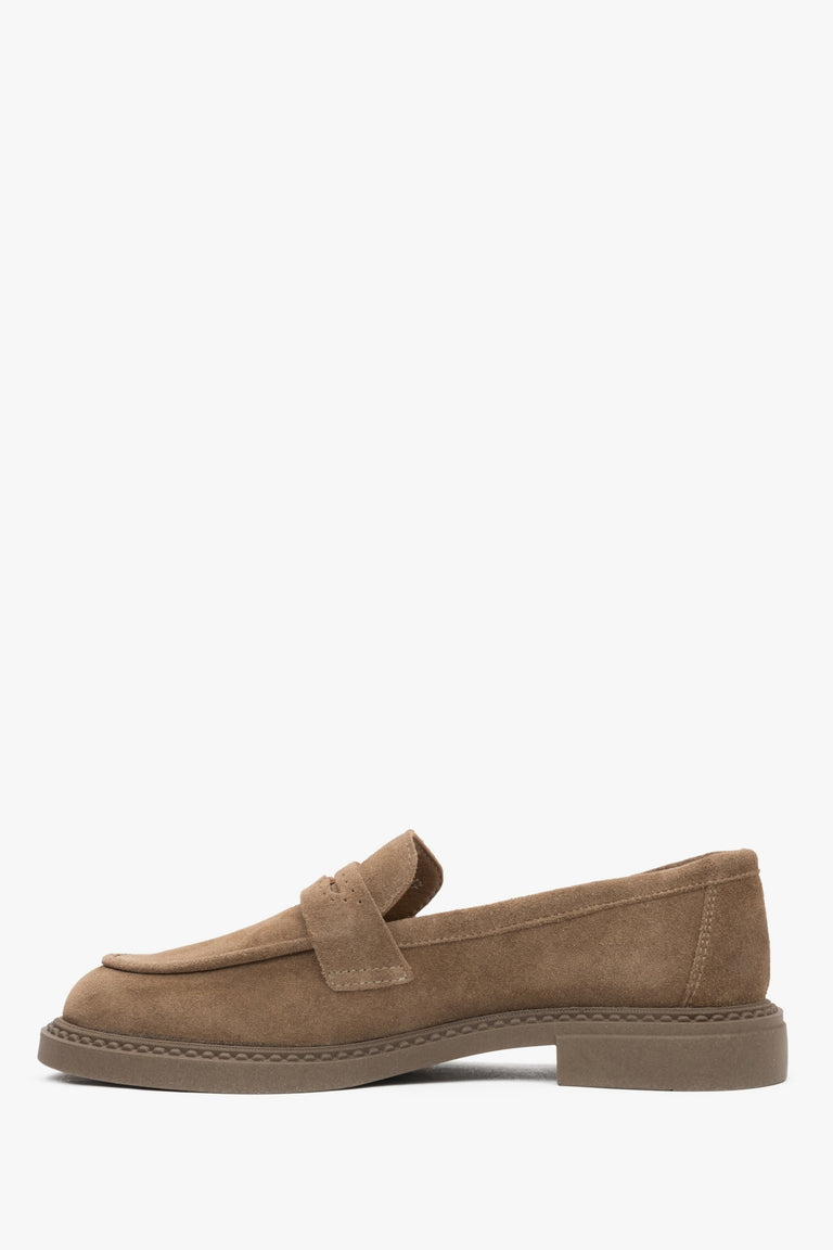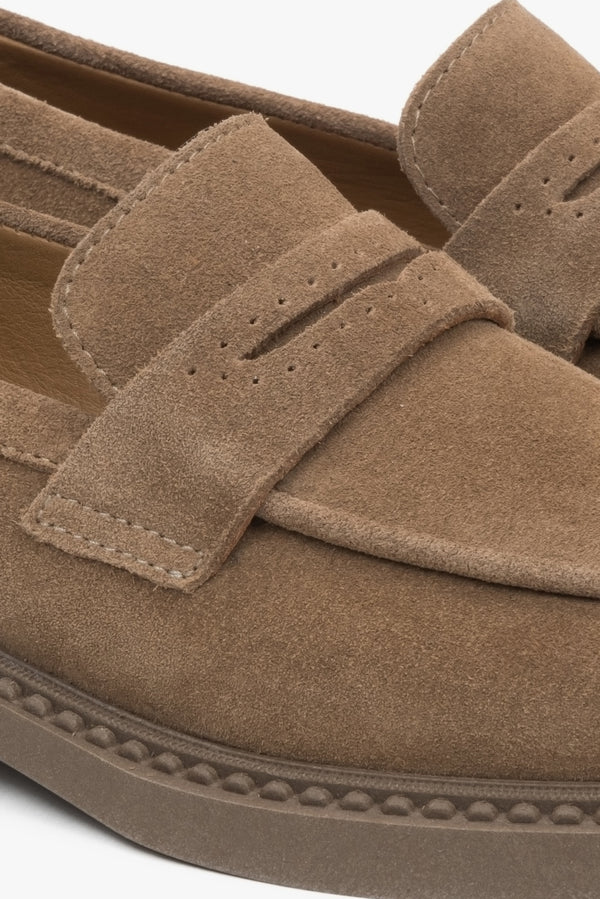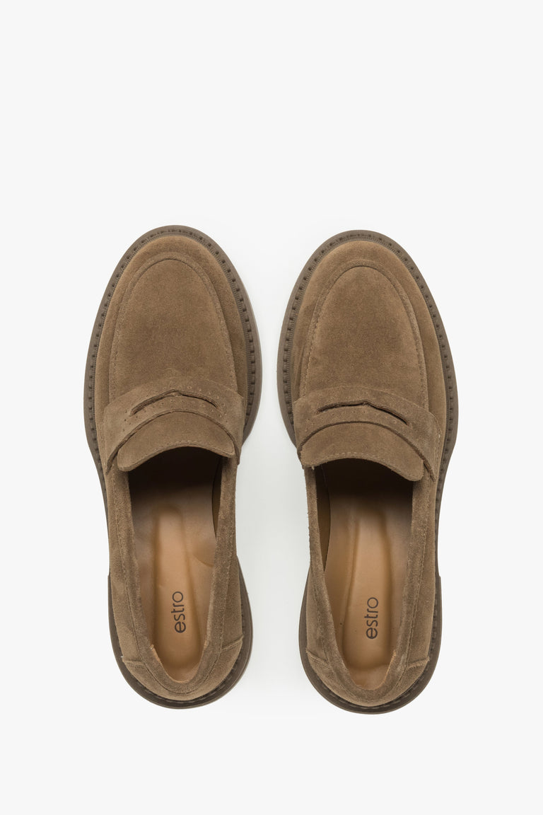 Women's Light Brown Penny Loafers made of Premium Italian Genuine Velour Estro ER00116886