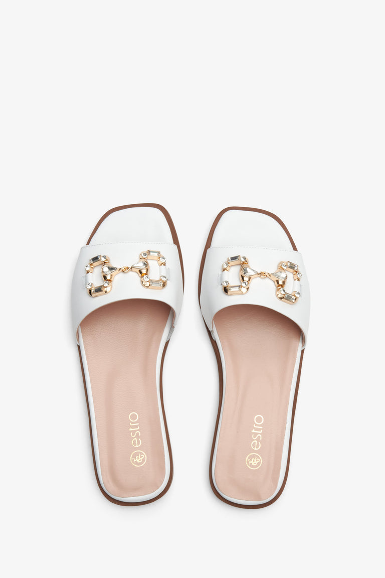 Women's White Flat Slide Sandals with Gold Ornament Estro ER00113079