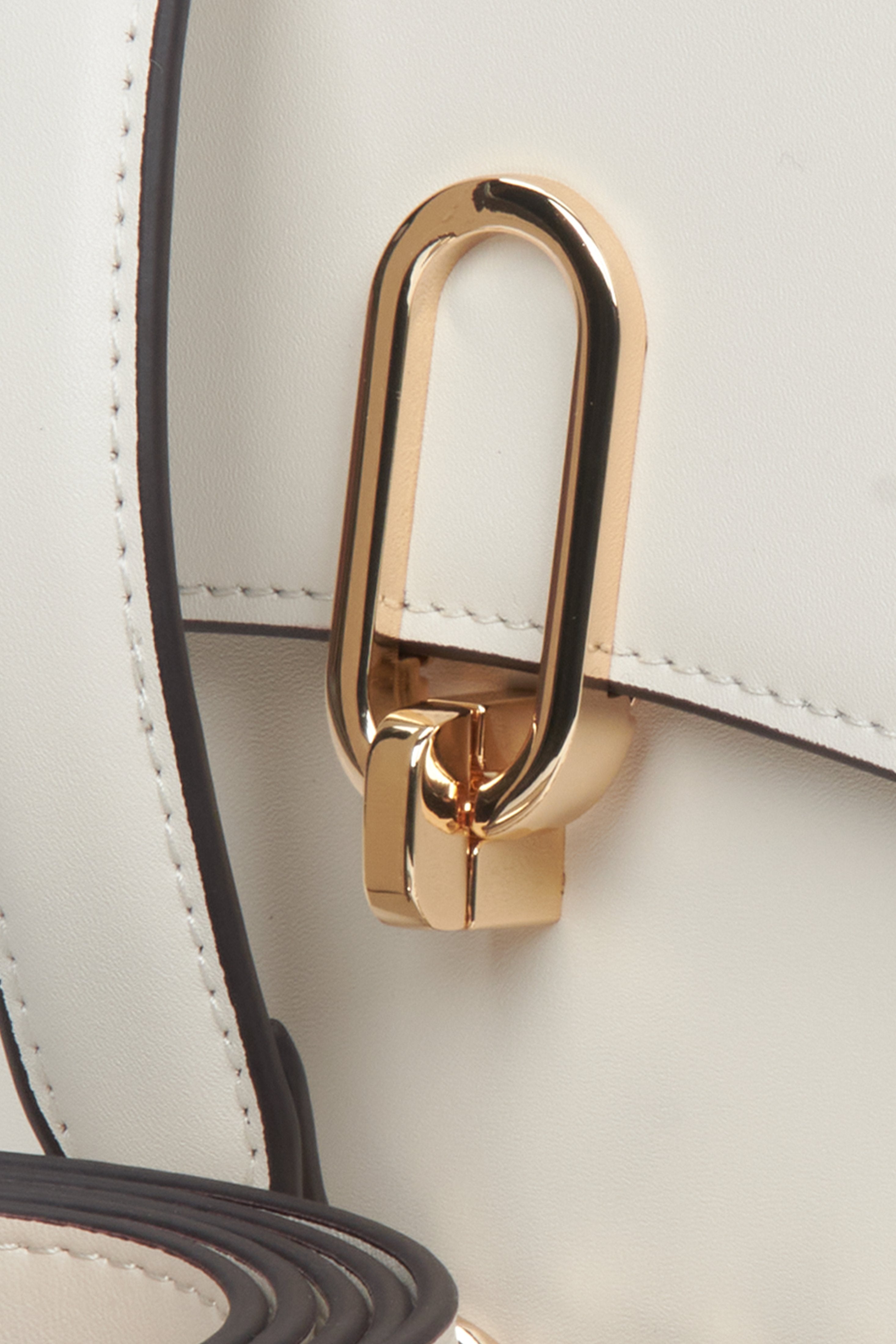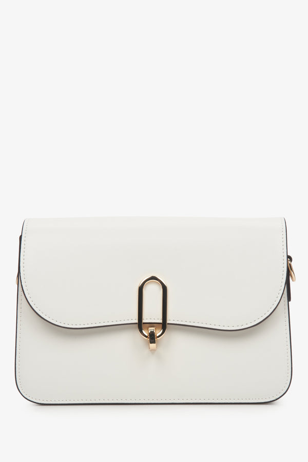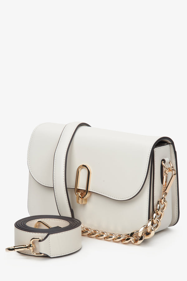 Add a touch of sophistication to your special occasion with the women's white leather chain shoulder bag from the new Estro collection. Crafted with high-quality leather and adorned with gold hardware, this bag features a unique gold chain and an additional adjustable strap for versatility. Perfectly paired with a dress or skirt for an elegant look.