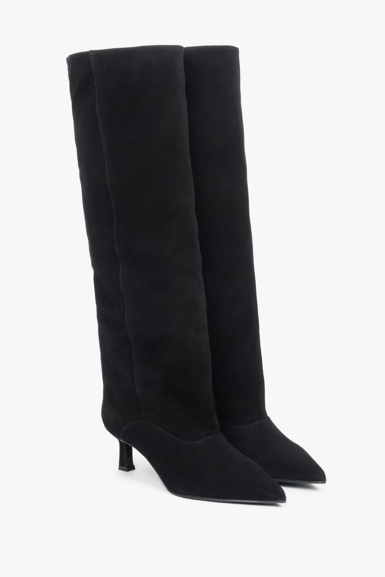 359,00 €Sale price 300,00 €Women's Black Velour Knee-High Boots with a Low Flared Heel Estro ER00118234