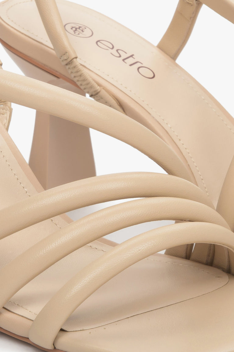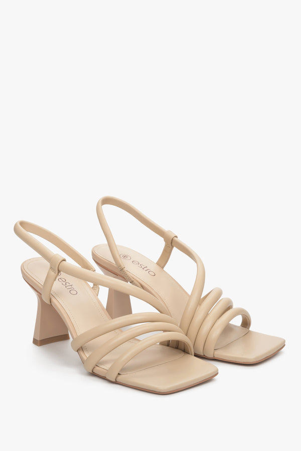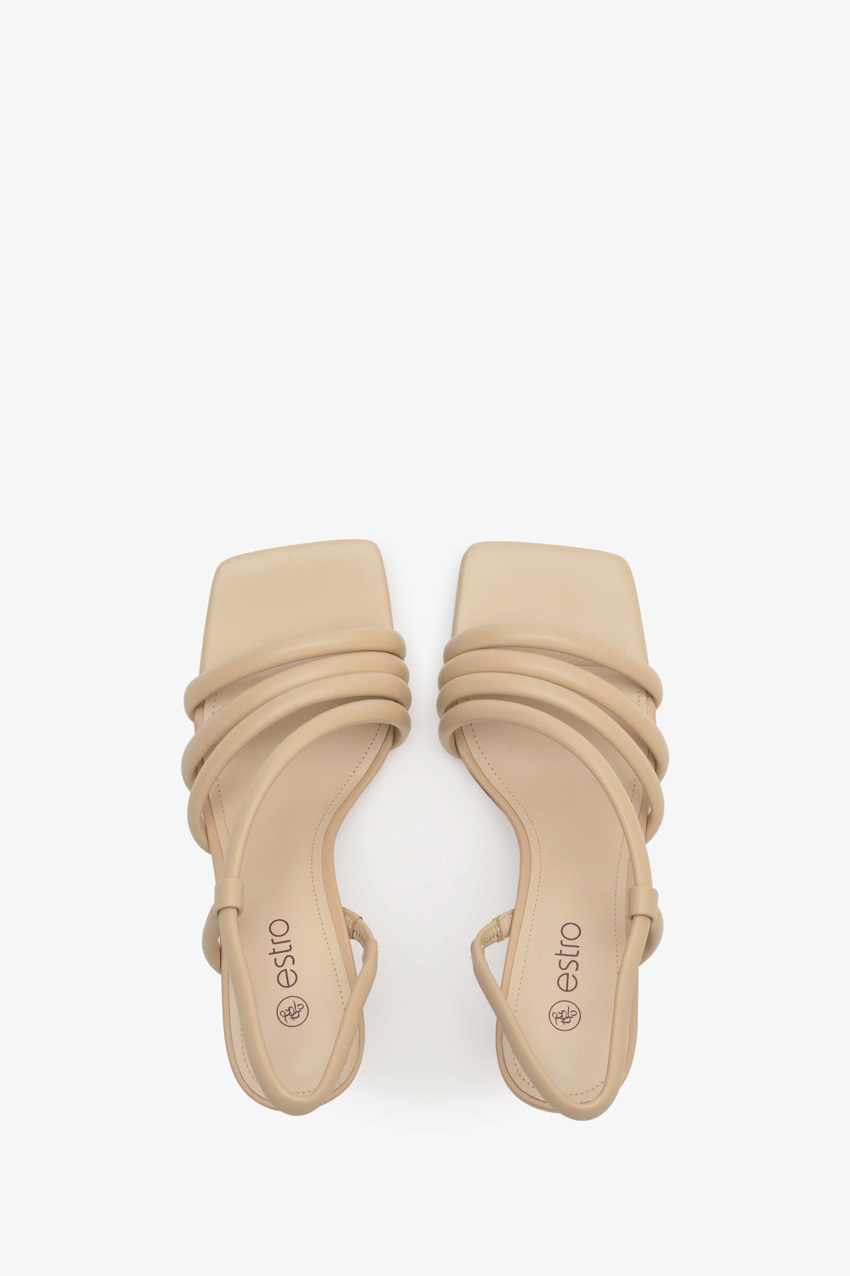 Romantic summer in Estro's beige strappy sandals! Crafted from Italian leather and lovingly formed in a secure block heel, these sandals are the perfect partner for your favourite dress with their beige hue and square-toed silhouette. Enjoy the warm weather in style and luxury.