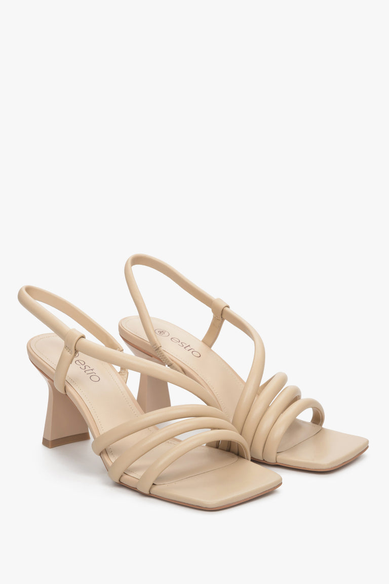 Women's Beige Heeled Strappy Sandals Estro ER00111614