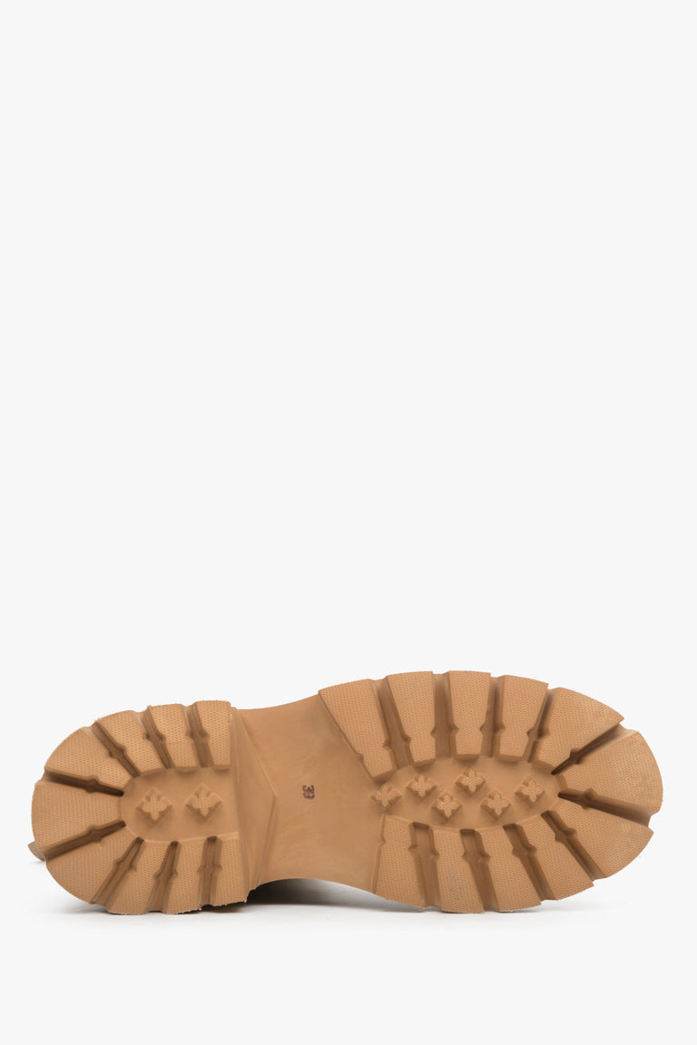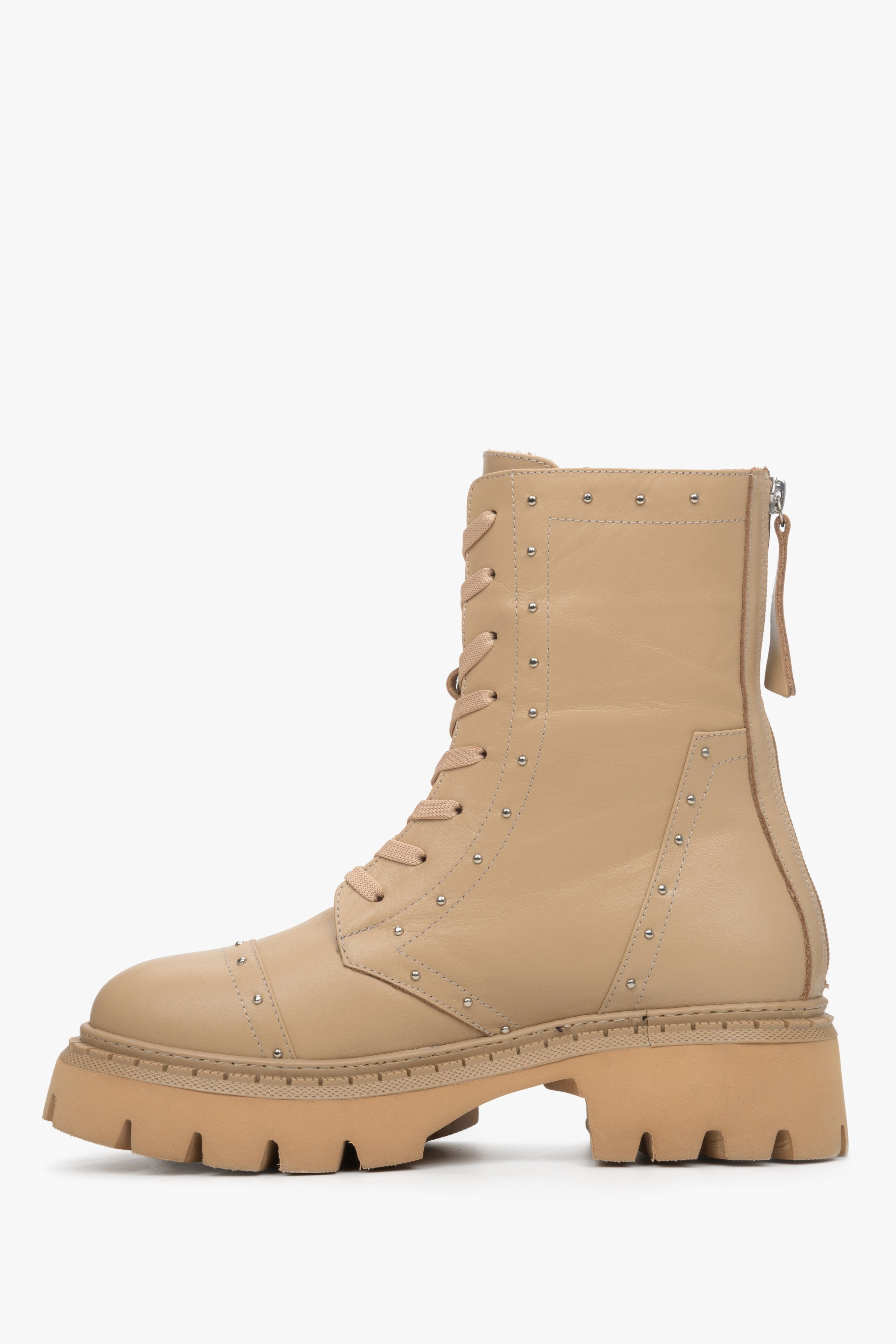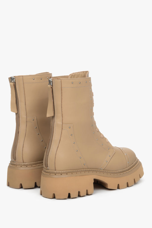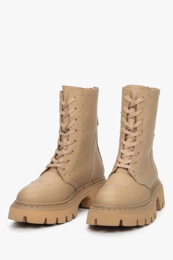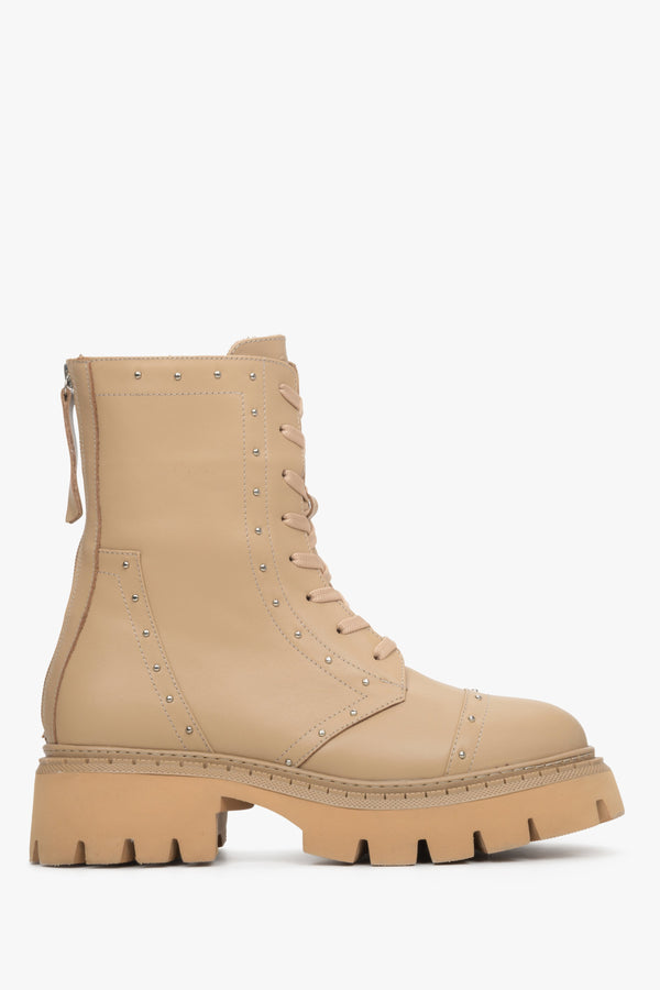 Women's Beige Leather Ankle Boots with Decorative Studs Estro ER00114047