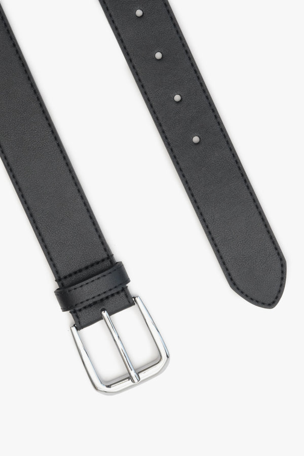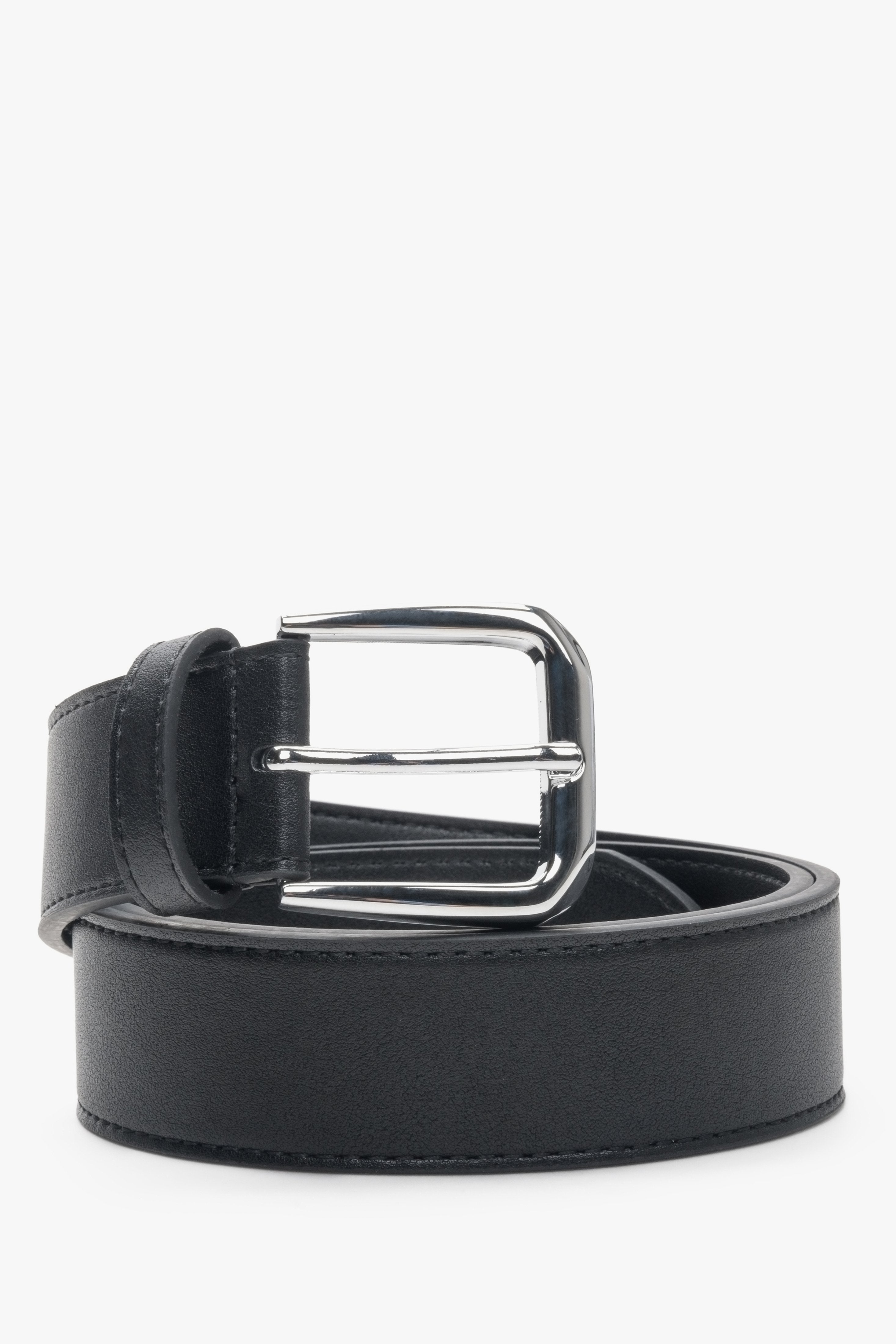 Black Women's Leather Belt with Silver Buckle Estro ER00113199