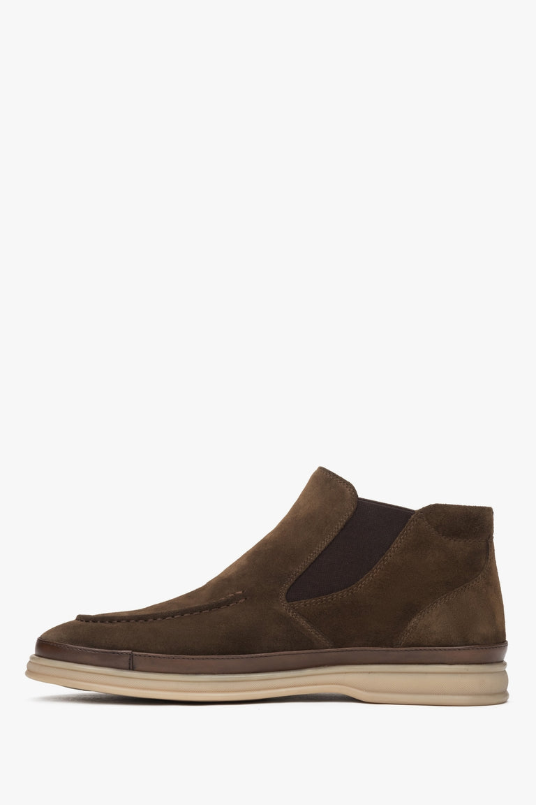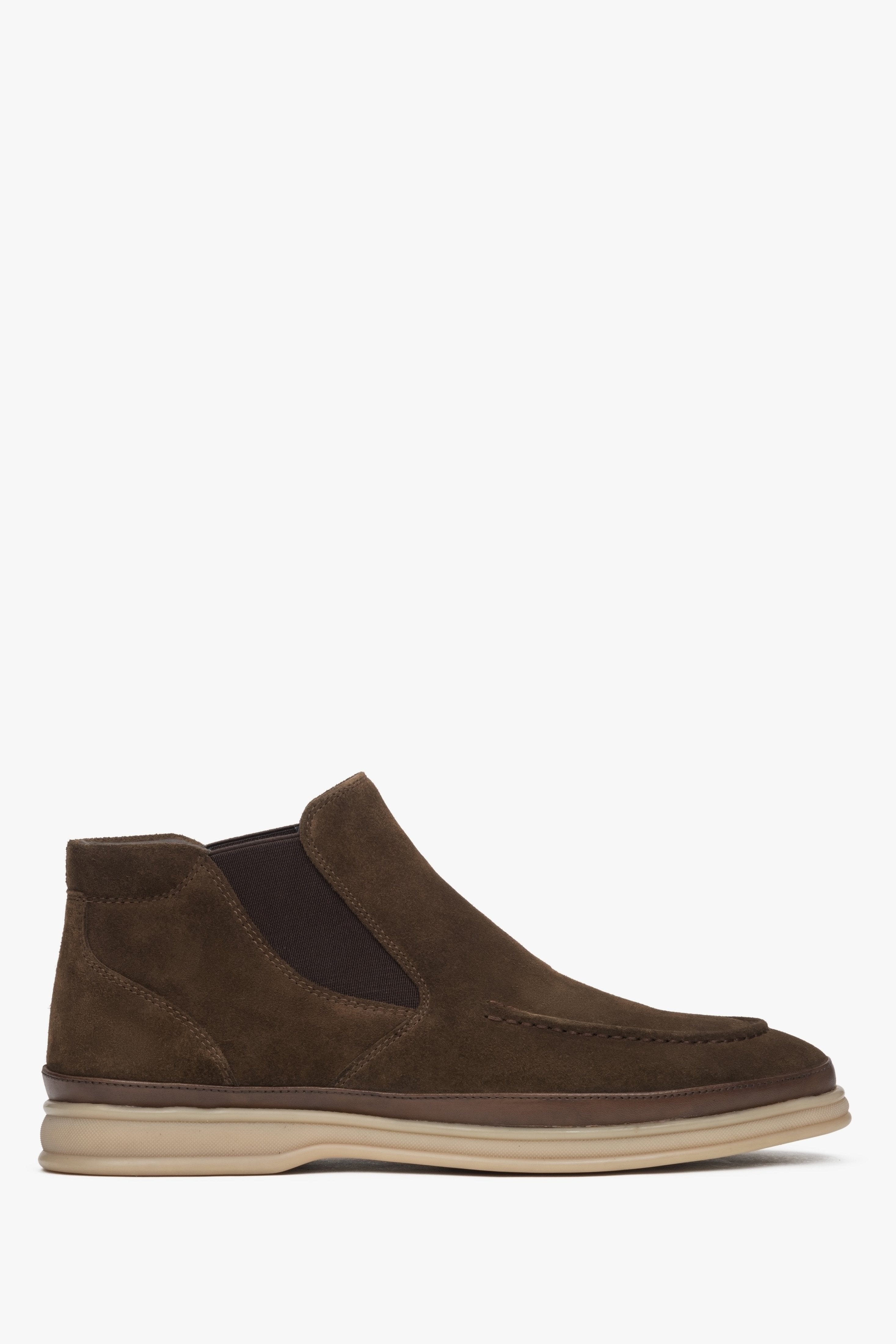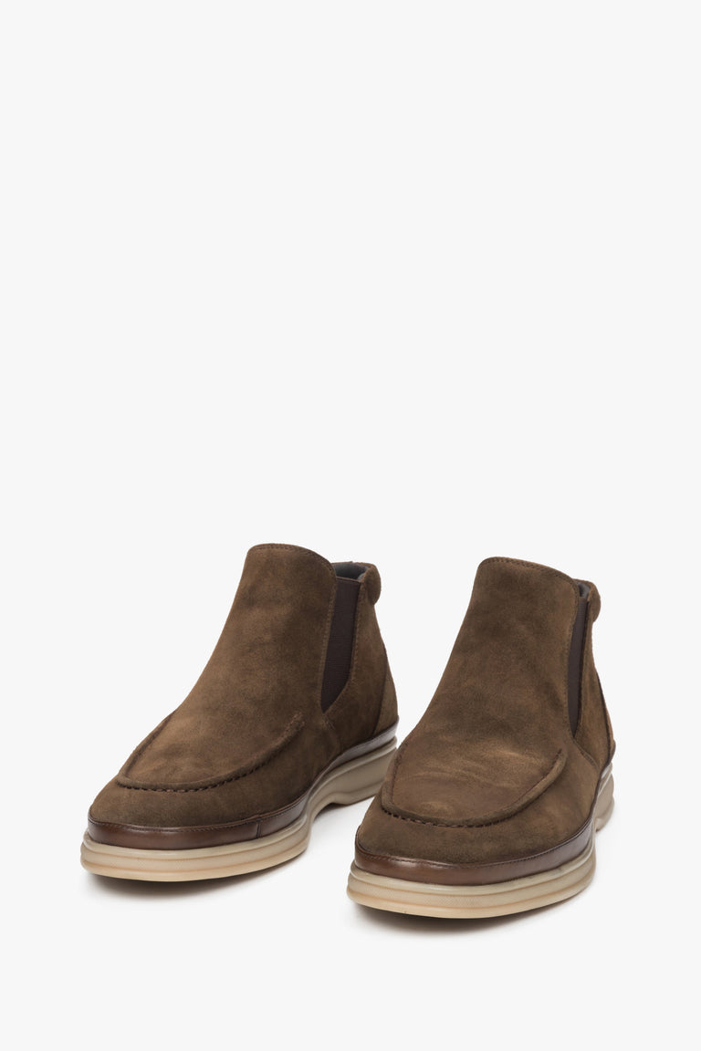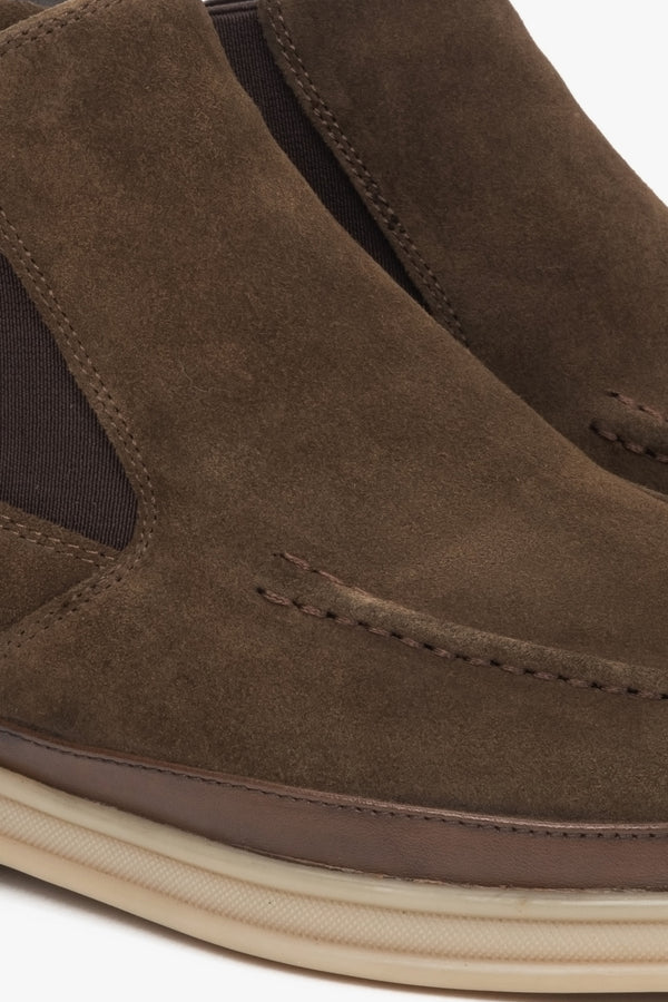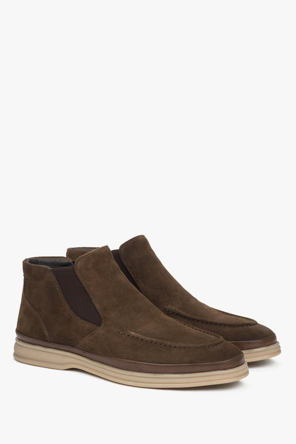 Men's Dark Brown Slip-On Chelsea Boots made of Genuine Velour Estro ER00116152