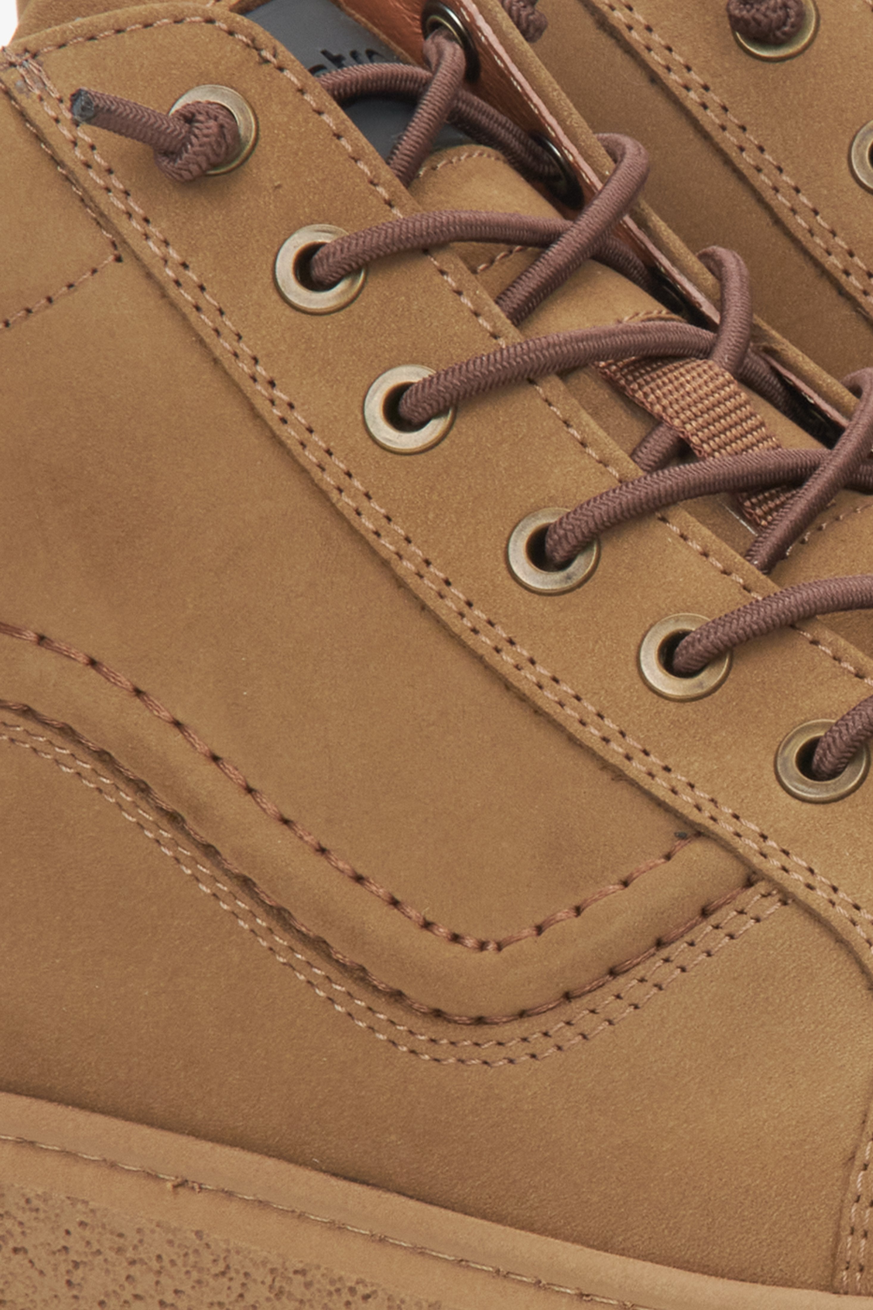 Elevate your style with our Men's High Brown Sneakers Made of Genuine Italian Velour. Crafted from high-quality materials, these sneakers provide both comfort and insulation. Perfect for any occasion, inspire confidence with every step you take.