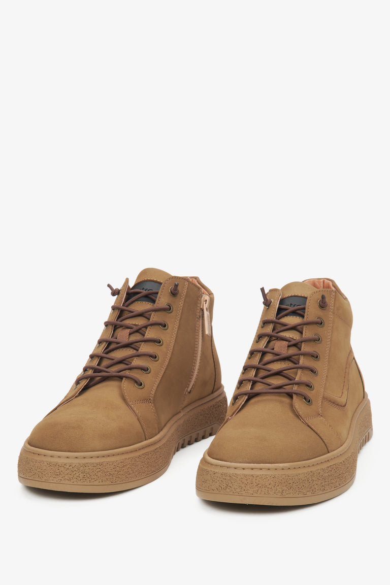 Men's High-Top Brown Sneakers made of Genuine Italian Velour Estro ER00116061
