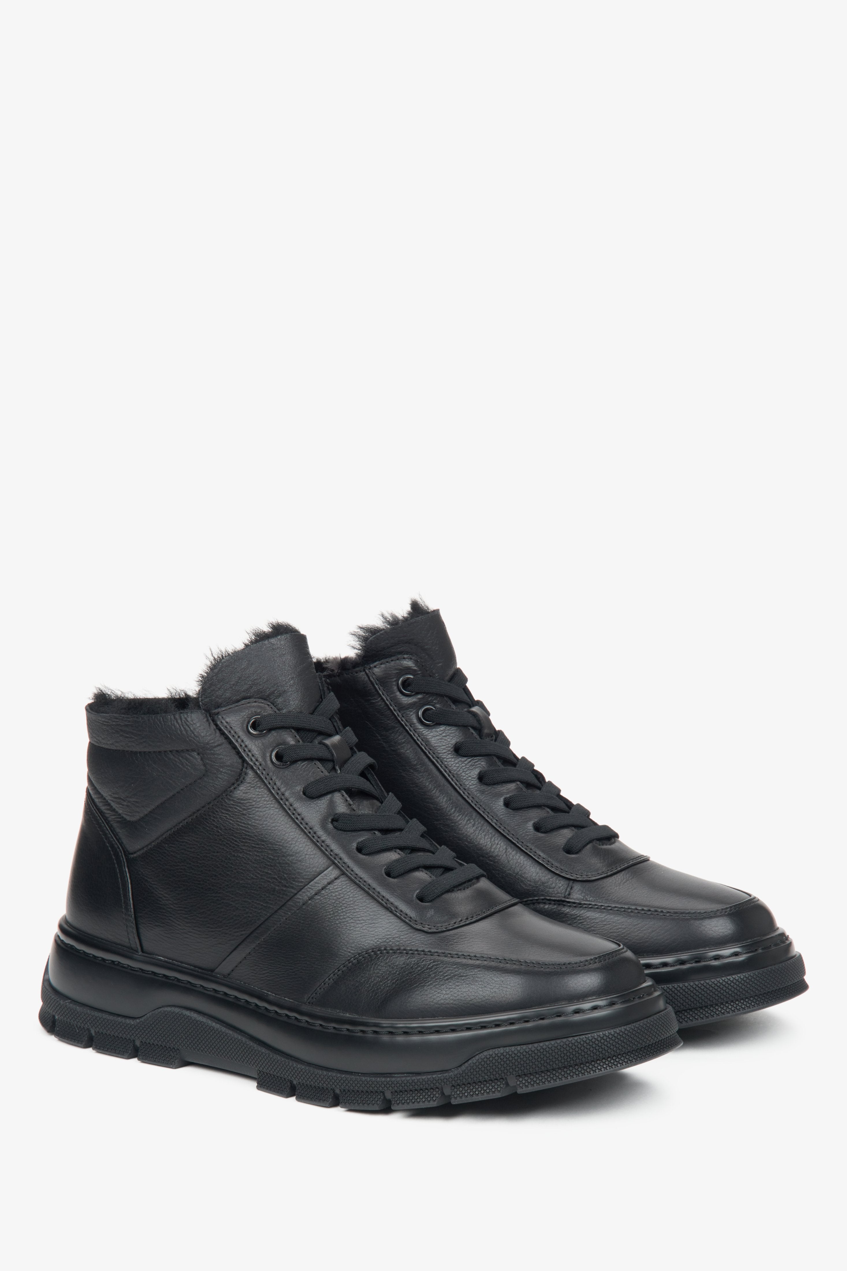 Men's Black Winter Ankle Boots with Fur Insulation Estro ER00116133