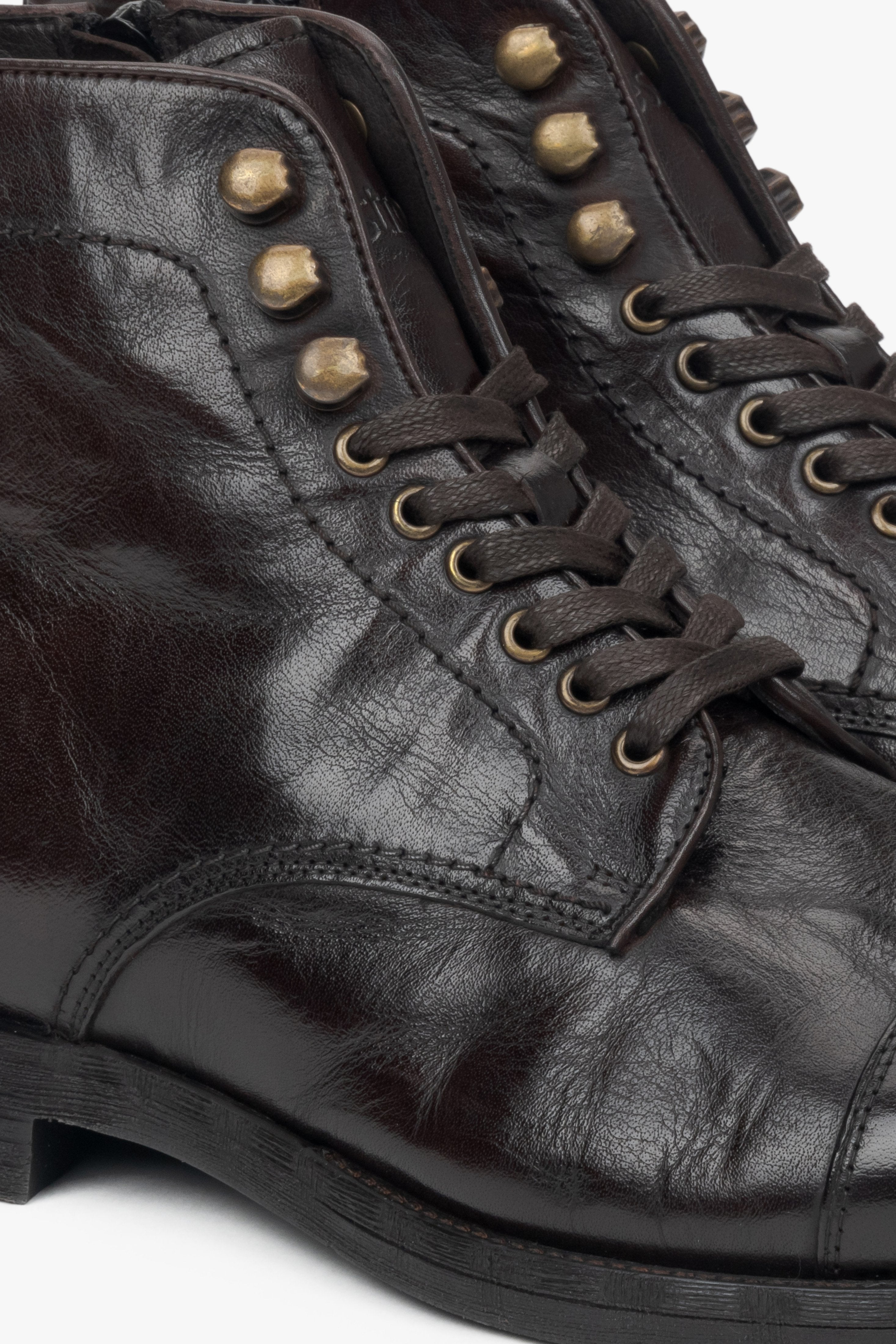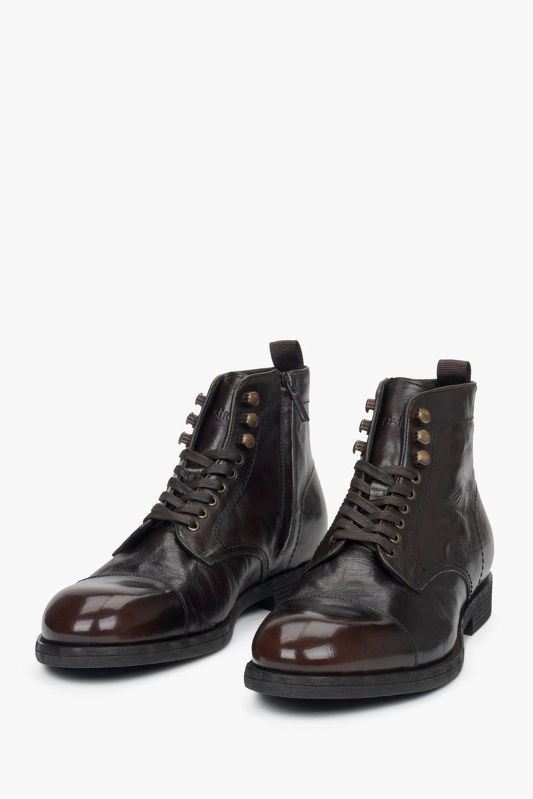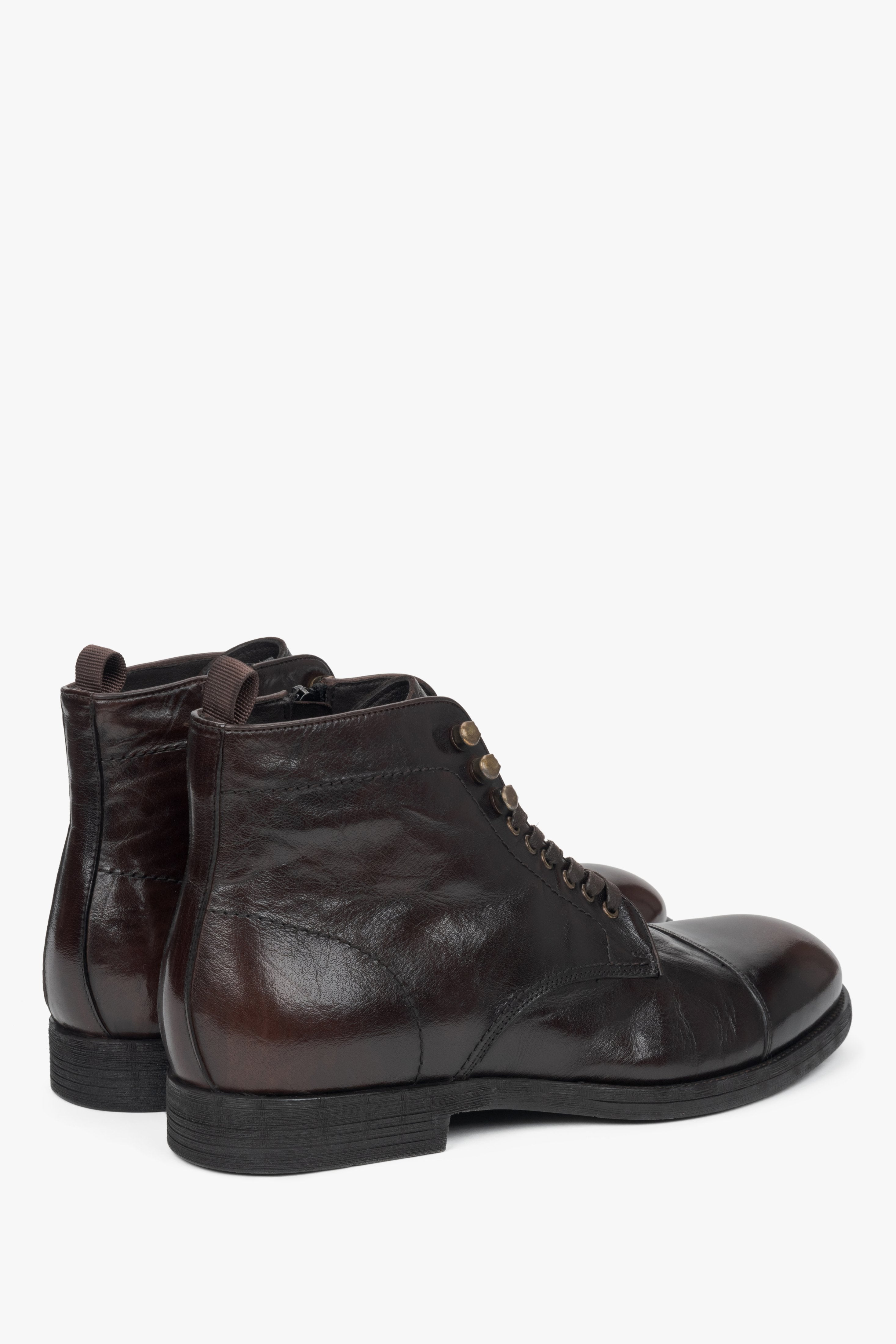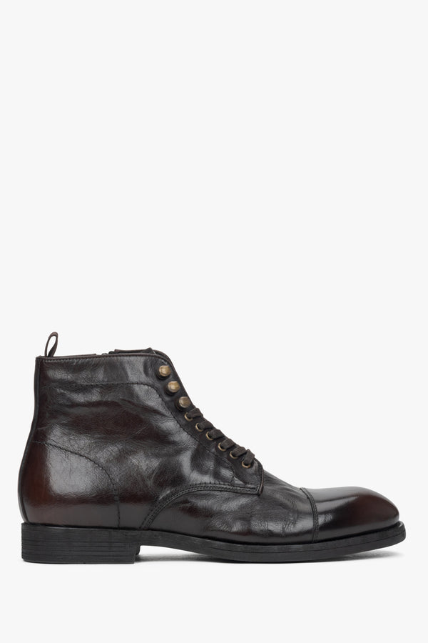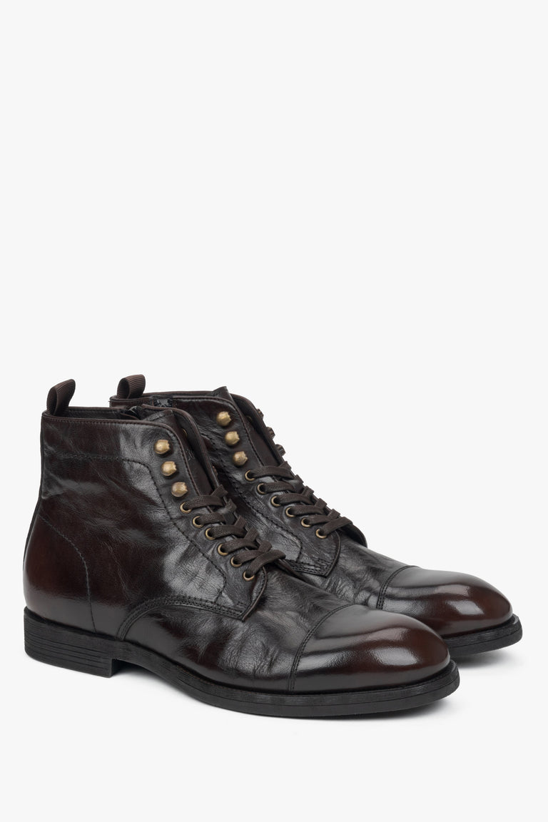 Men's Saddle Brown Leather Laced-Up Ankle Boots Estro ER00116159