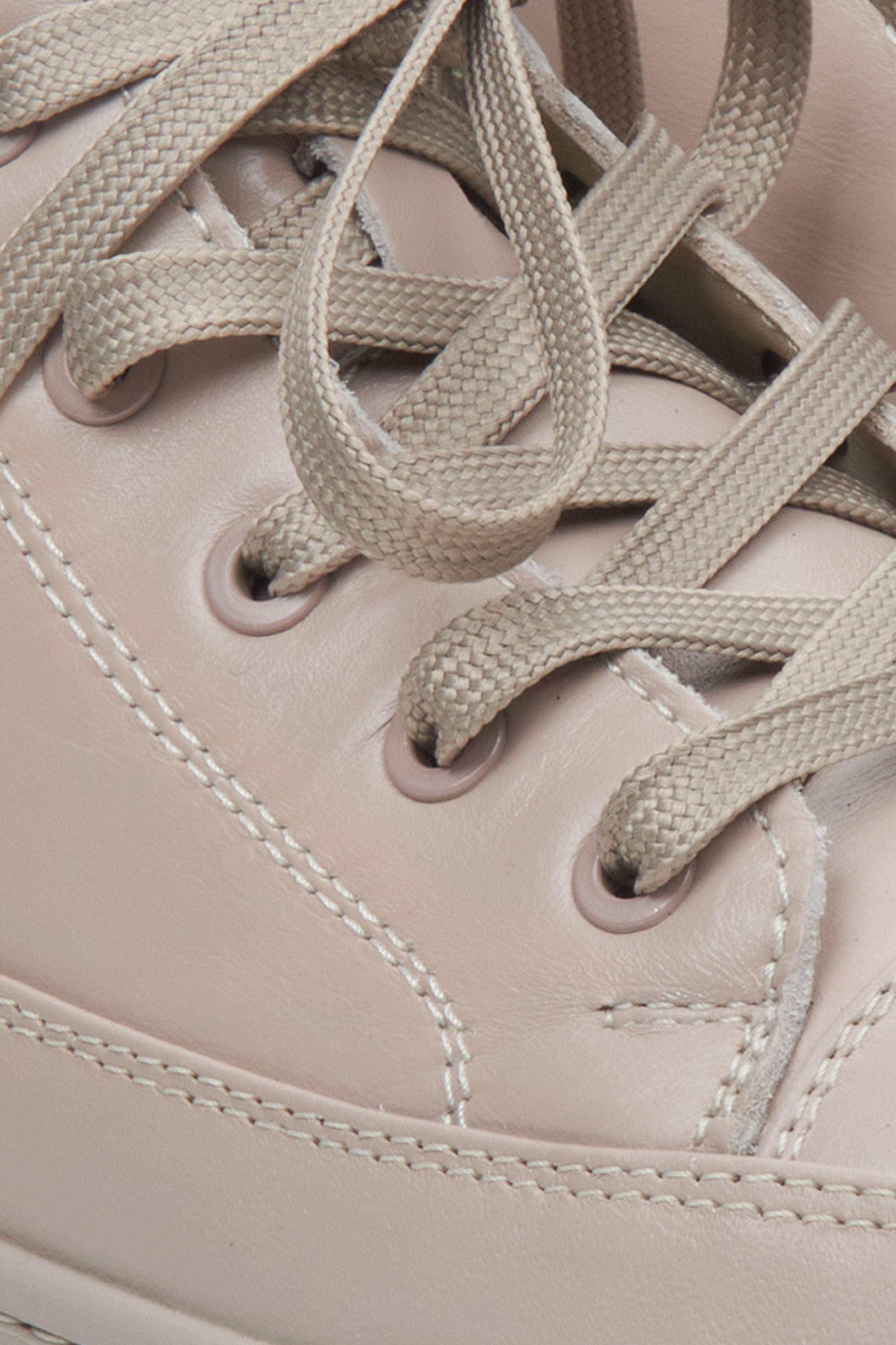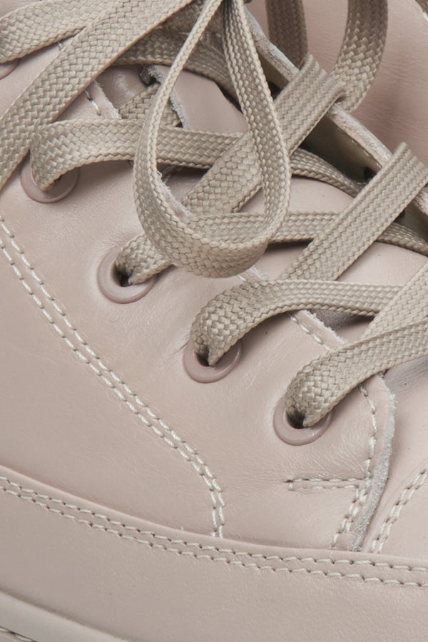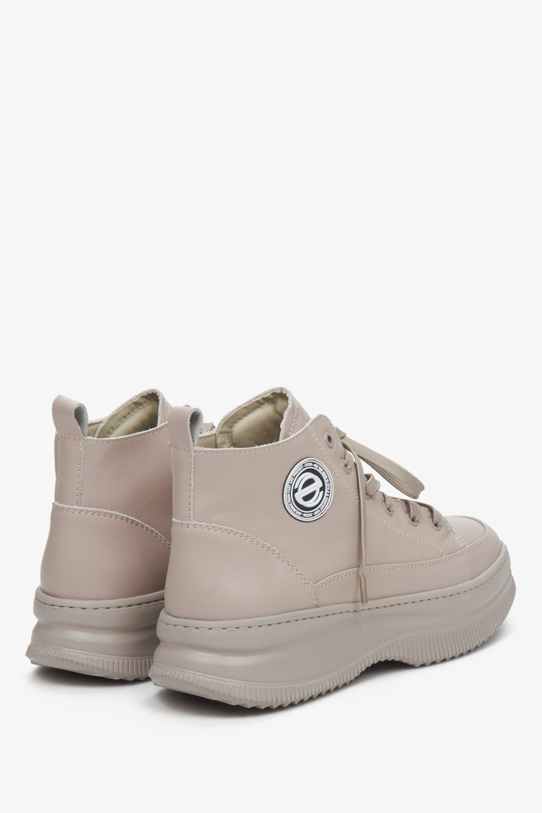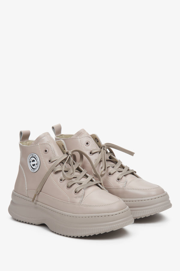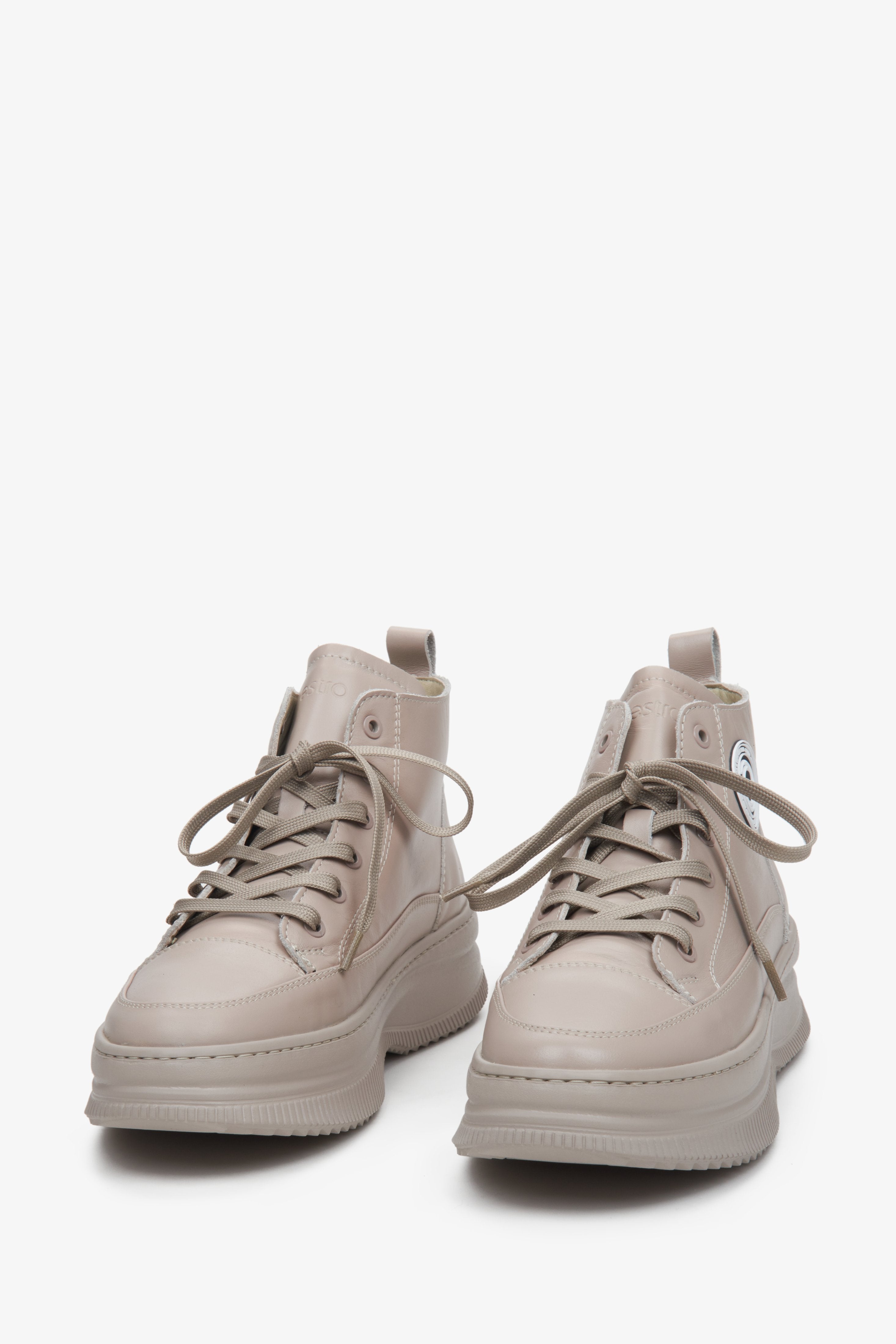 Women's Beige Leather High-Top Sneakers Estro ER00113468