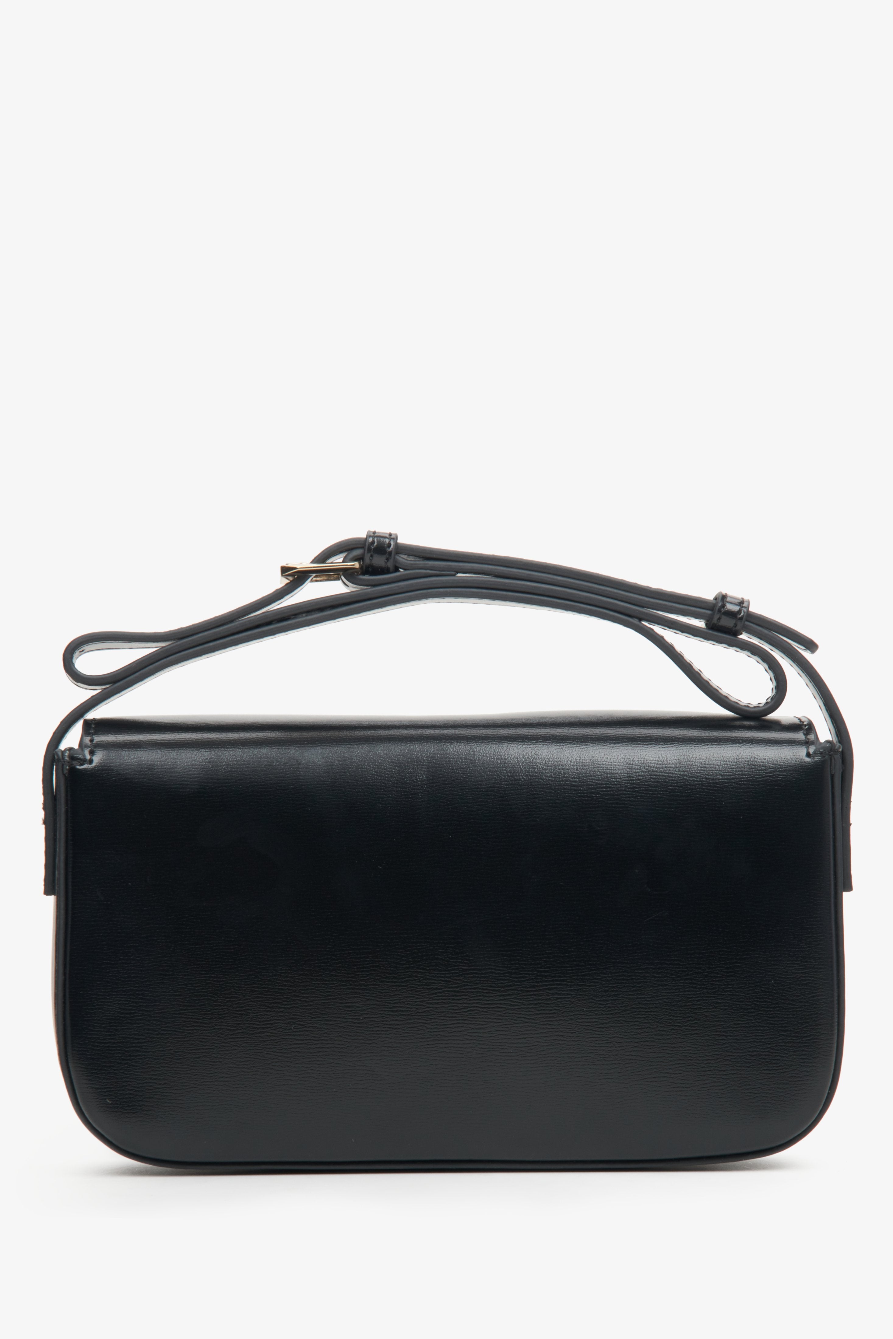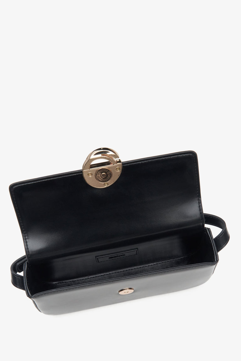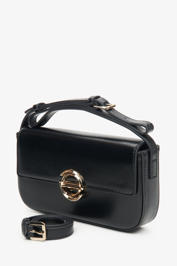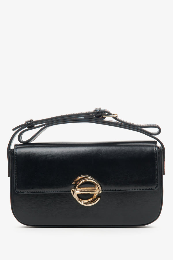 Women's Small Black Leather Handbag with Golden Hardware Estro ER00113754