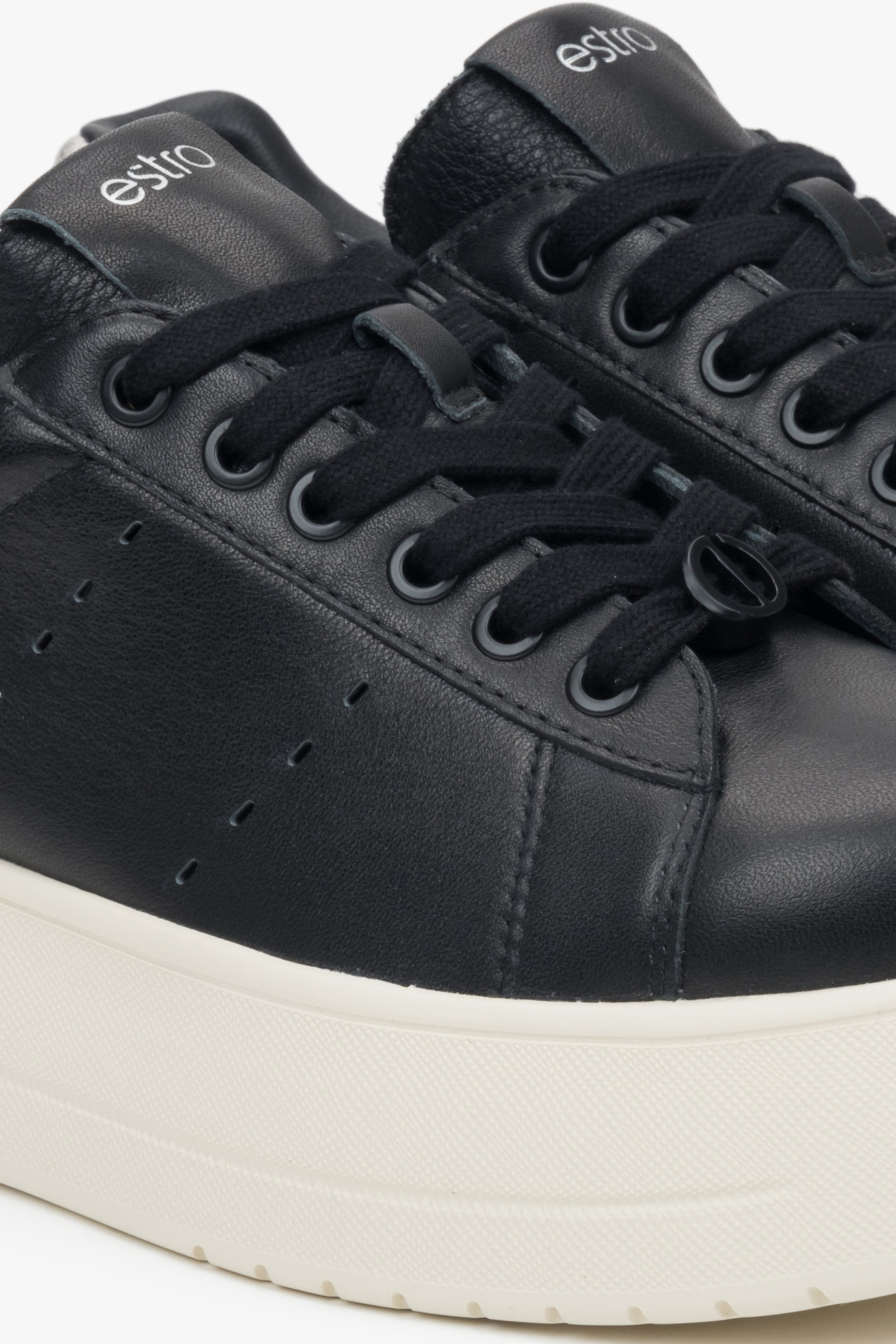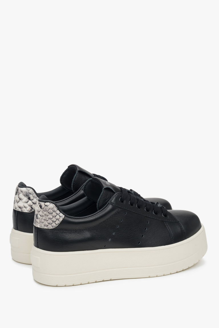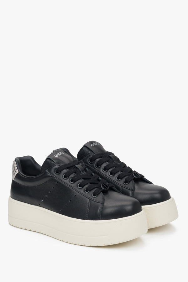 Women's Black Leather Low-Top Sneakers with Chunky Sole Estro ER00117131