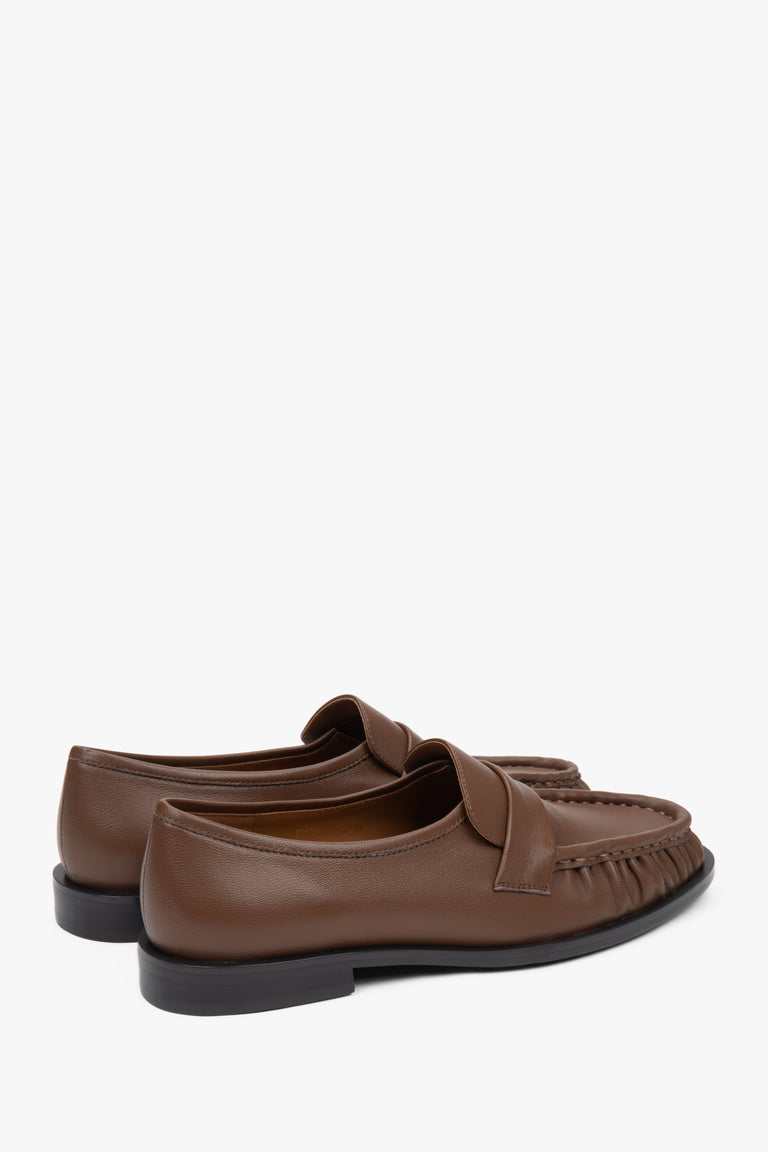 Women's Brown Leather Loafers with Decorative Gathering Estro ER00117192