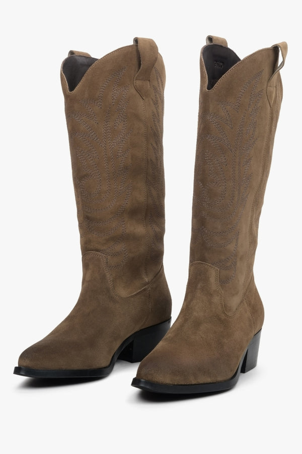 Women's Brown Cowboy Boots made of Genuine Italian Suede Estro ER00113602