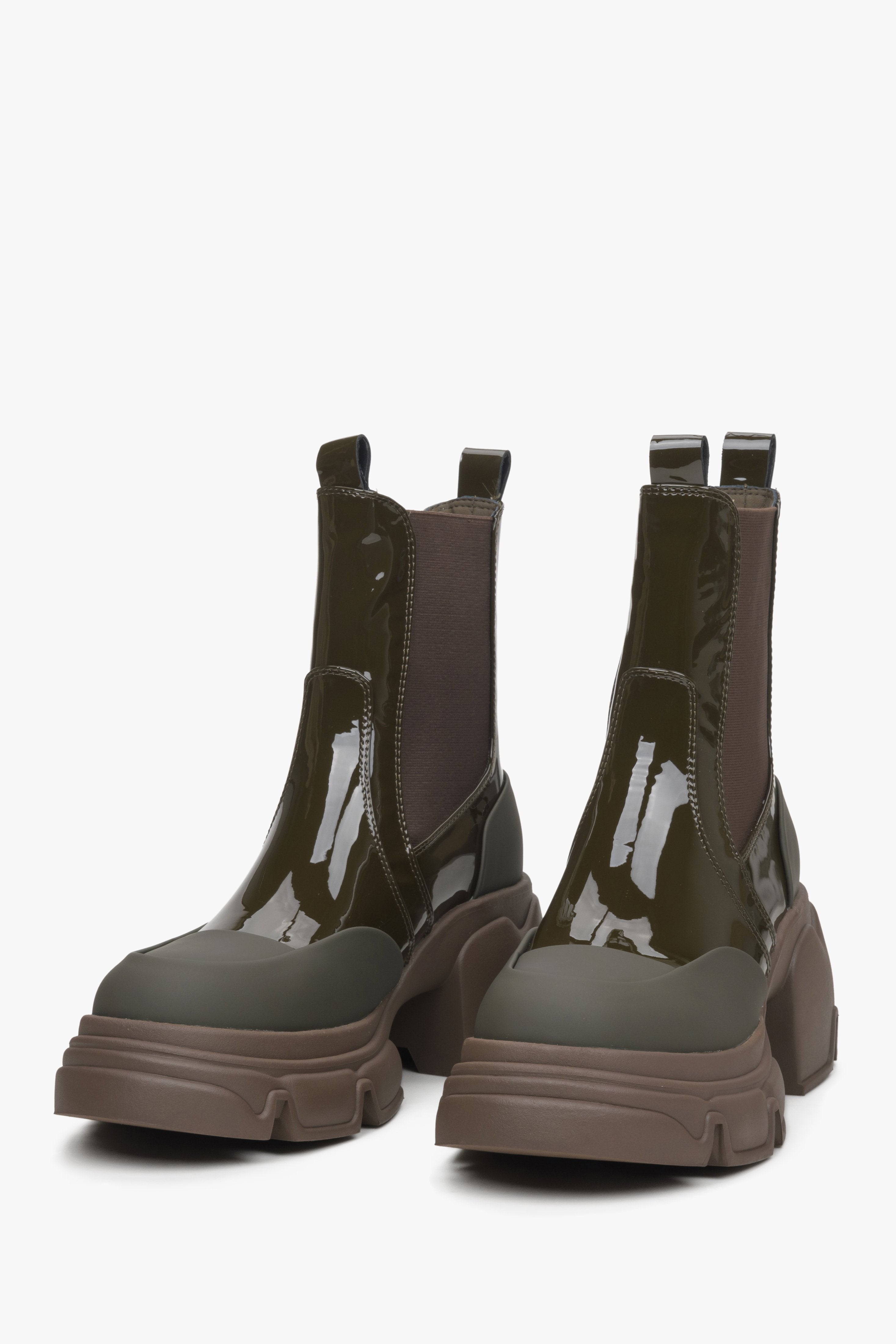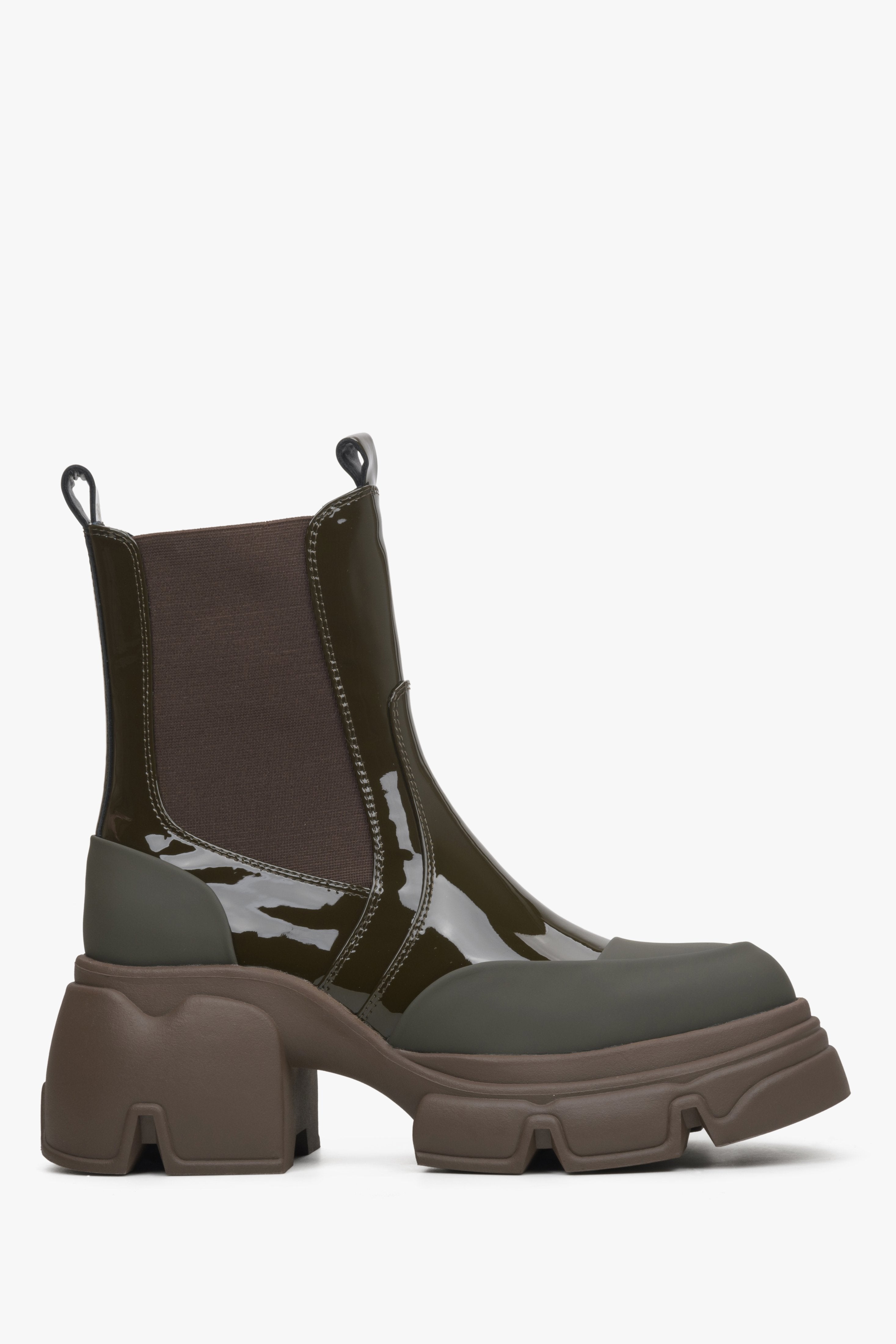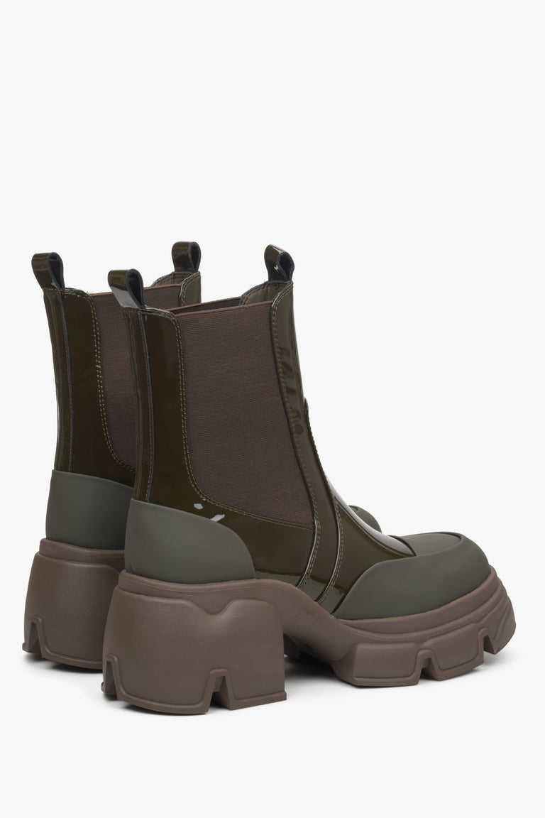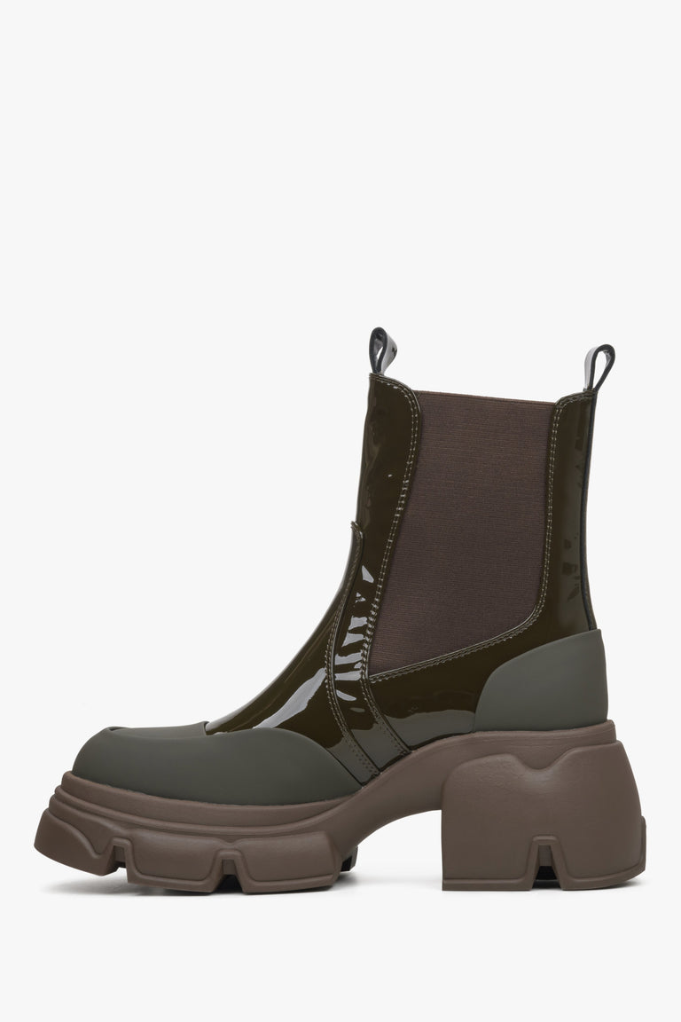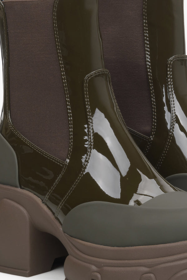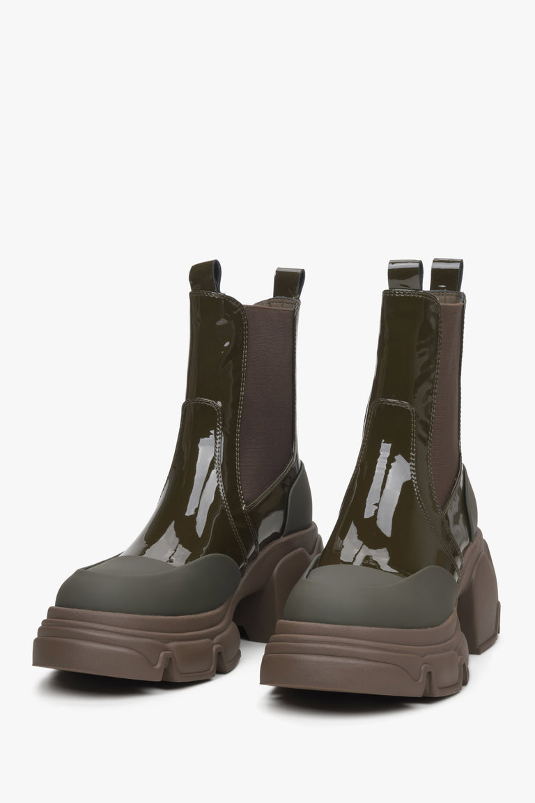 Women's Dark Green Chelsea Boots made of Patent Genuine Leather Estro ER00114452