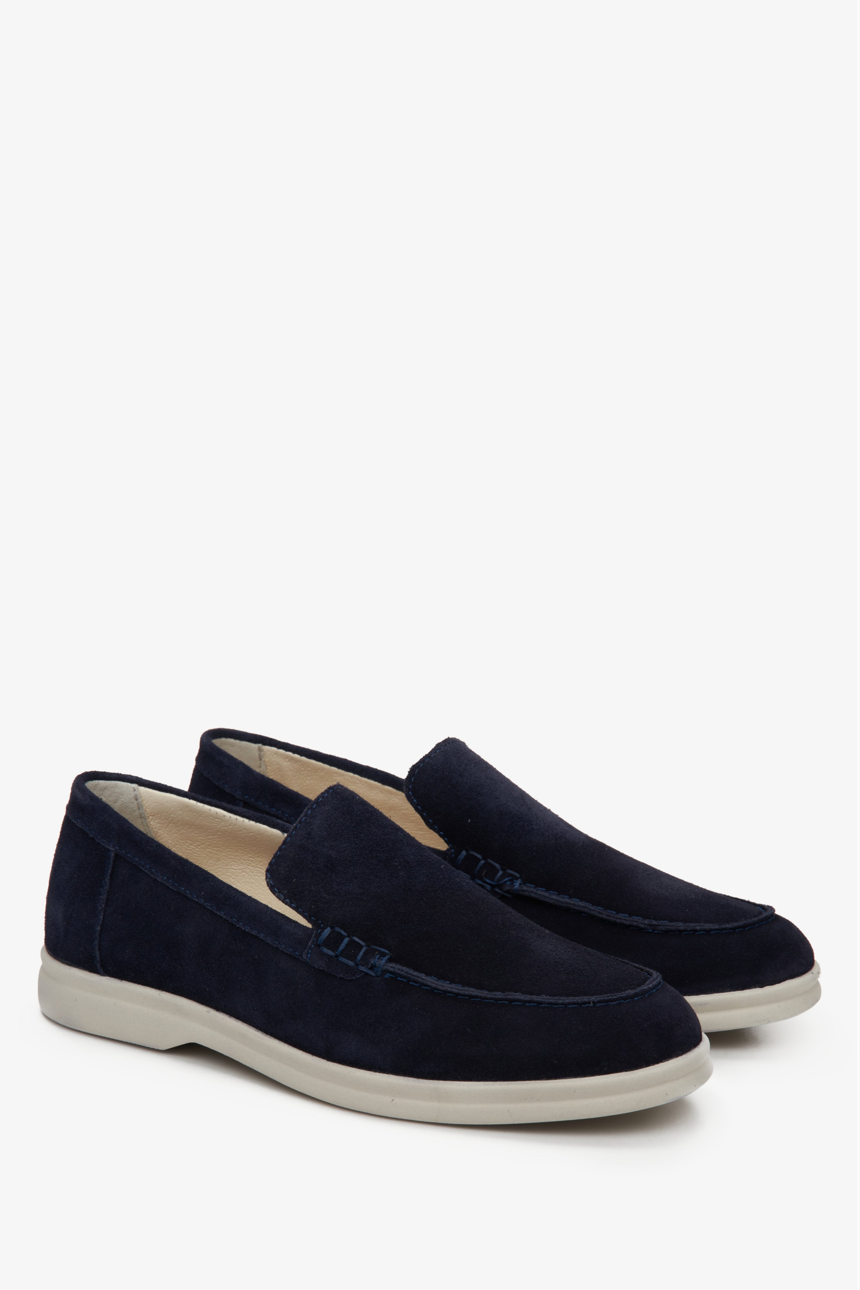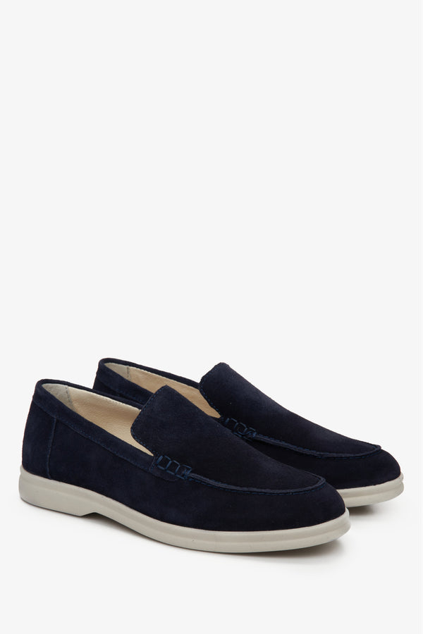 Women's Navy Blue Suede Loafers Estro ER00112914