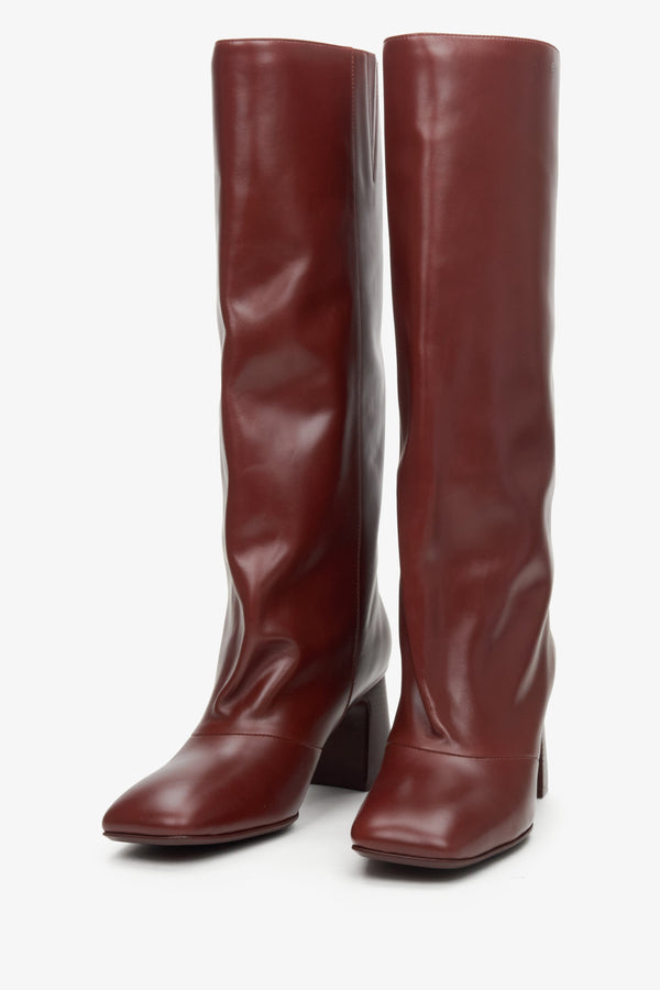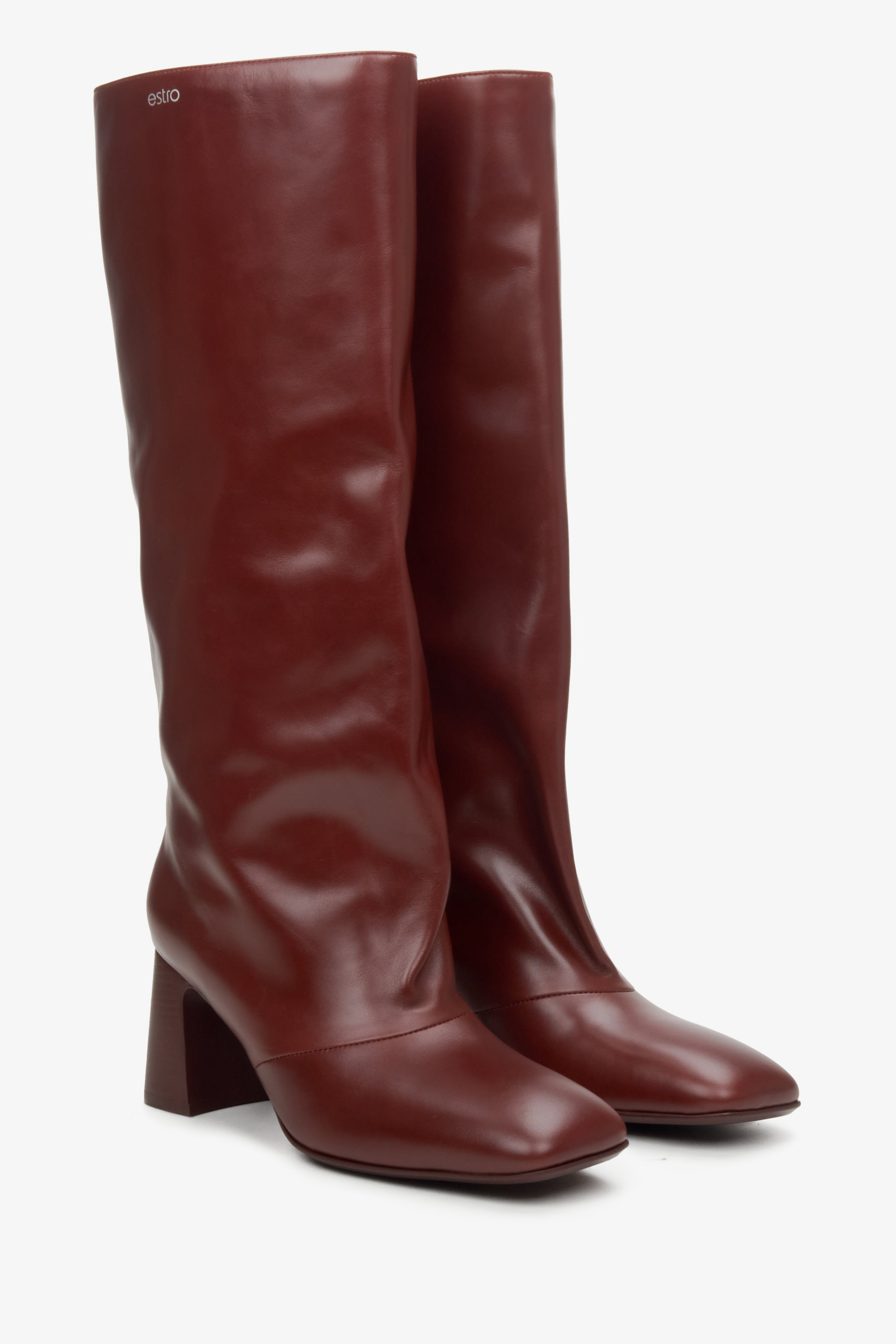 Women's Oversized Boots made of Burgundy Genuine Leather Estro ER00114318