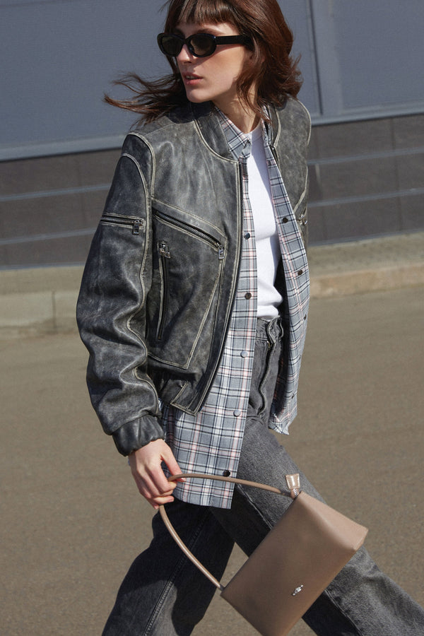 Women's Sand Beige Leather Shoulder Bag Estro ER00114447