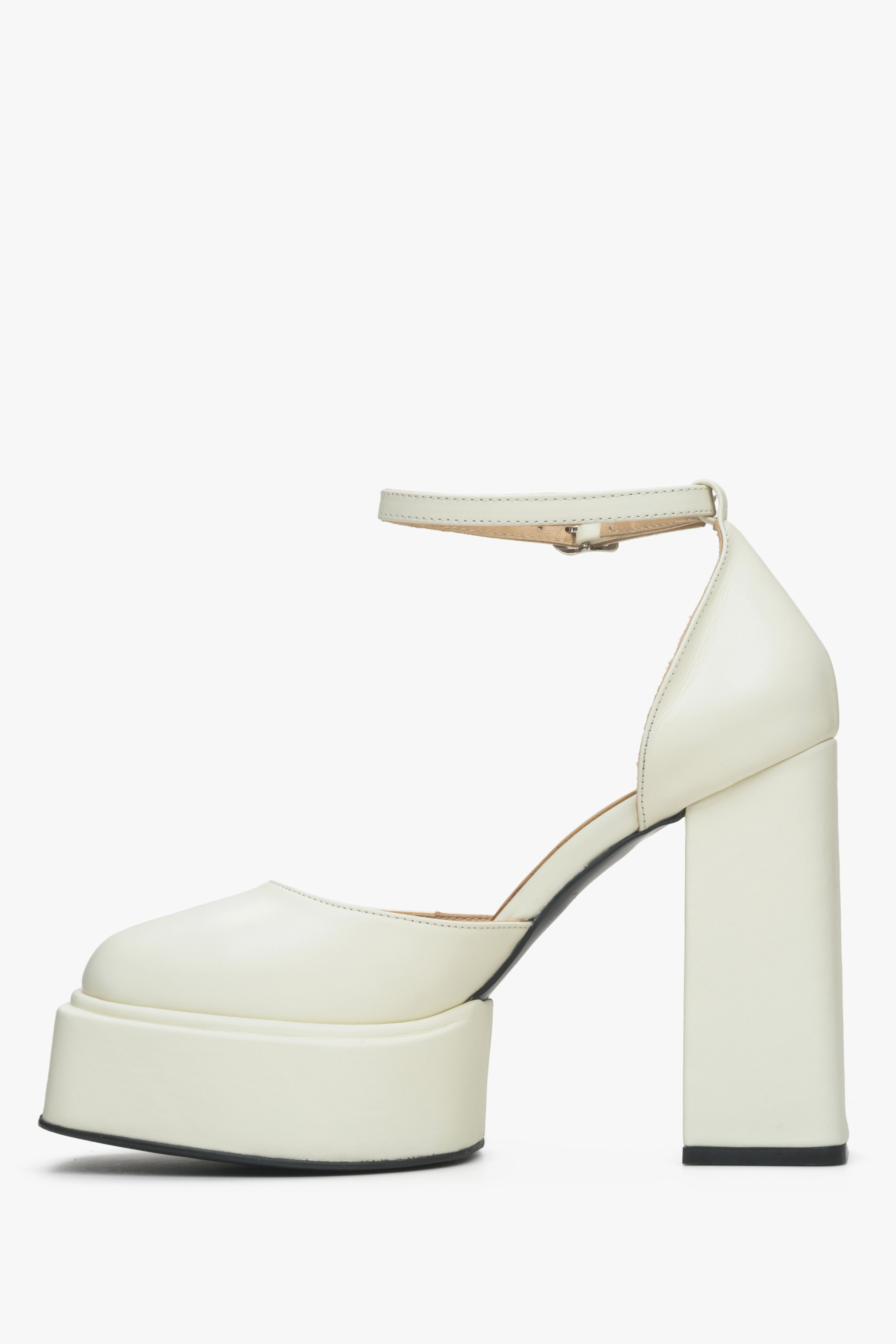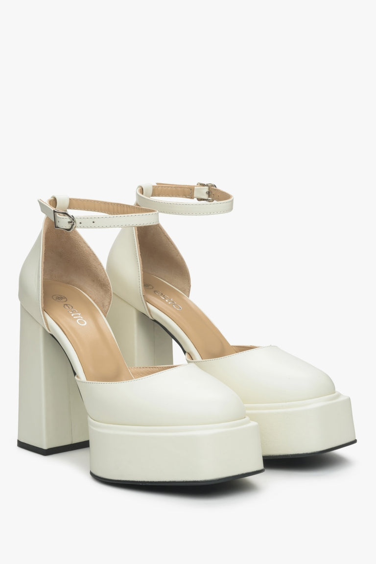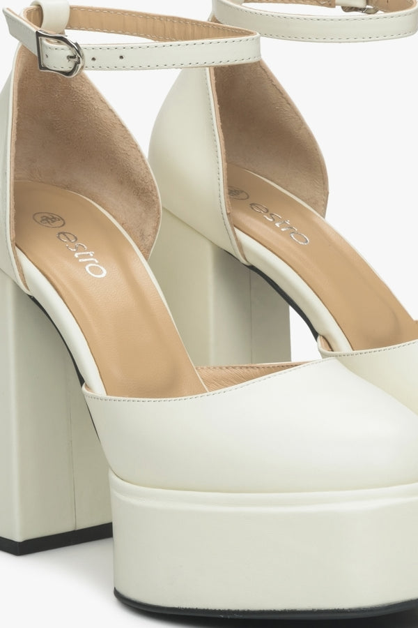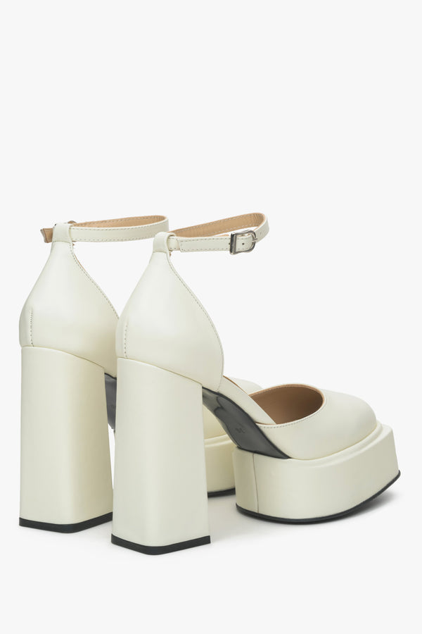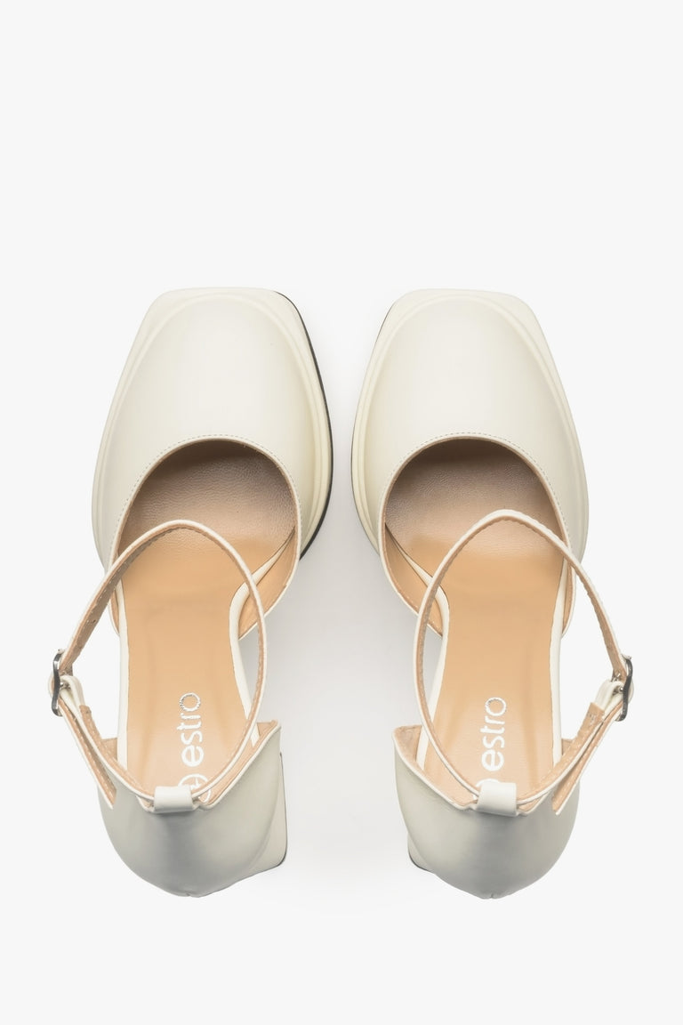 Women's Light Beige Leather Platform Sandals Estro ER00115153