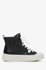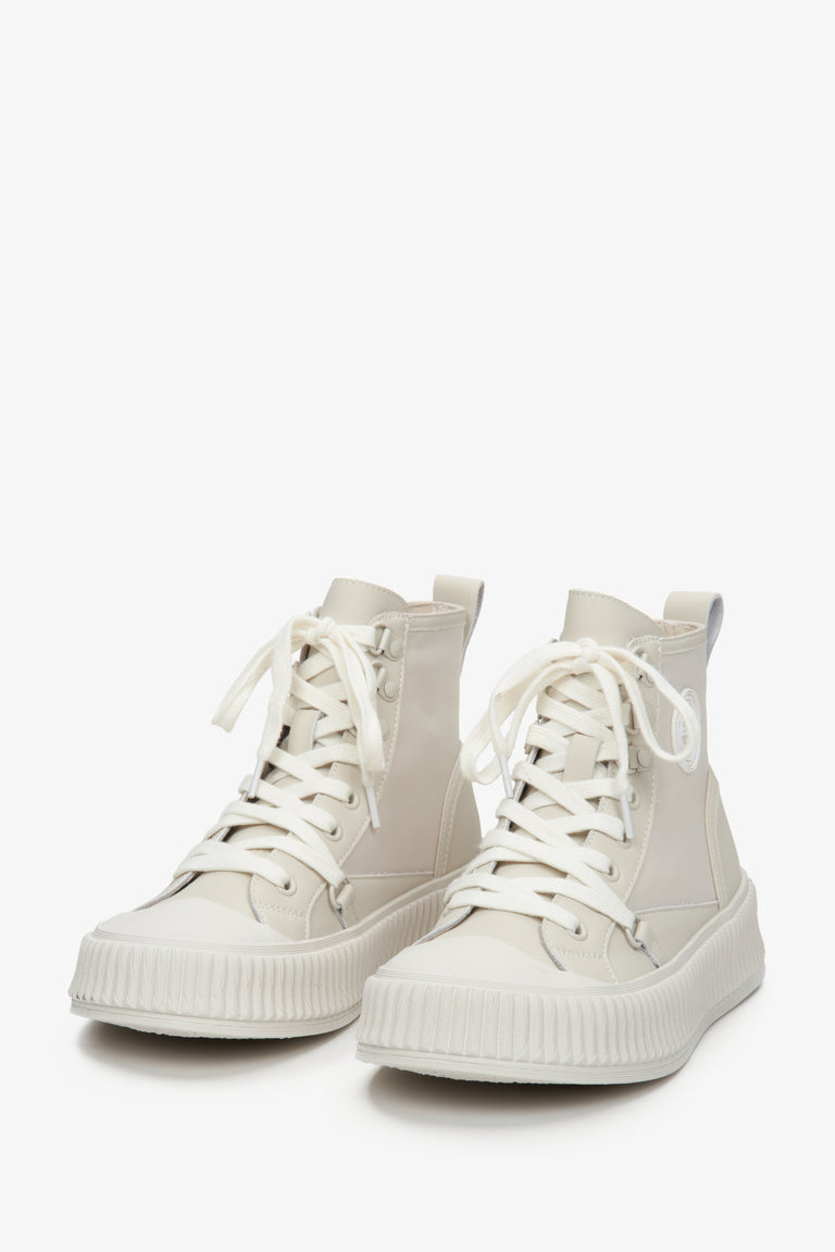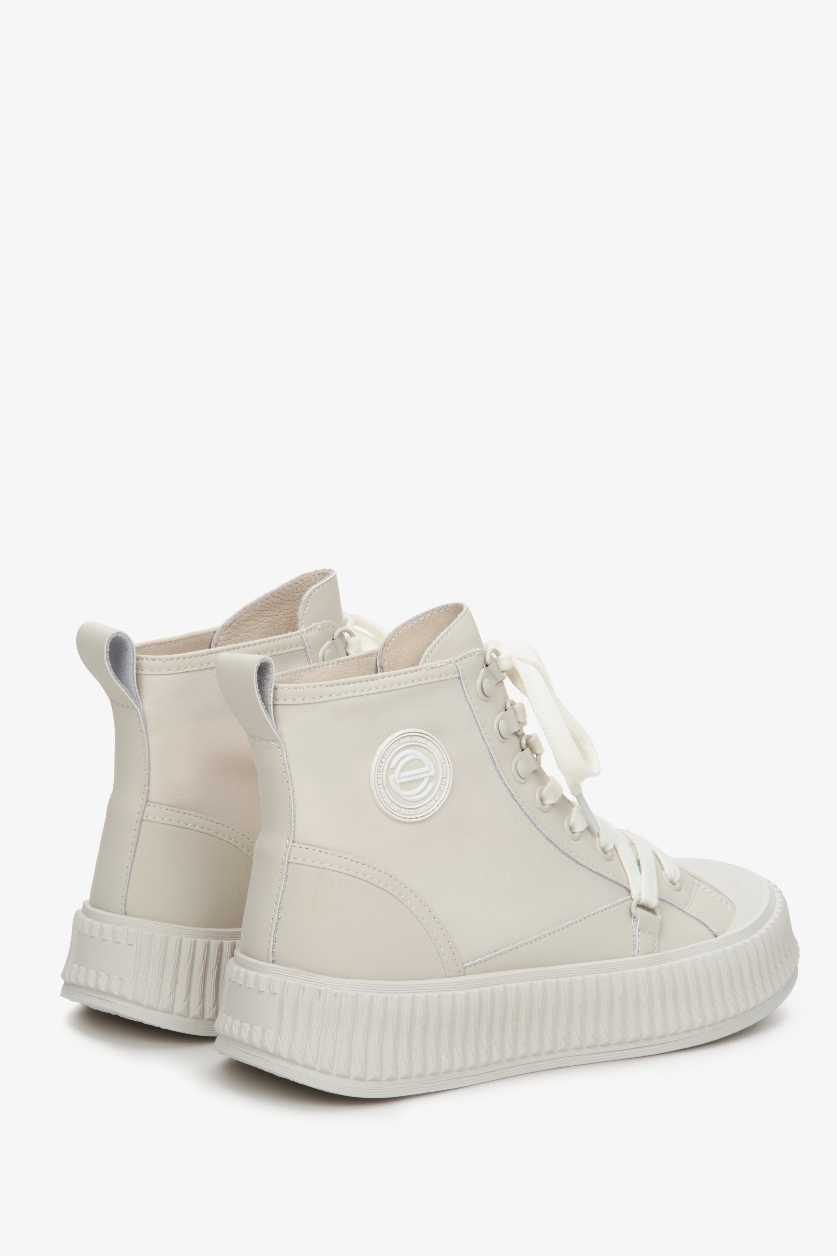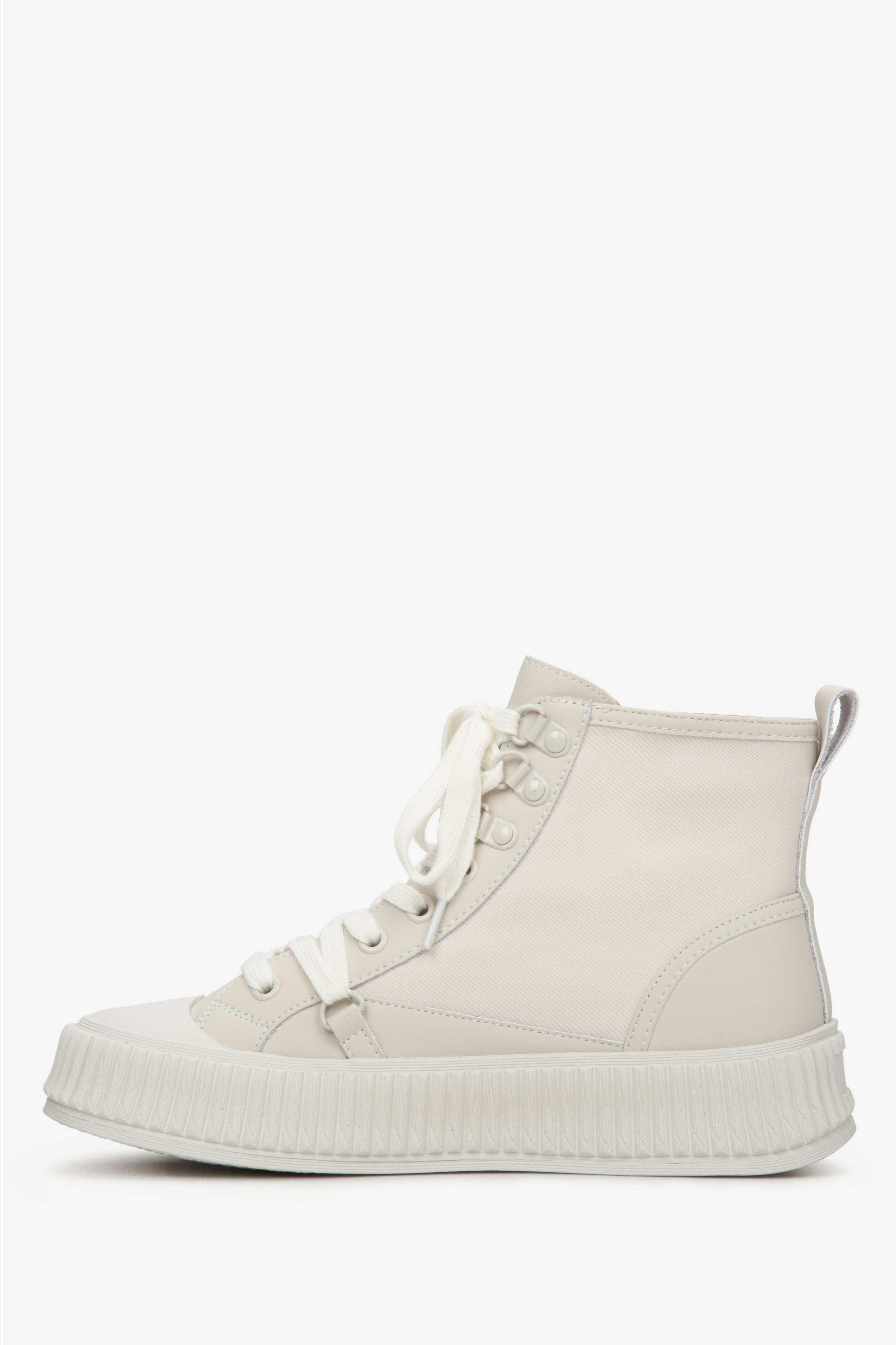 Women's Light Beige High-Top Sneakers made of Genuine Leather Estro ER00112709