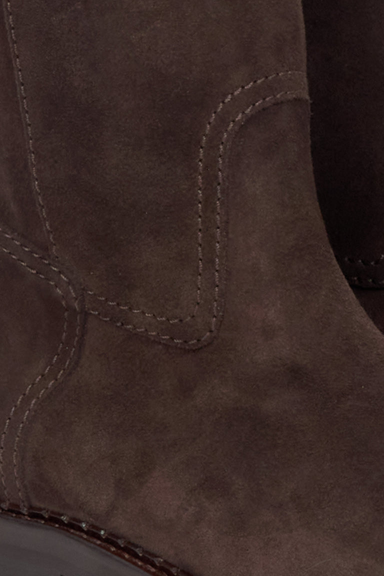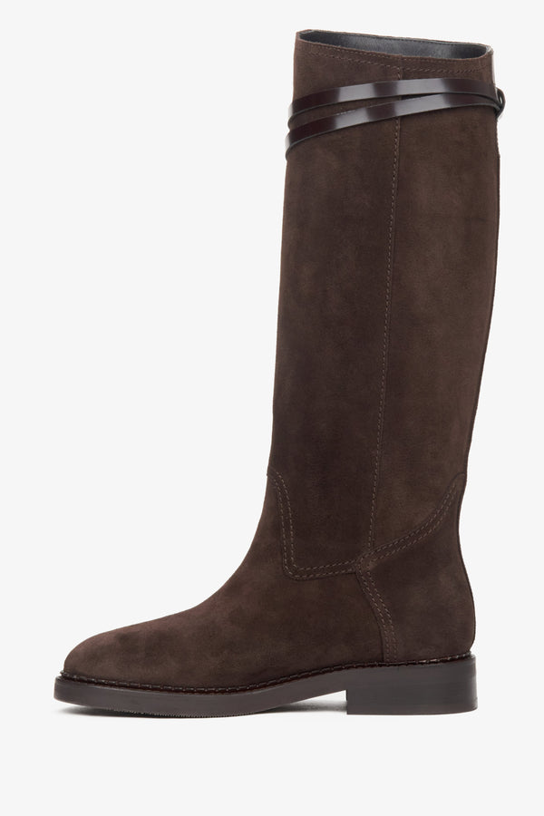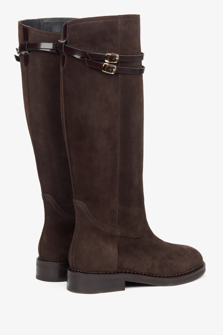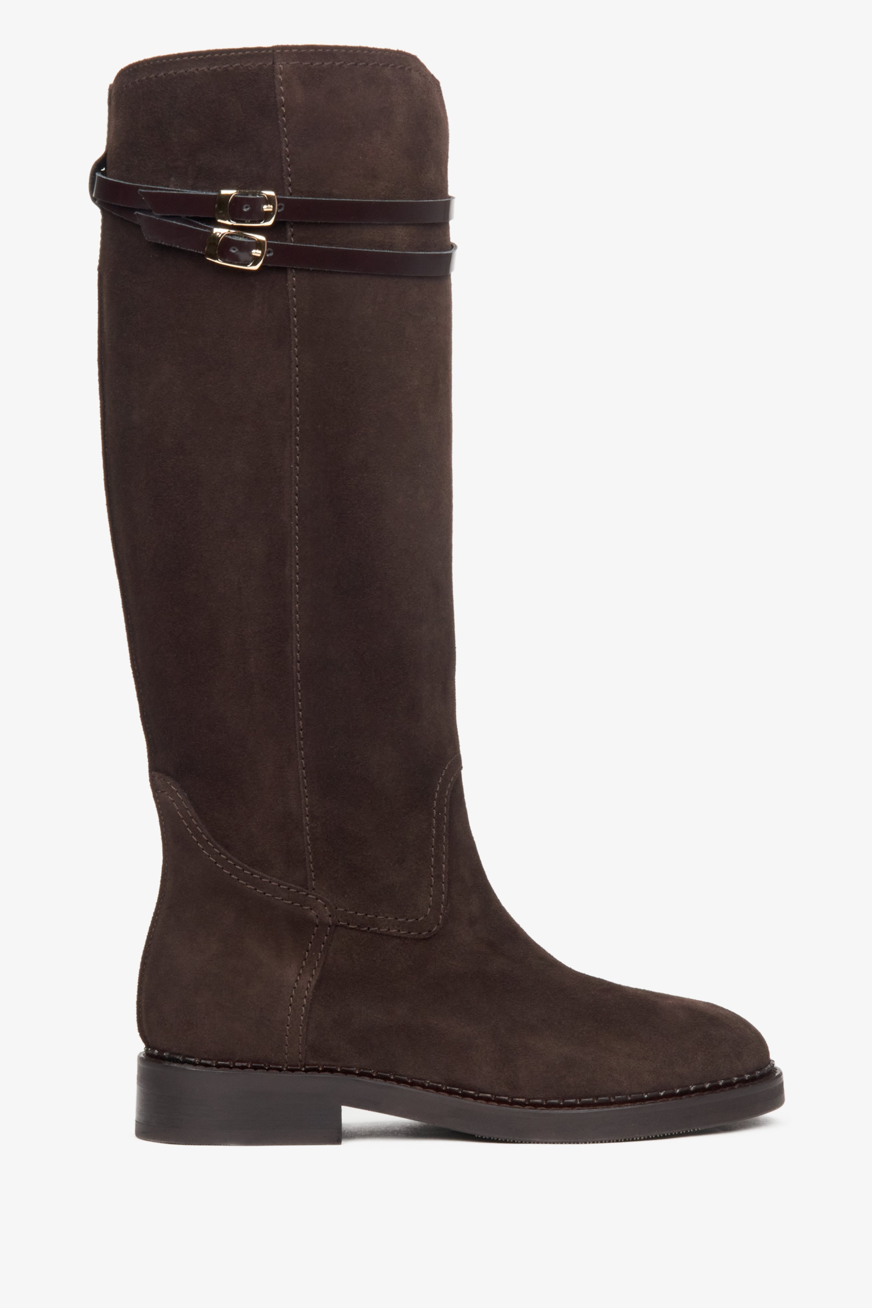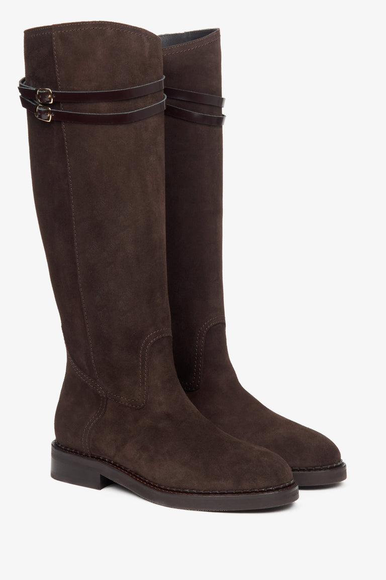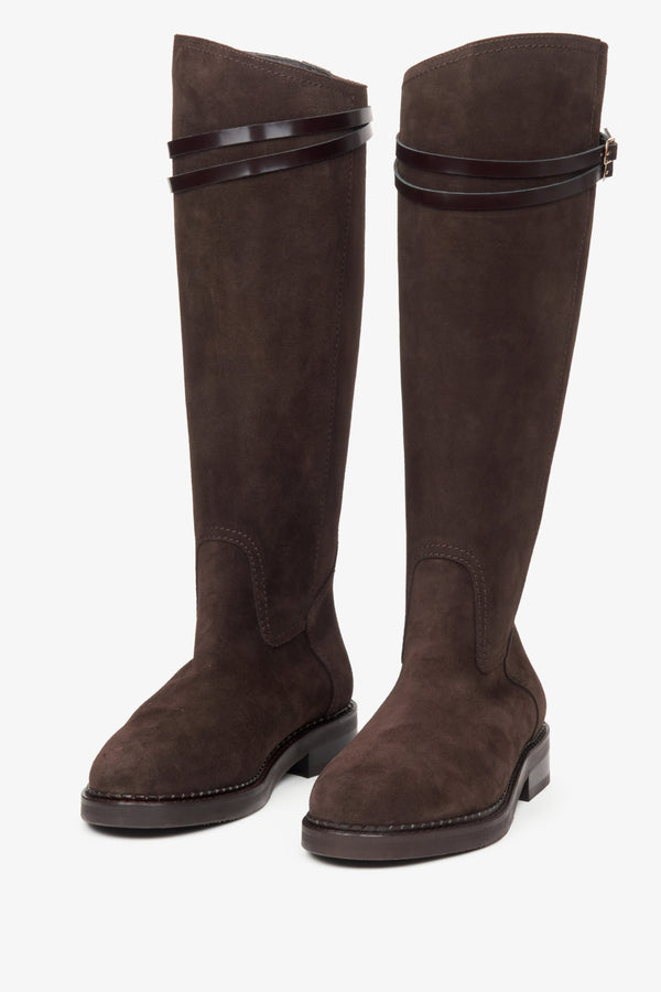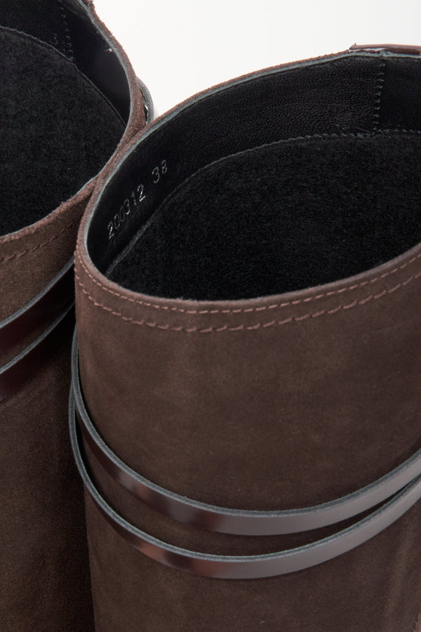 Women's Dark Brown Boots with a Decorative Buckle made of Italian Genuine Velour Estro ER00116258