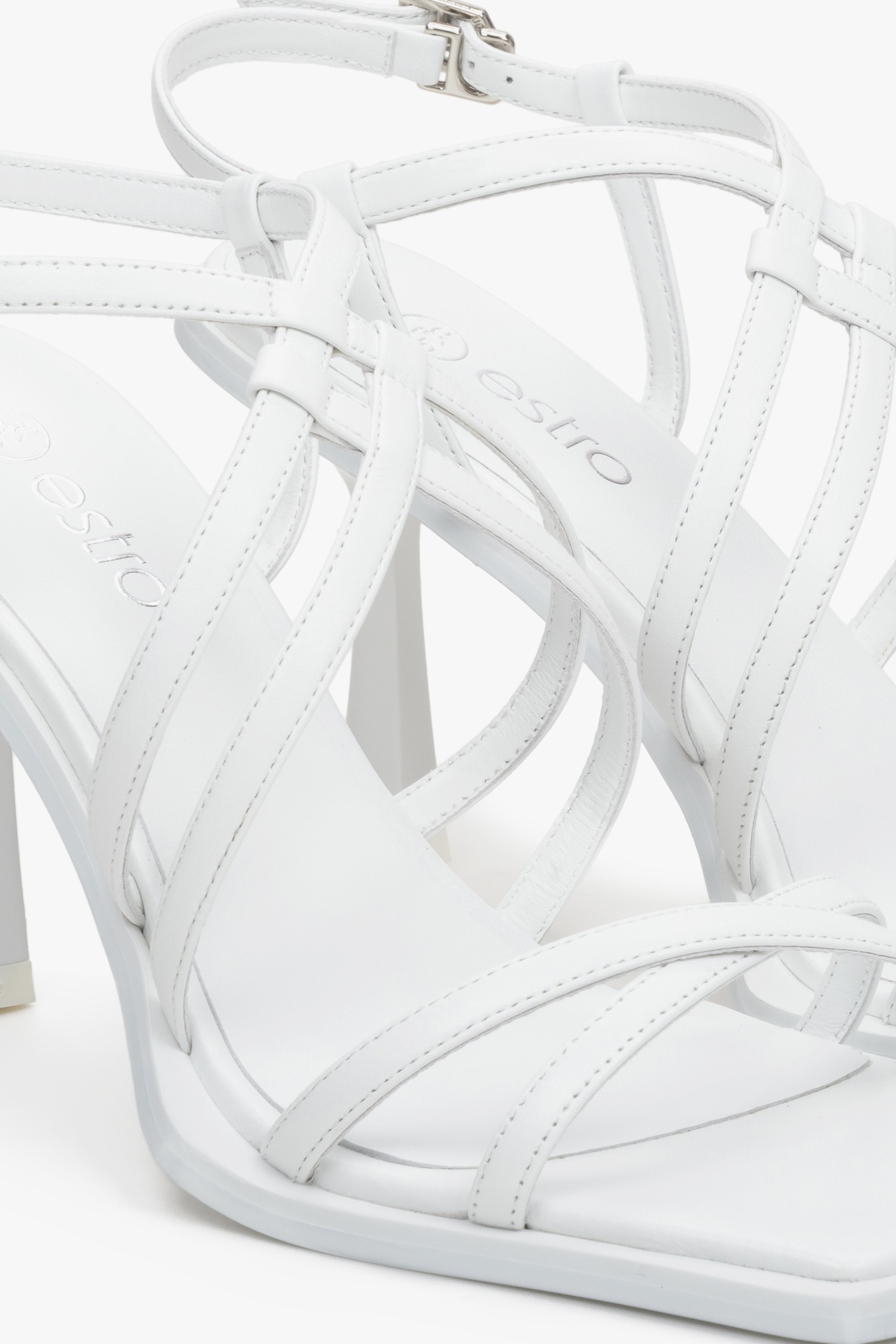 Women's White Strappy Stiletto Sandals Estro ER00113347
