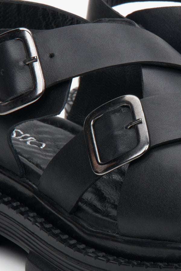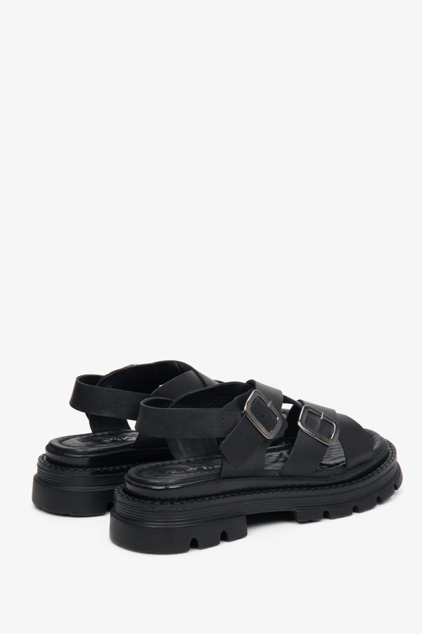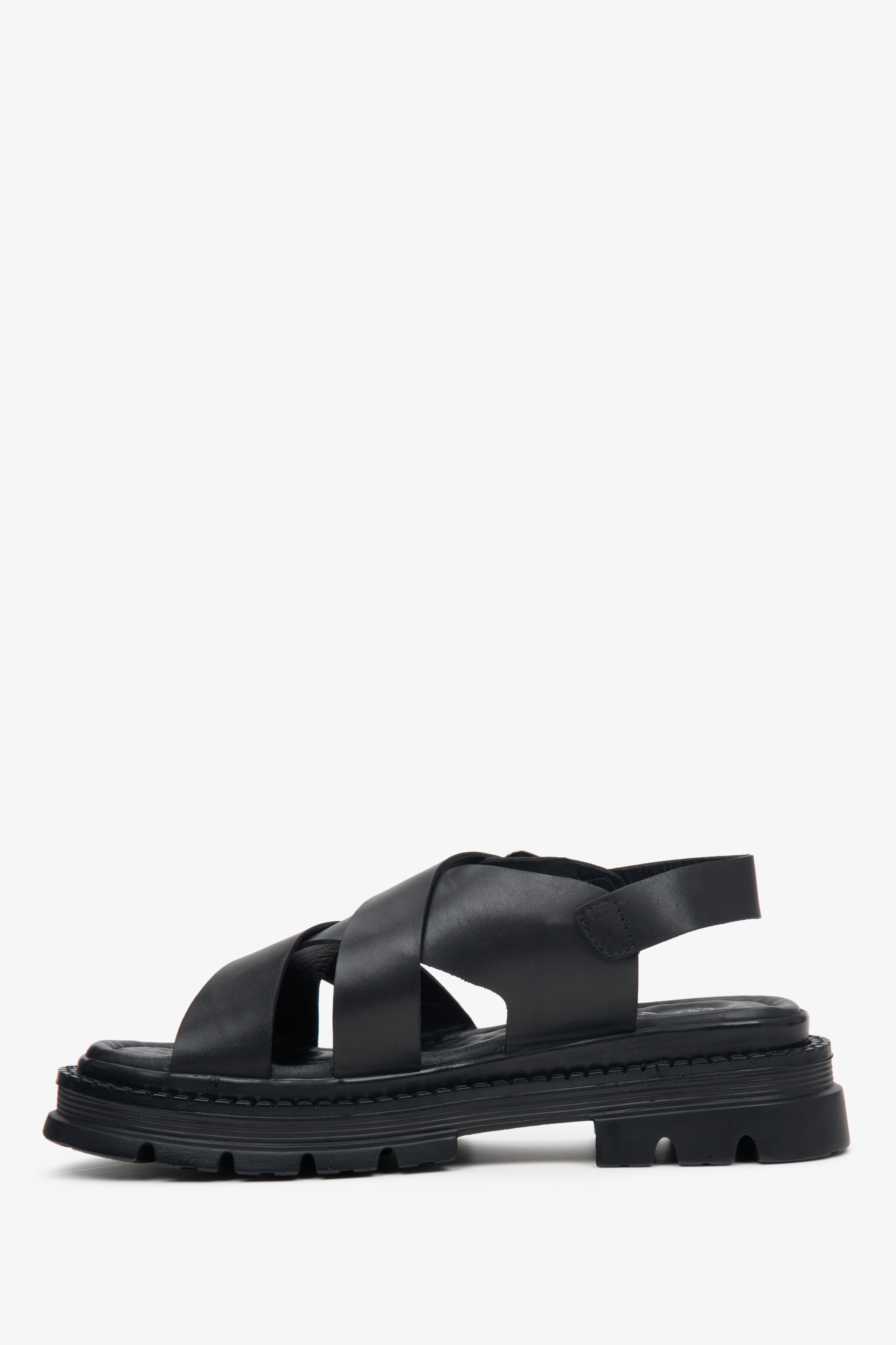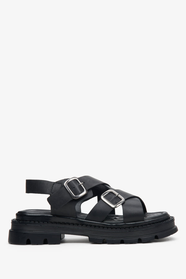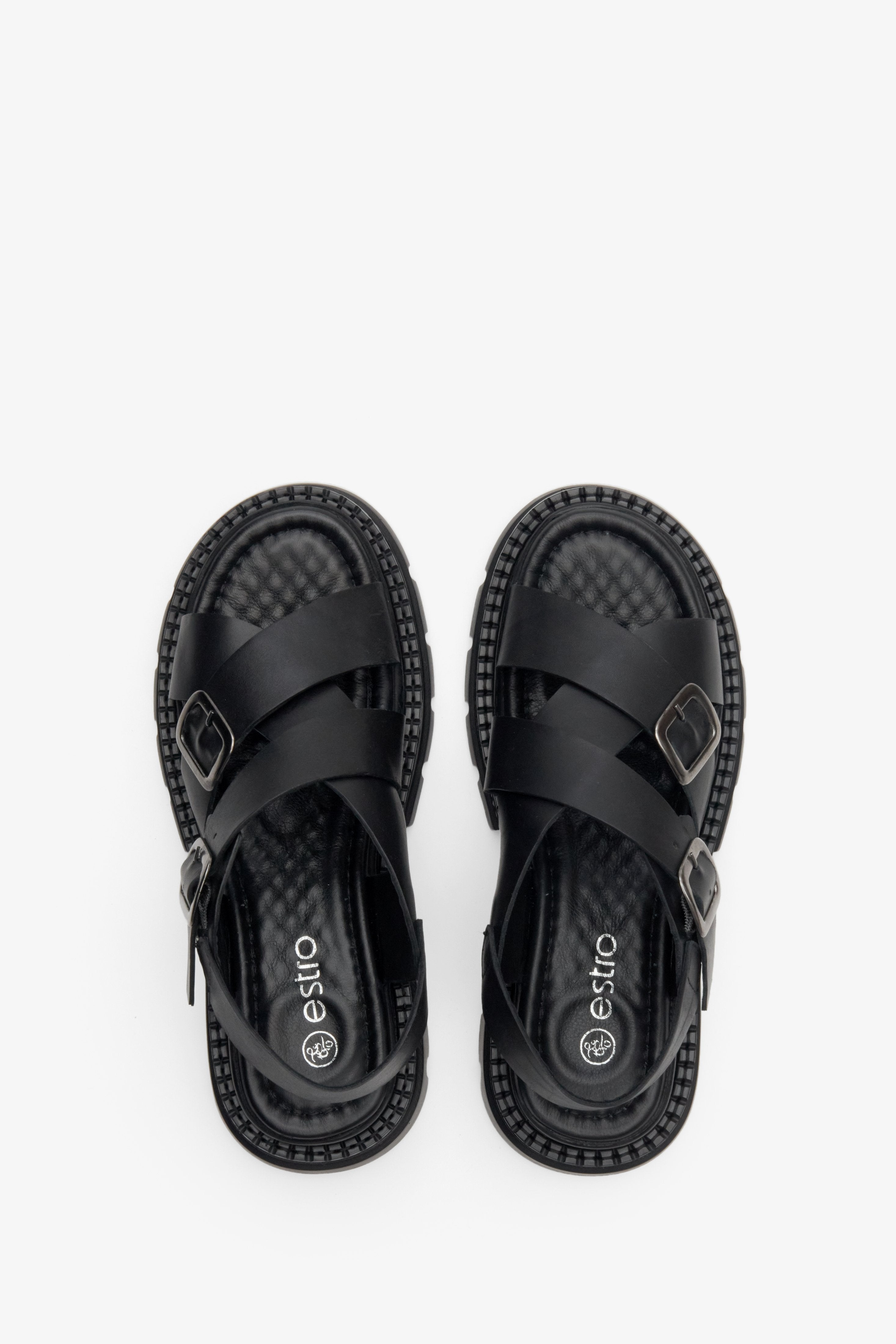 Women's Black Cross Strap Sandals with a Chunky Platform Estro ER00113104