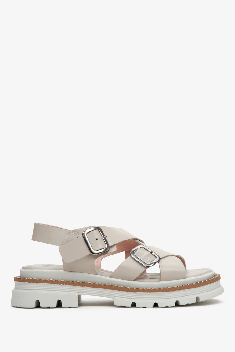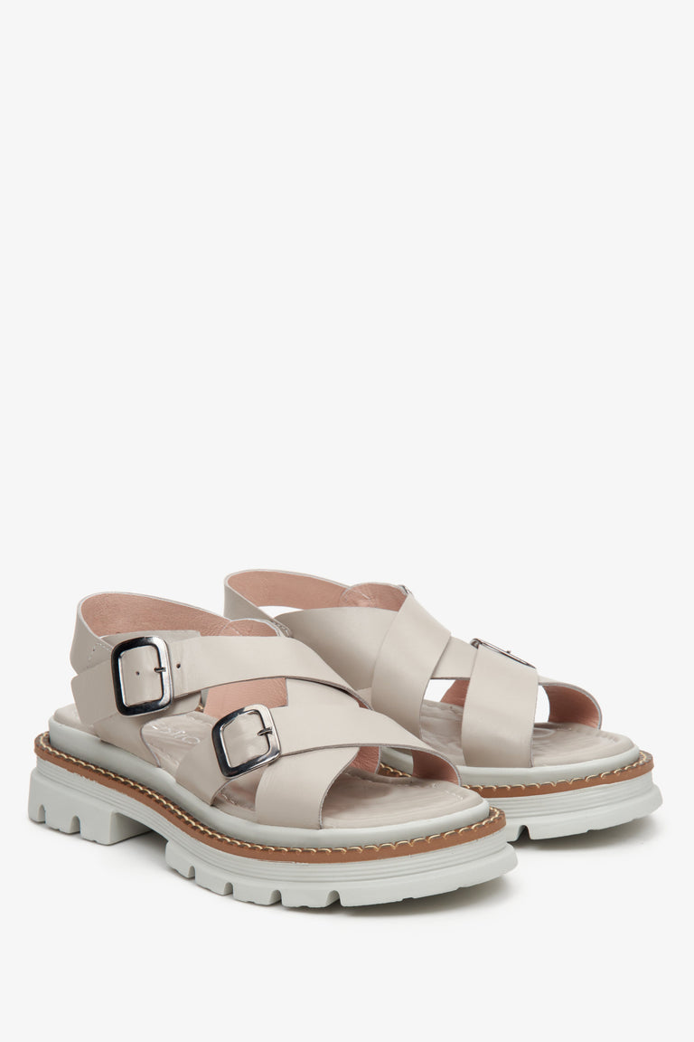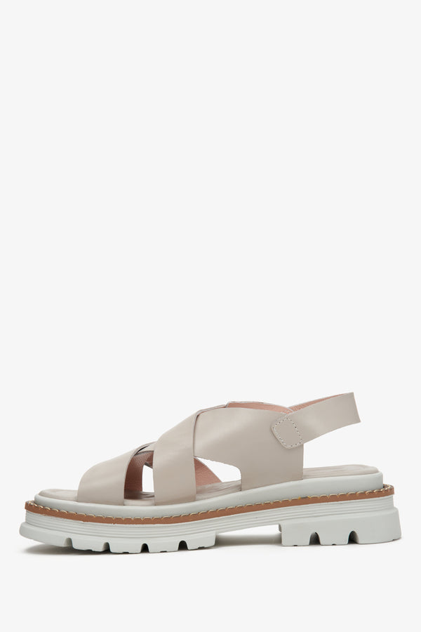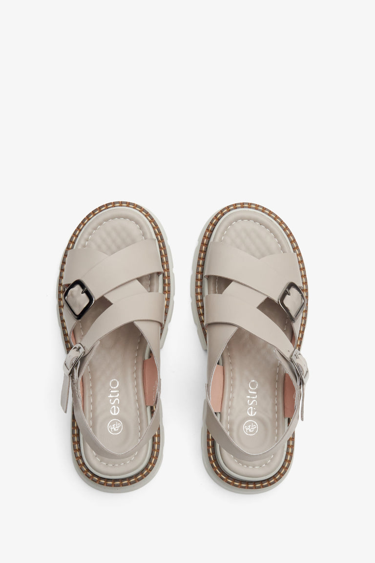 Women's Grey Cross Strap Sandals on Chunky Platform Estro ER00113078