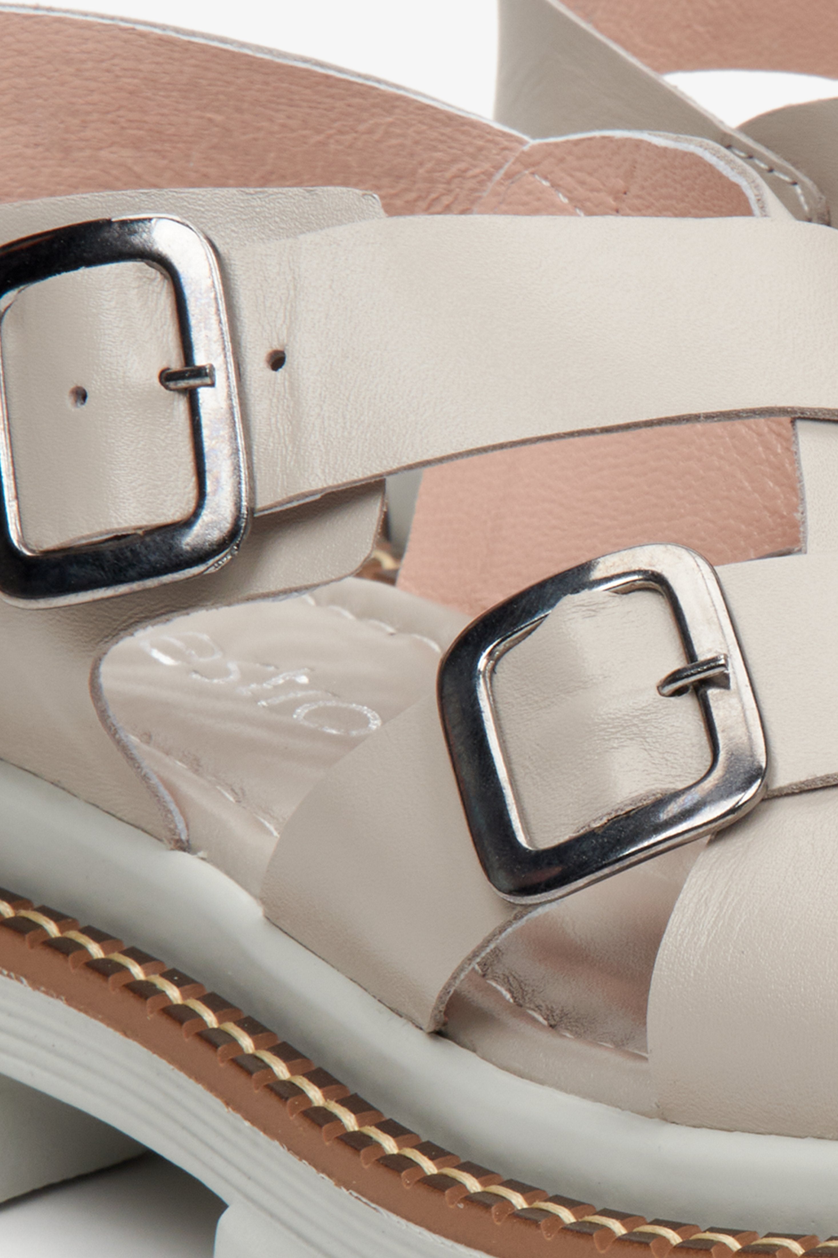 Step out in style this summer with the grey women's cross strap sandals on chunky platform designed by Estro. Crafted with superior Italian leather, these chic sandals are fastened with a buckle, offering a comfortable and secure fit. The sturdy, chunky platform grants a sturdy base that endures all weather conditions. Wear them with a dress for a fashionably comfortable look.
