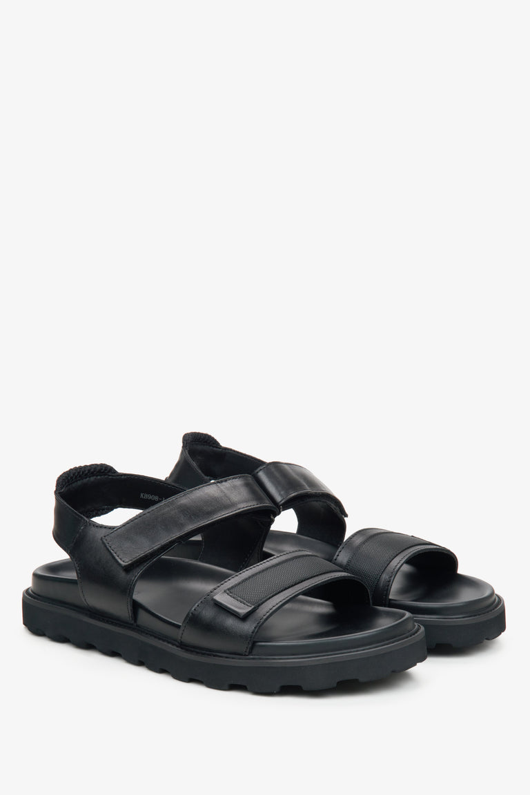 Men's Black Sandals made of Soft Leather Estro ER00115493