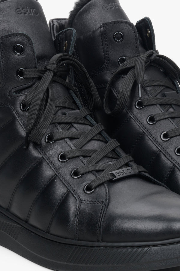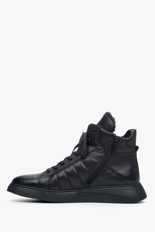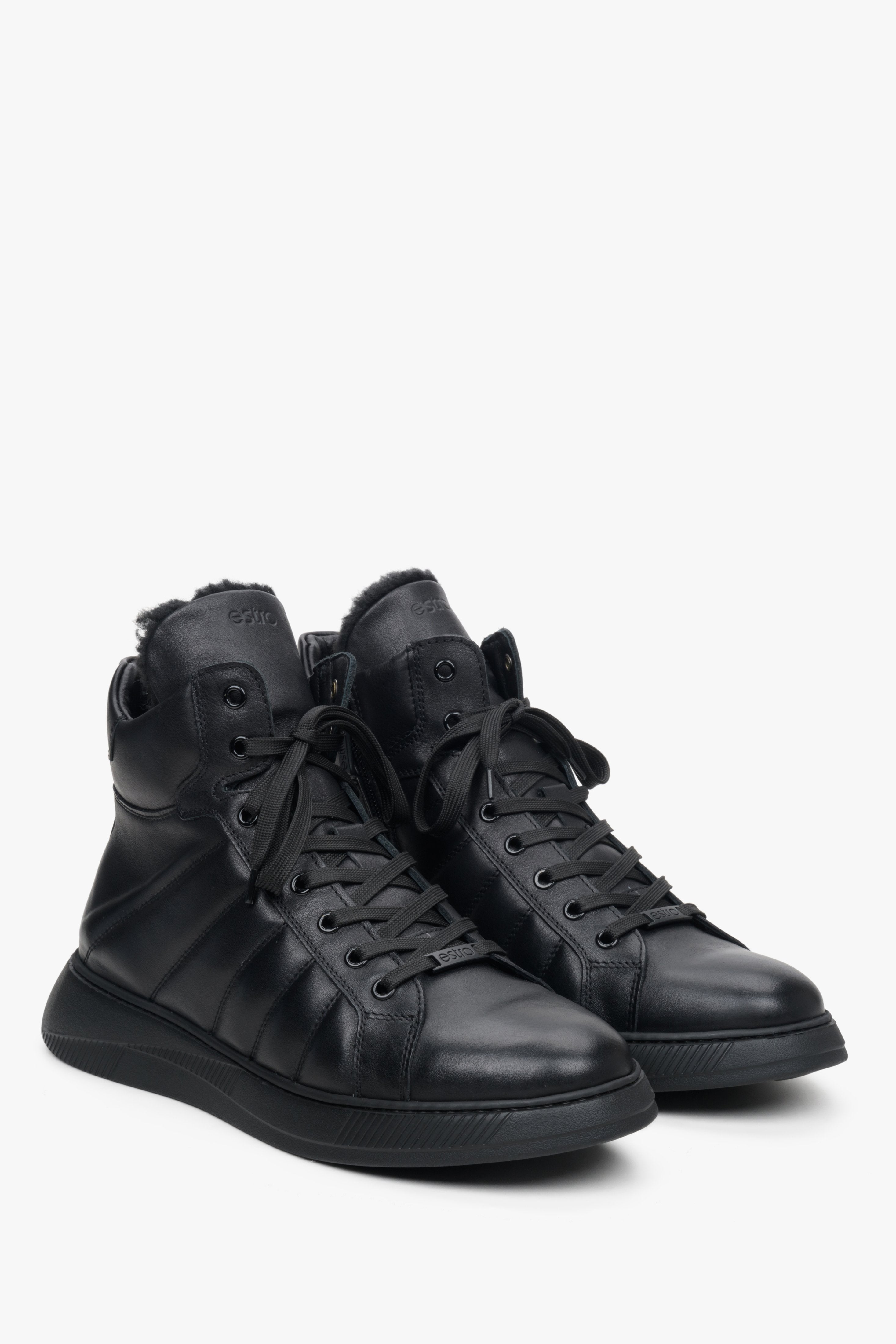 Men's Black Leather High-Top Sneakers for Winter Estro ER00113957