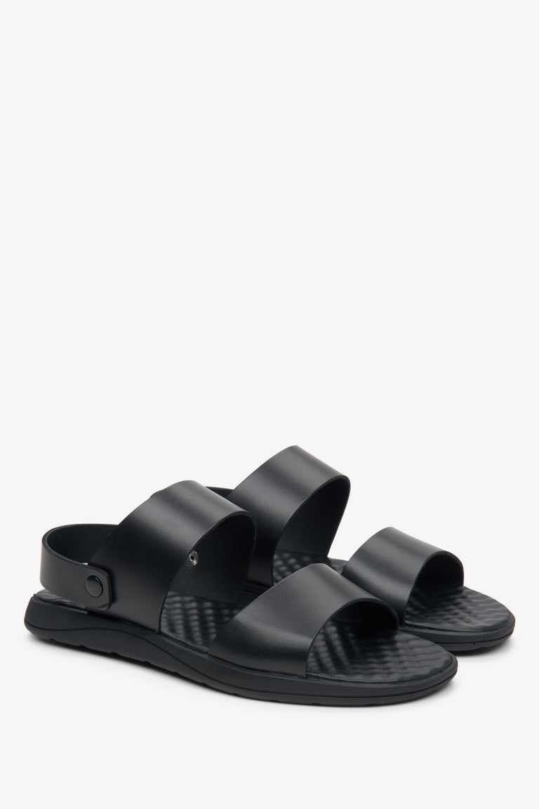 Men's Black Leather Sandals with Thick Straps Estro ER00112973