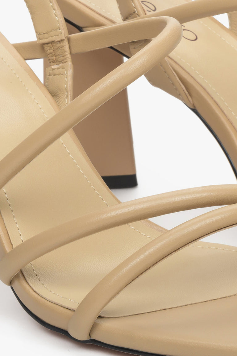 Strappy sand beige women's sandals by Estro made of natural leather - a close up on details.
